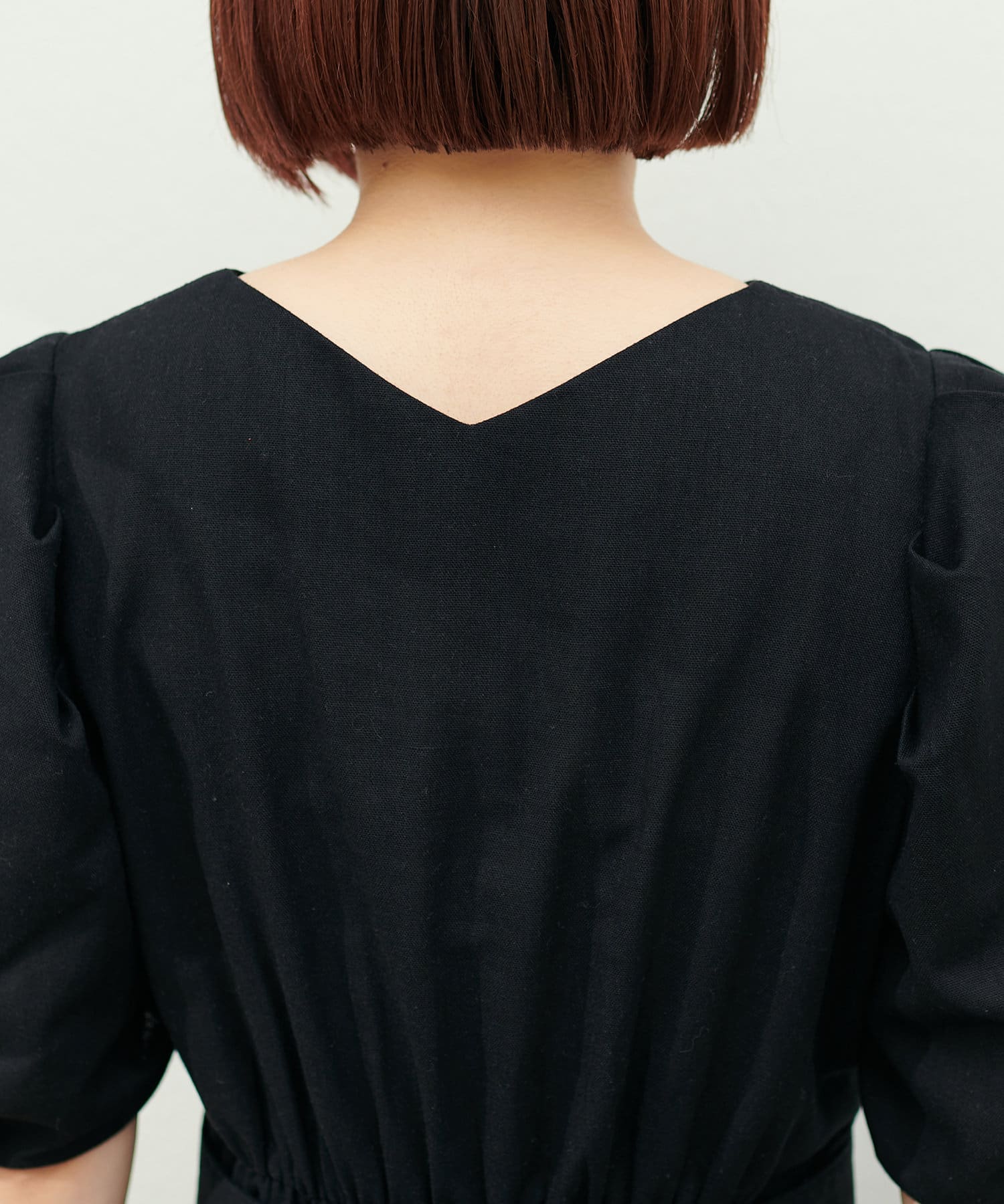 首元はVネックで抜け感を。ふわっとしたスリーブも可愛いポイント。