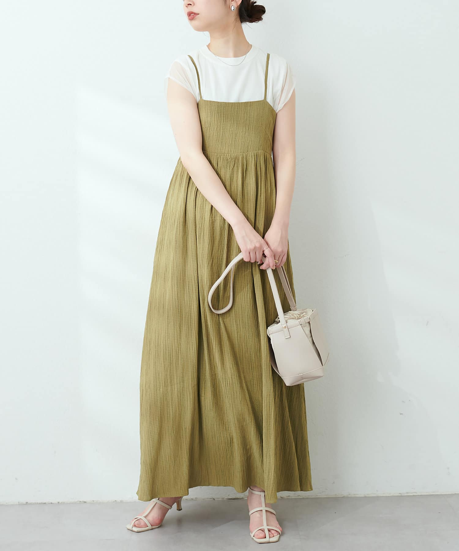 キャミソールに合わせ、上からシャツやカーディガンを羽織っていただくのもおすすめです。