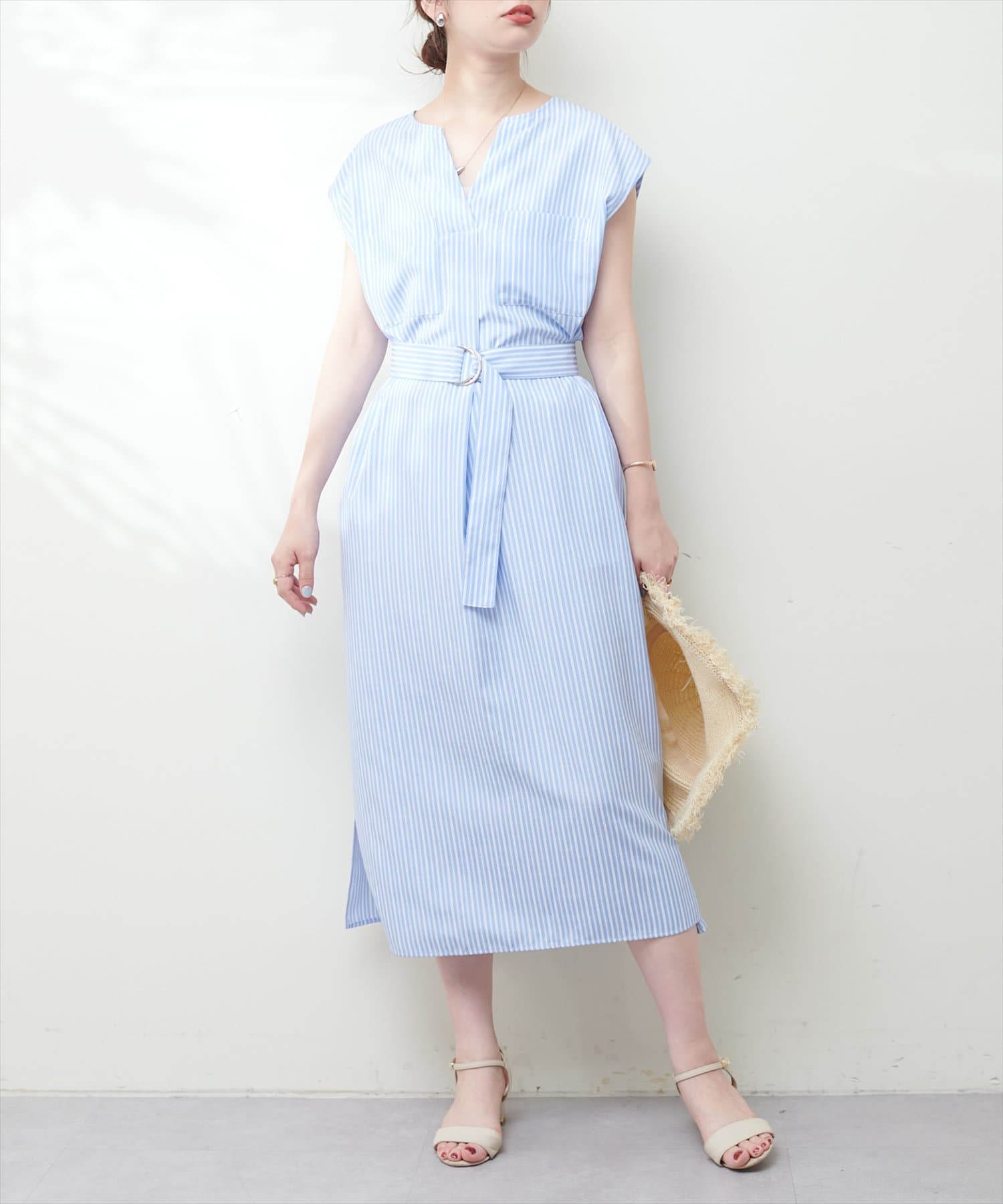1枚でさらっとシンプルにも、付属のベルトでウエストマークした着方もおすすめです。