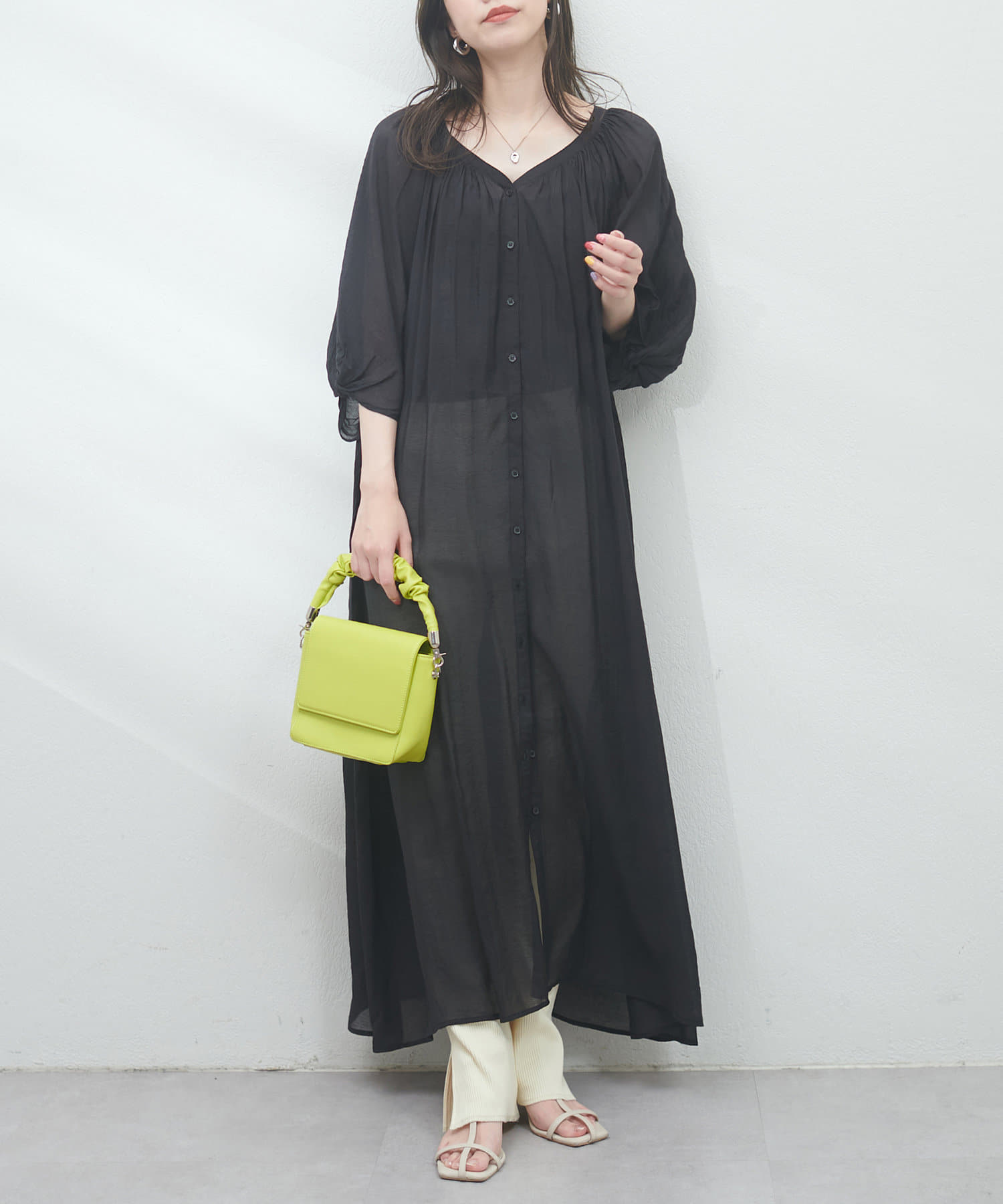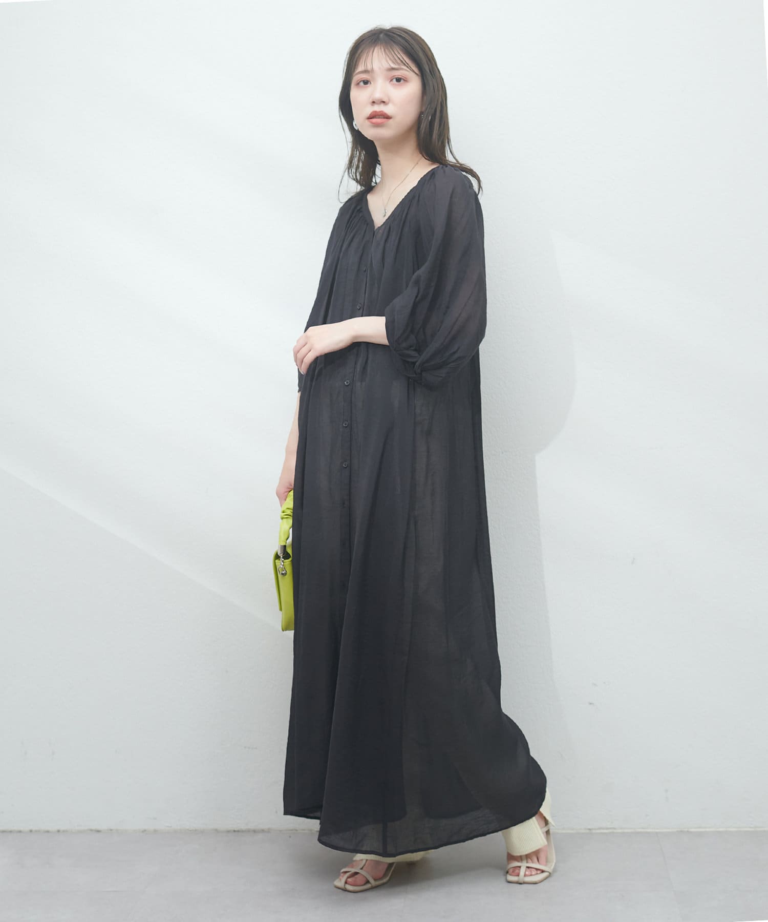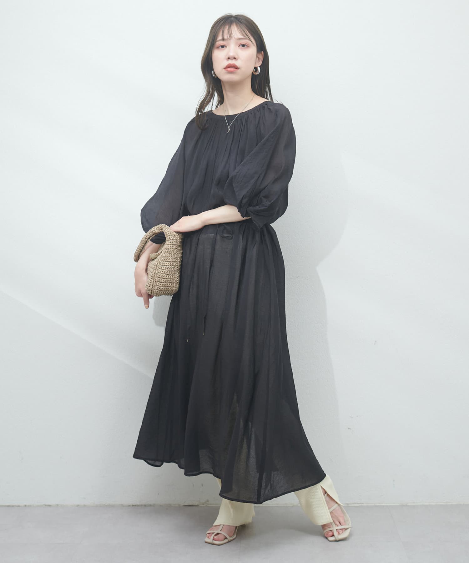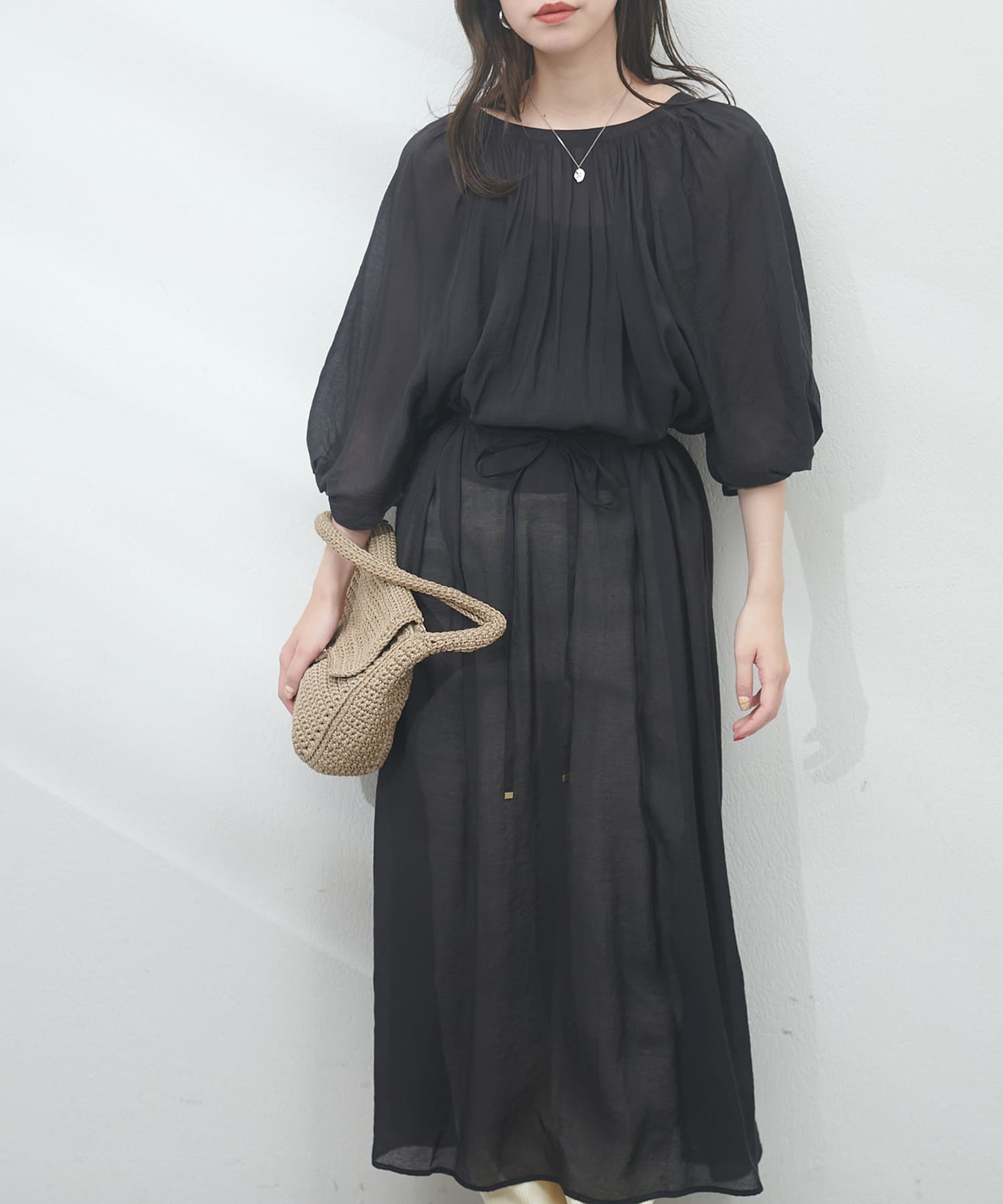 パフスリーブで気になる二の腕もカバーしてくれます。