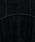 パイピングと同じ生地を使った釦は、上品さをプラスしてきちん感のある印象を与えます。