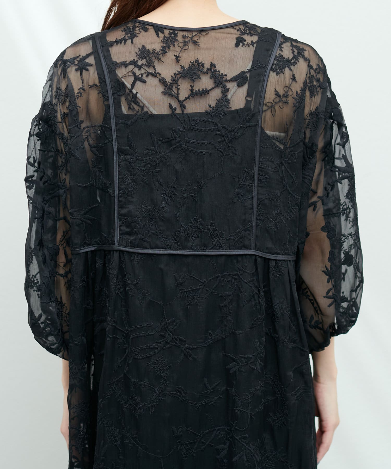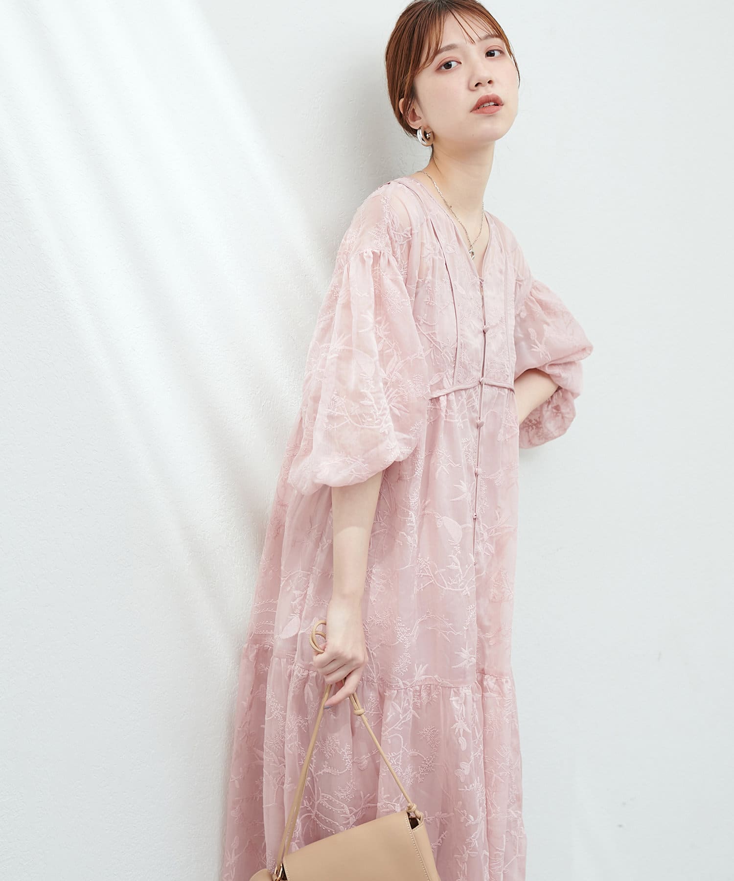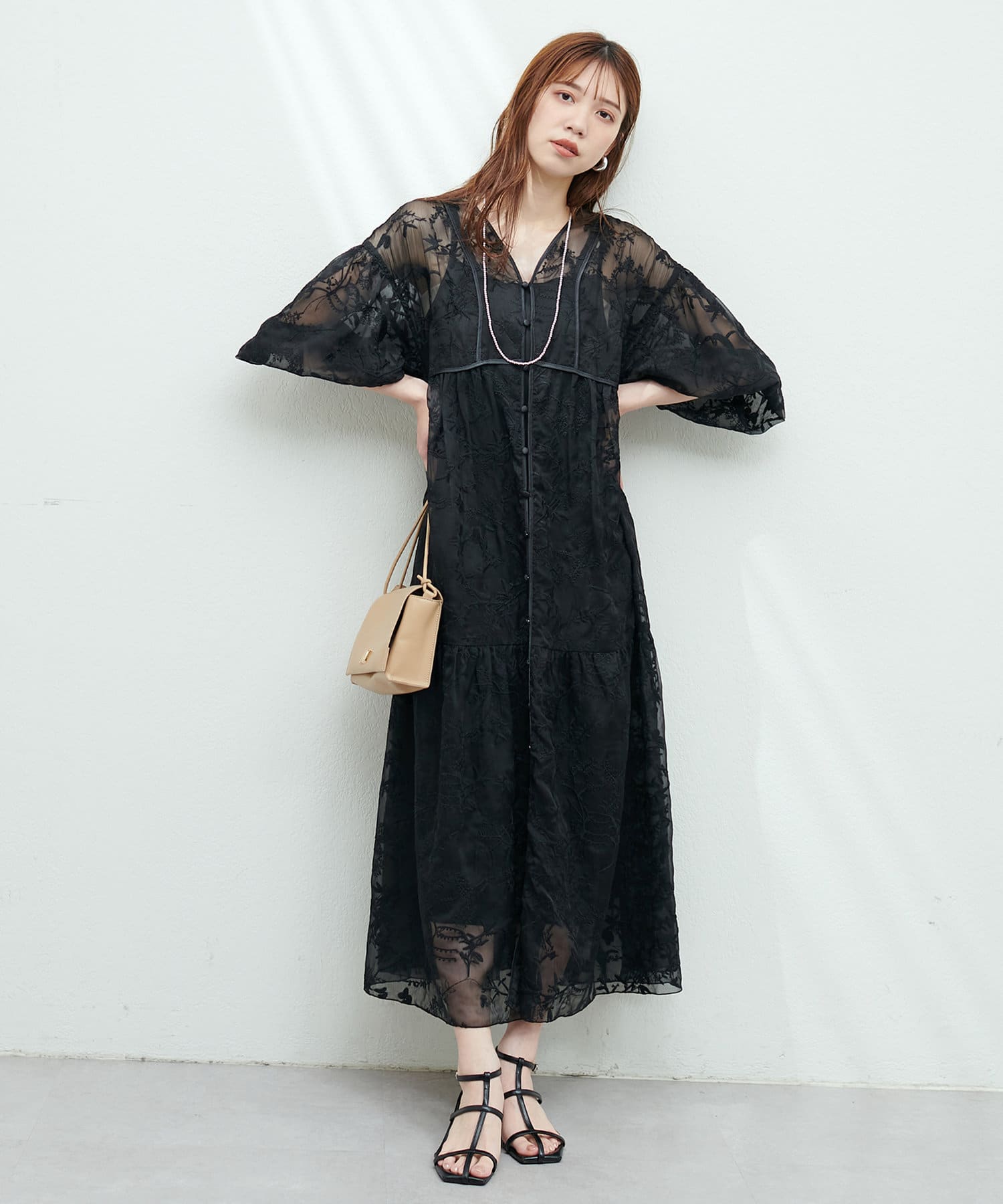 繊細で華やかな印象を放つレース刺繍ワンピース。
