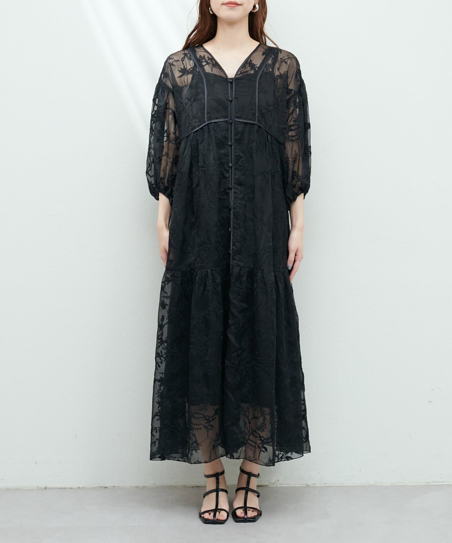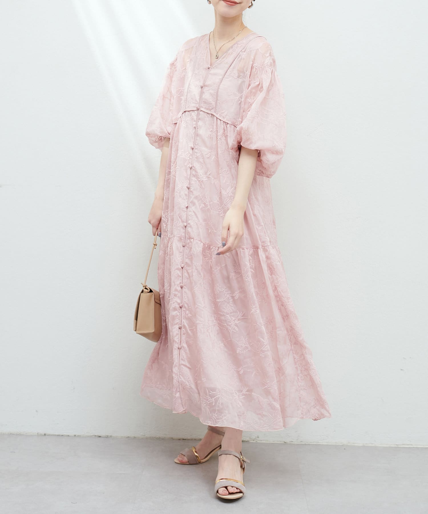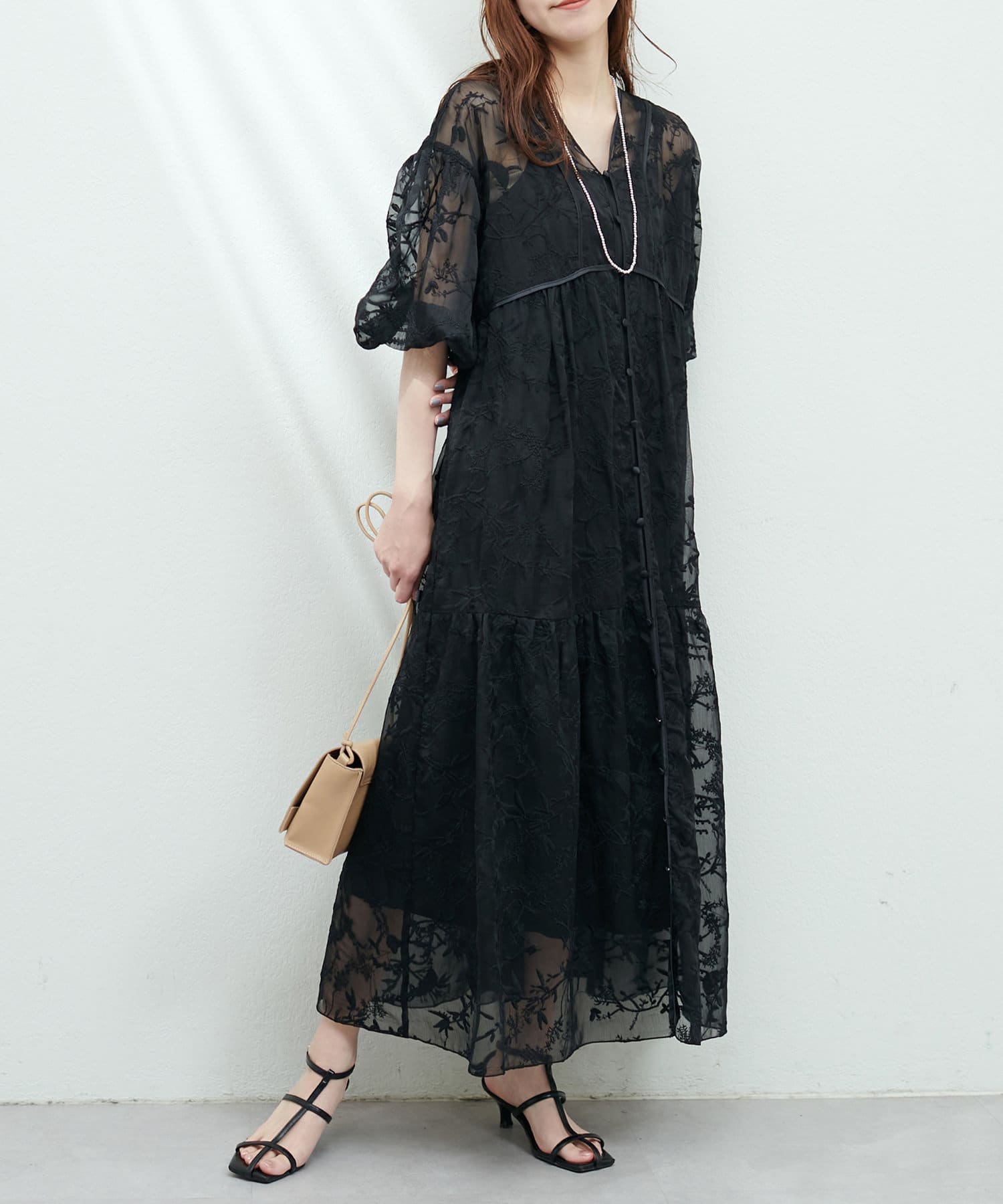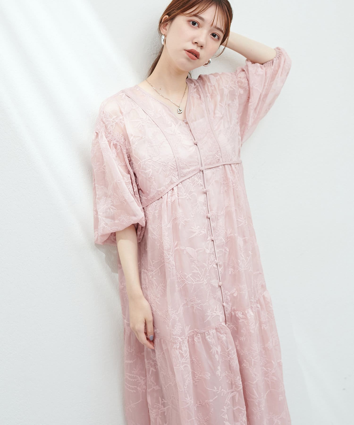 繊細で華やかな印象を放つレース刺繍ワンピース。