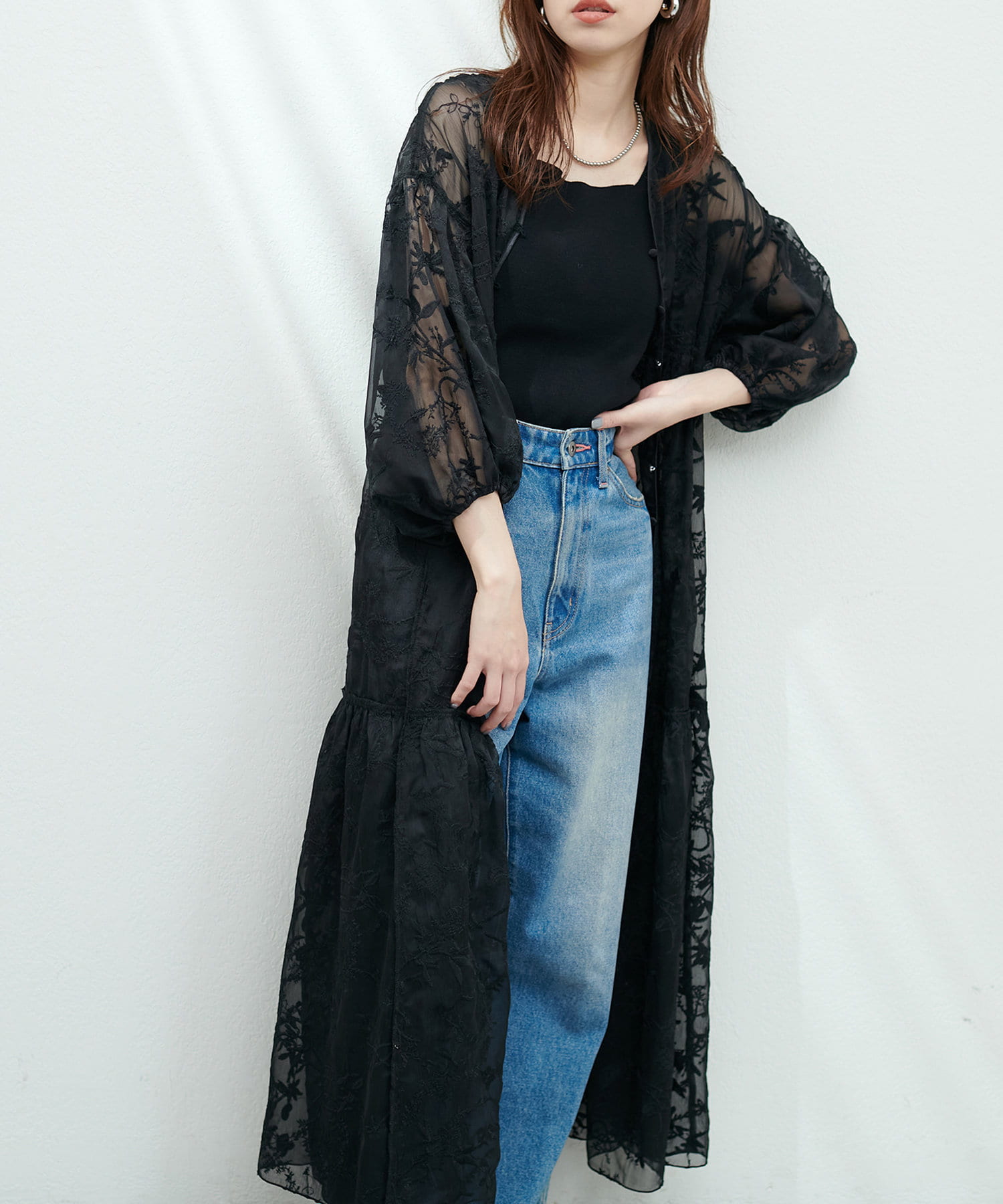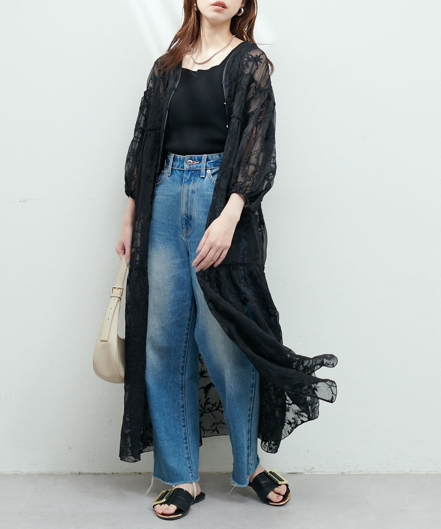 大胆な透け感もフラワーレースの素材感が品よく魅せてくれて、