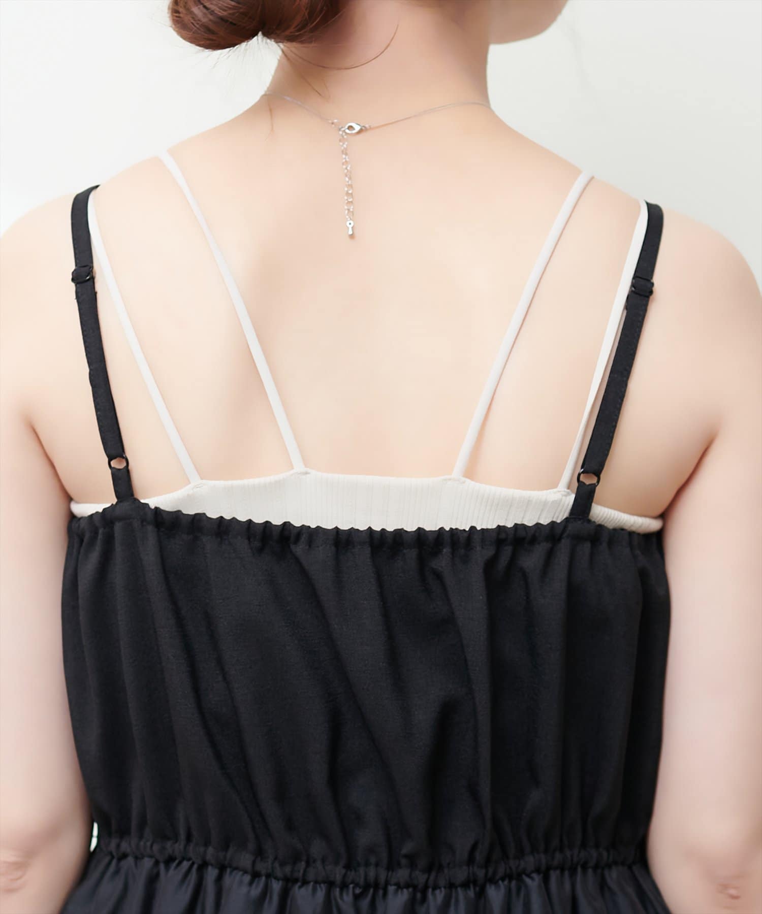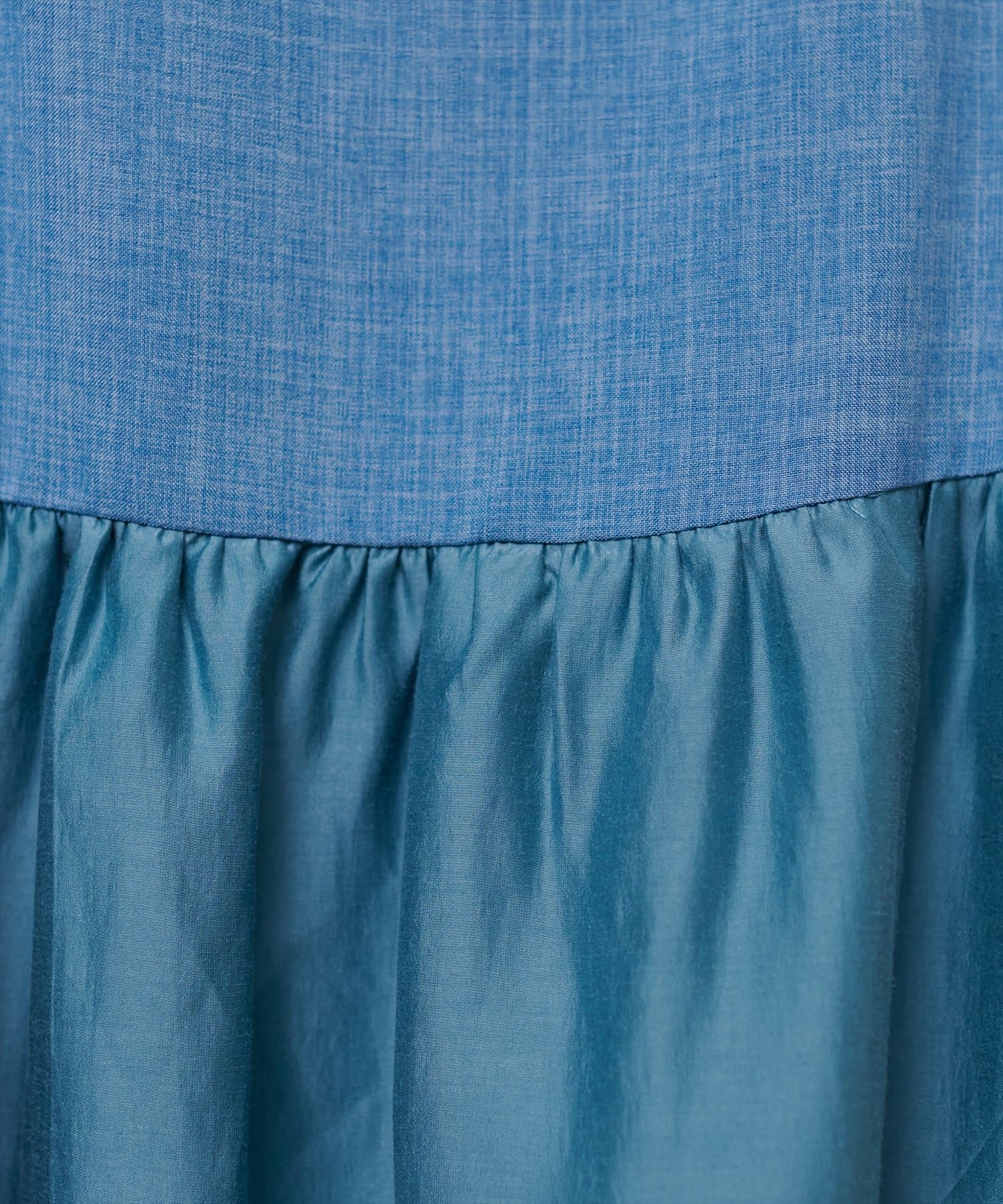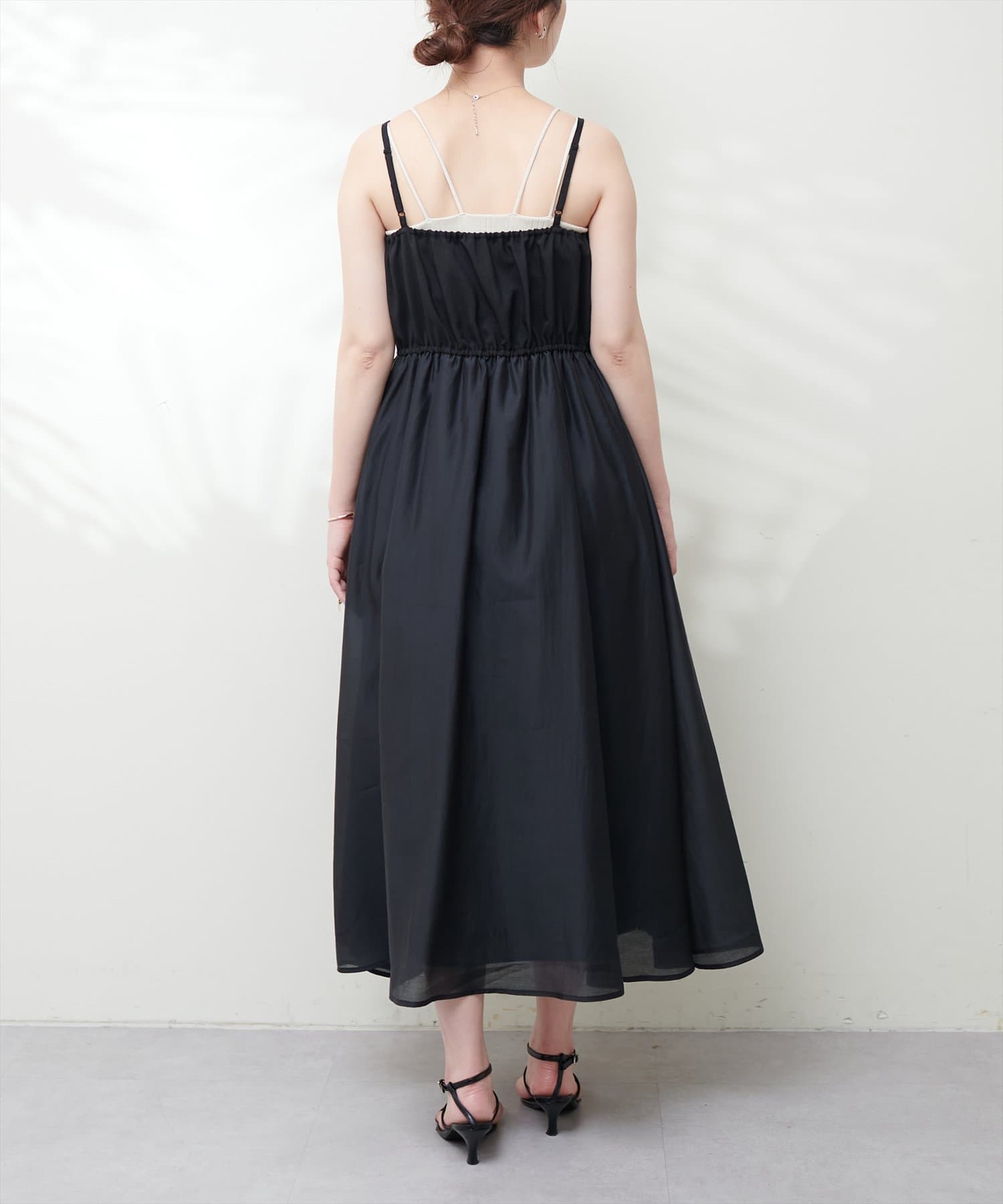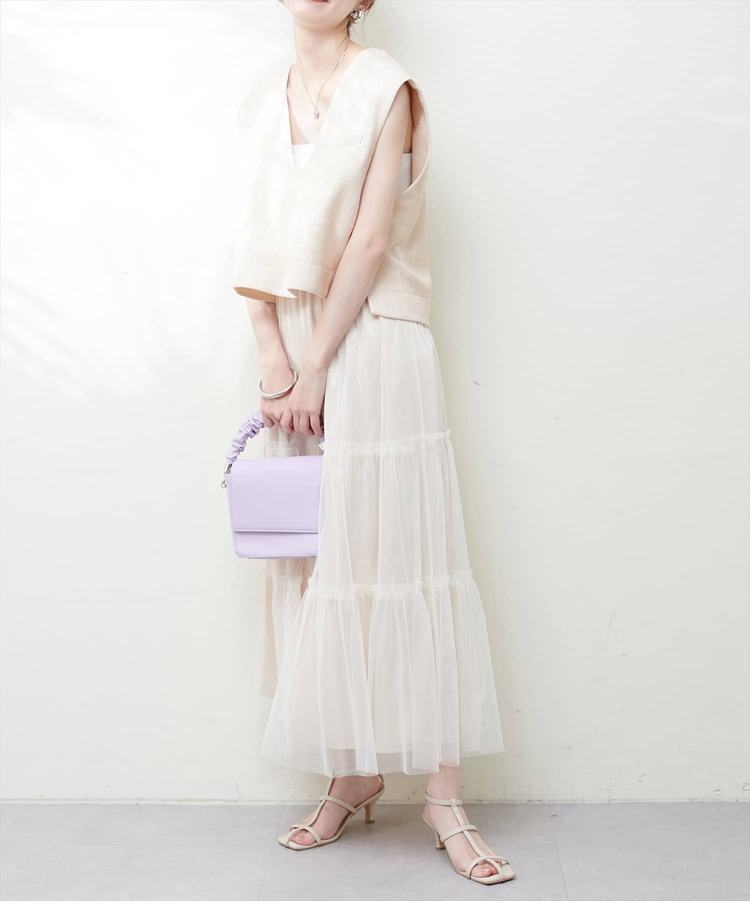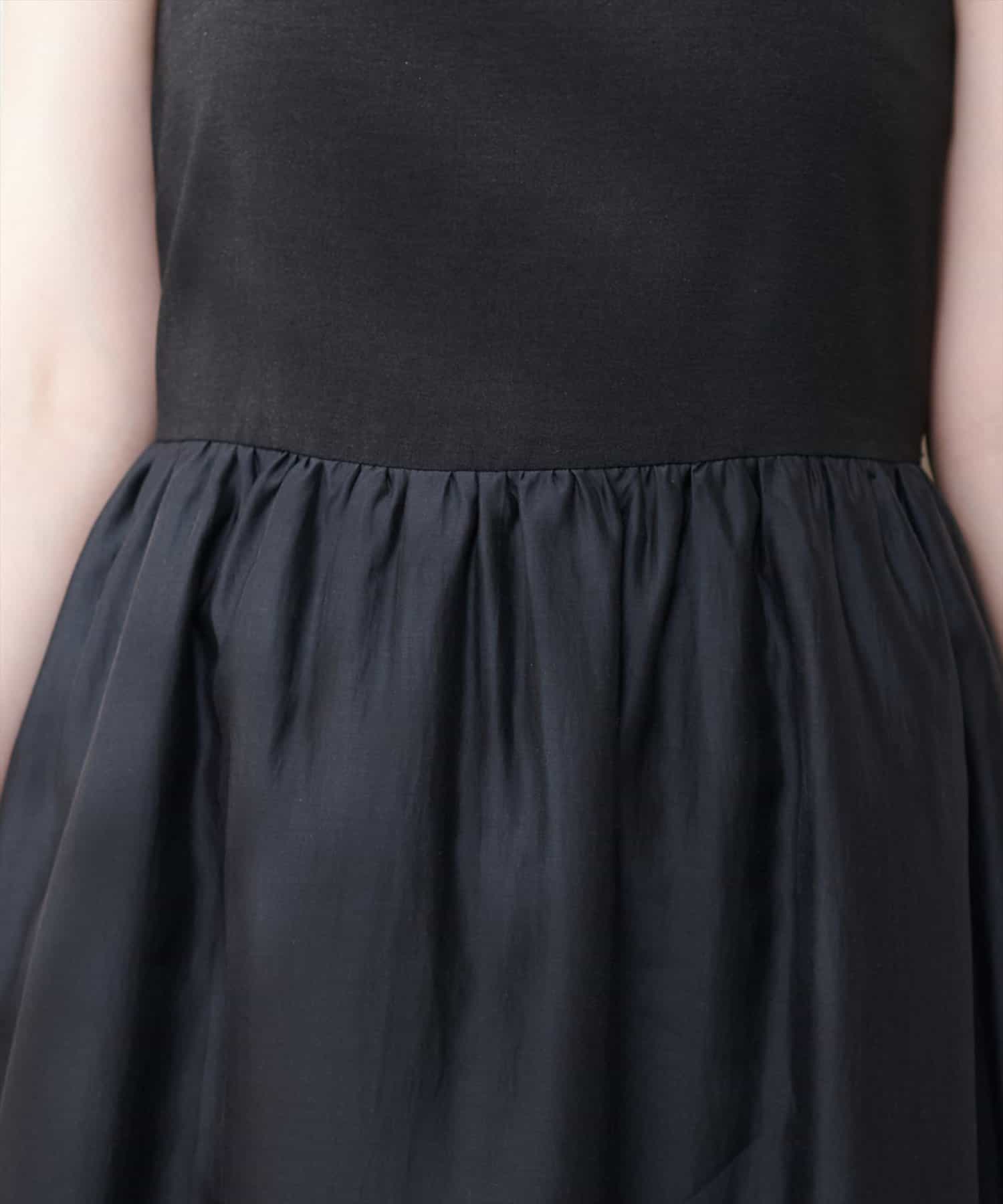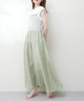 スカート部分は、落ち感のあるシアー素材で安心の裏地付き。