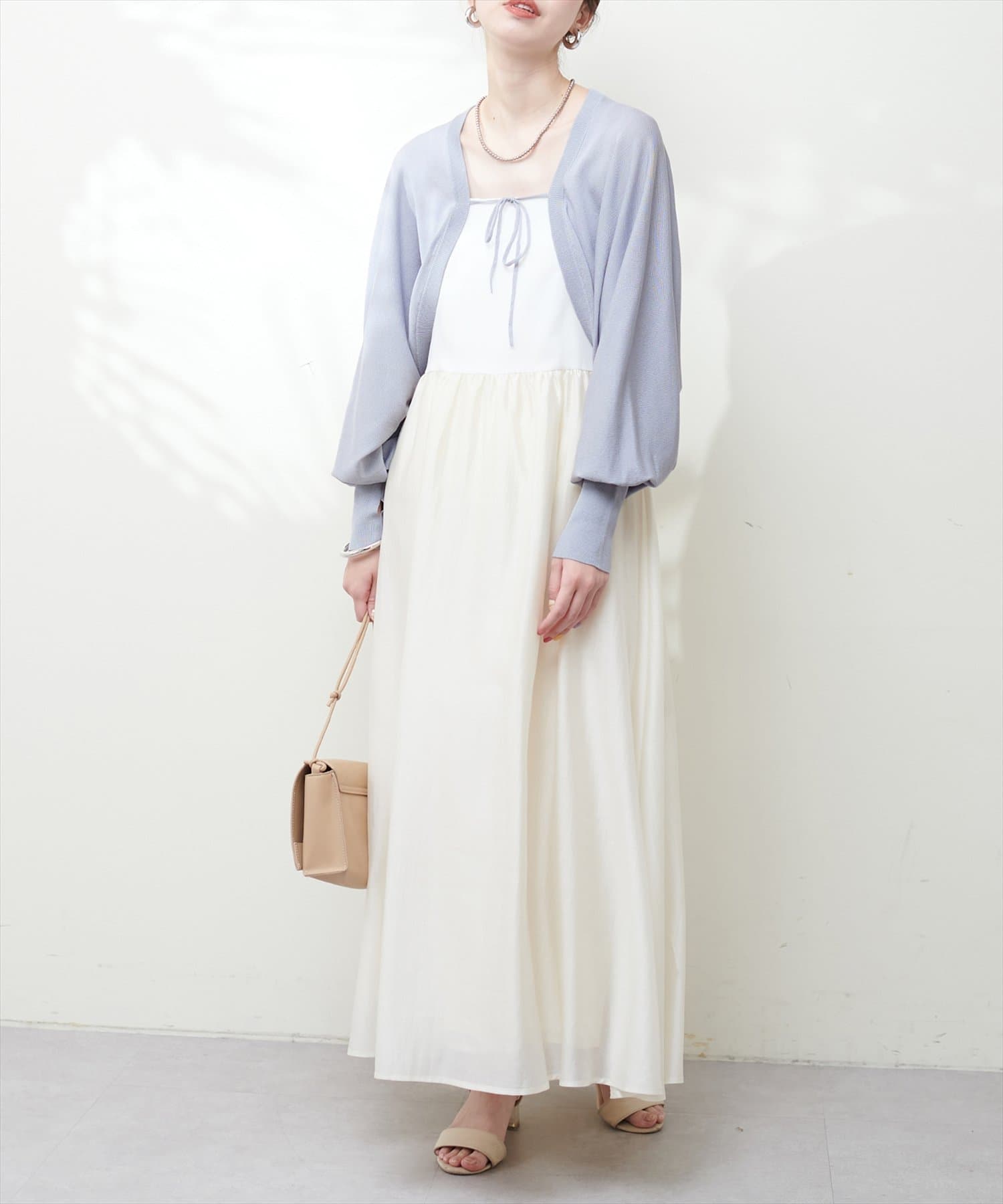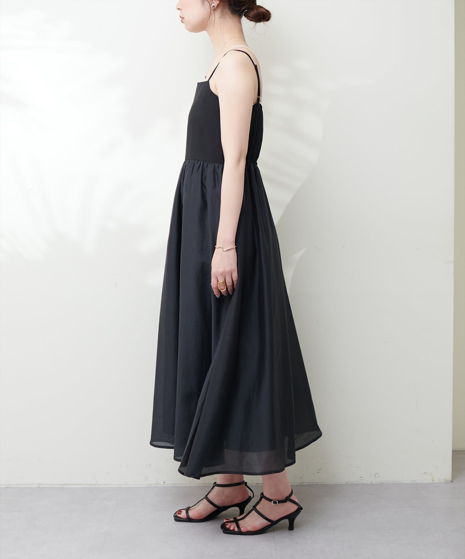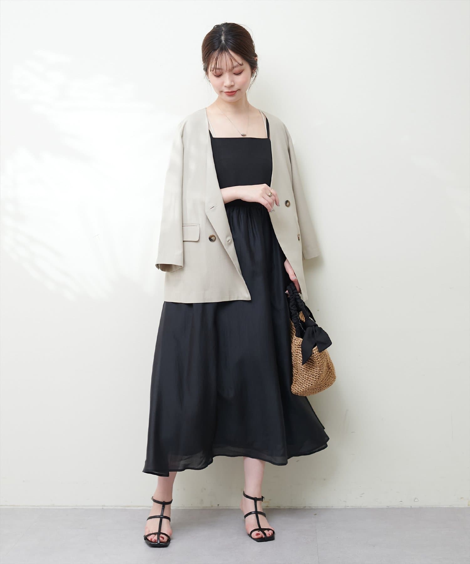 ワンピースは、ロング丈でも表面がシアー素材なので重く見えない◎