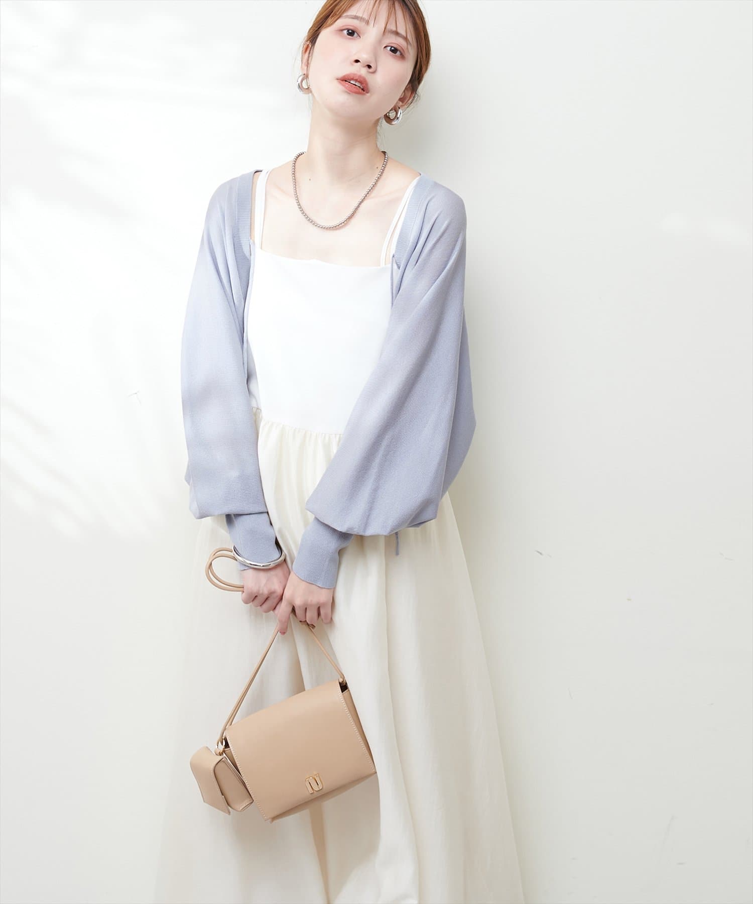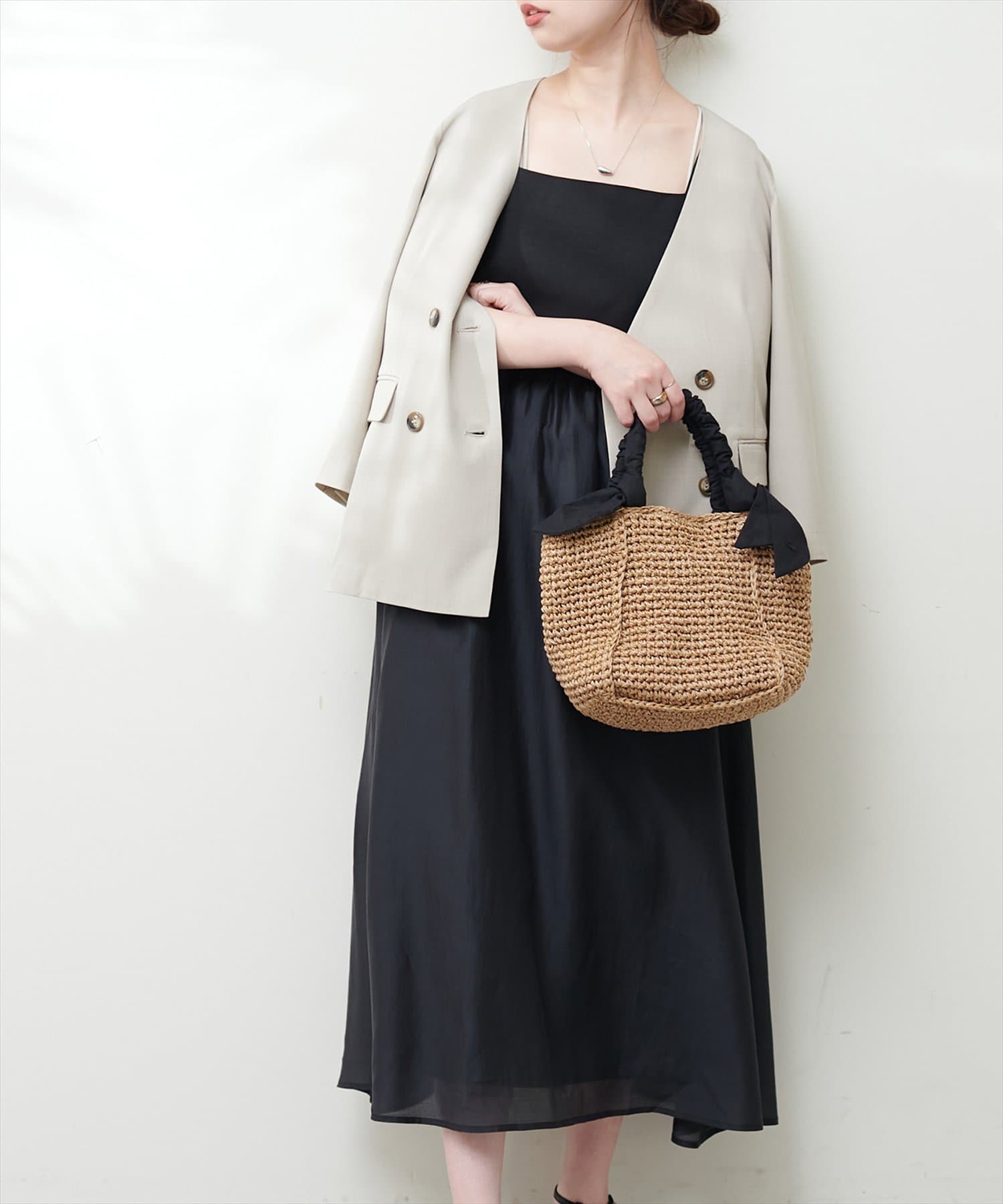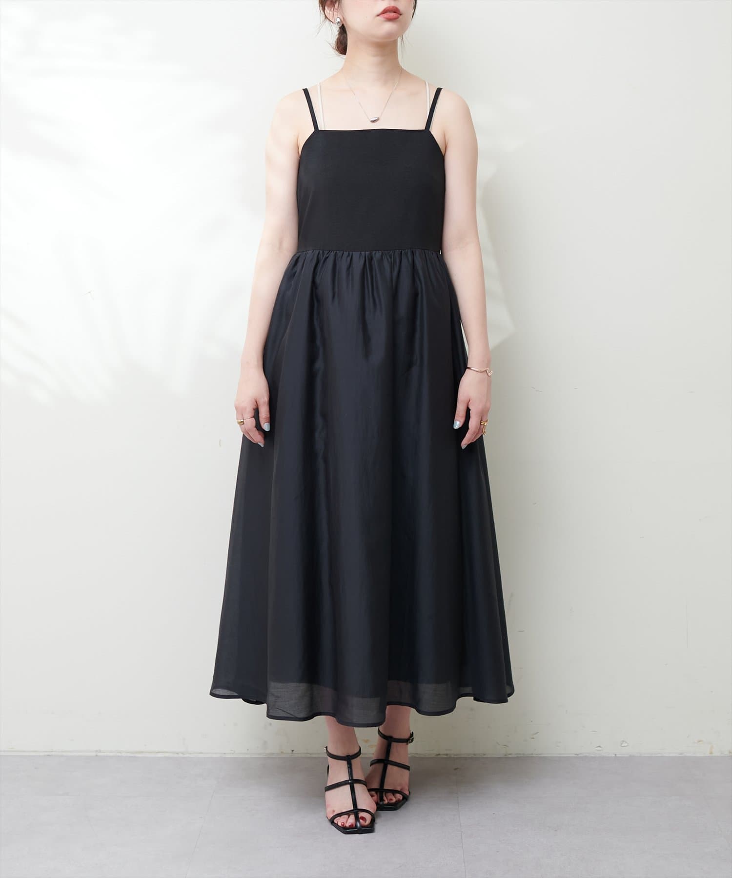 ワンピースは、ロング丈でも表面がシアー素材なので重く見えない◎