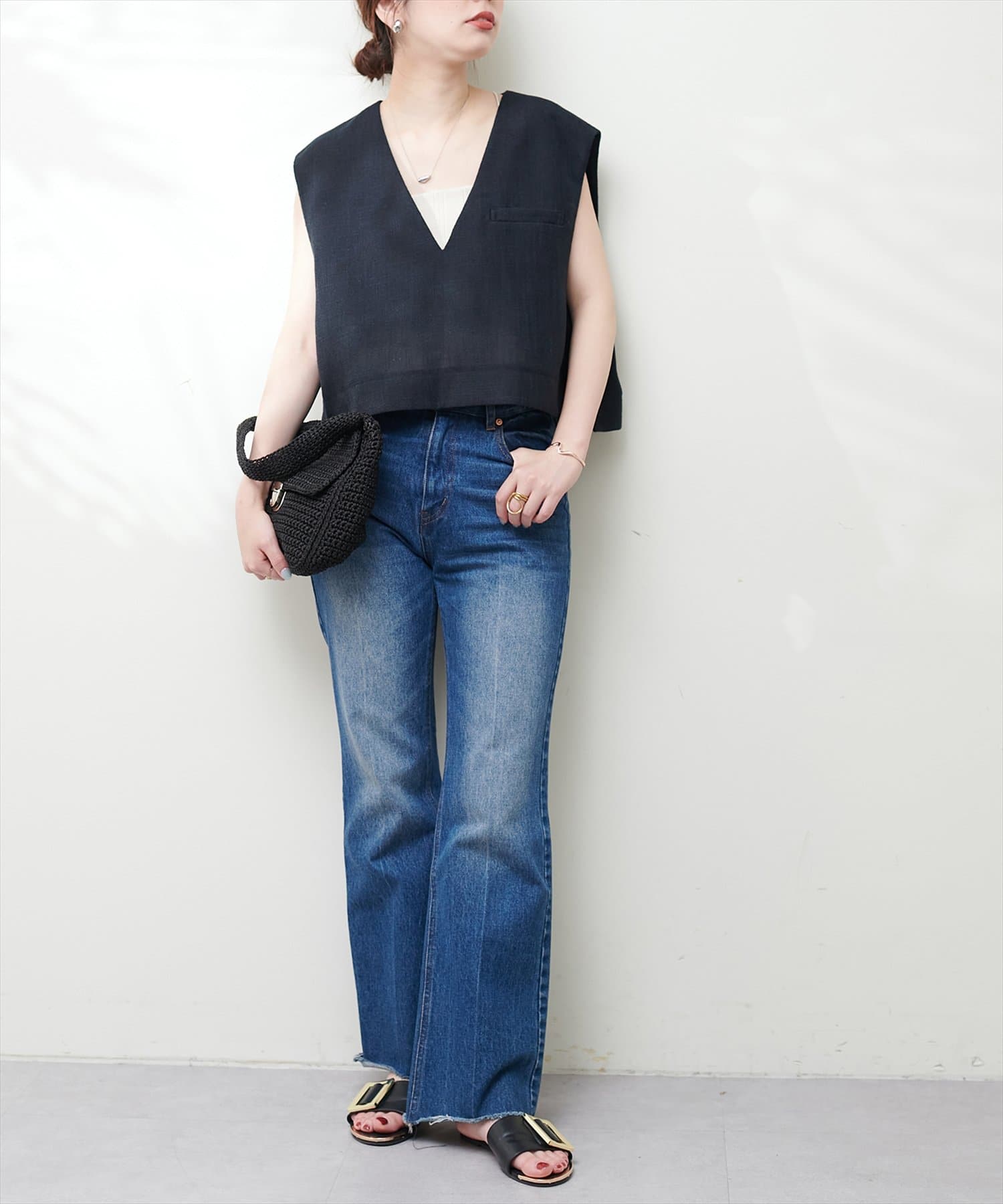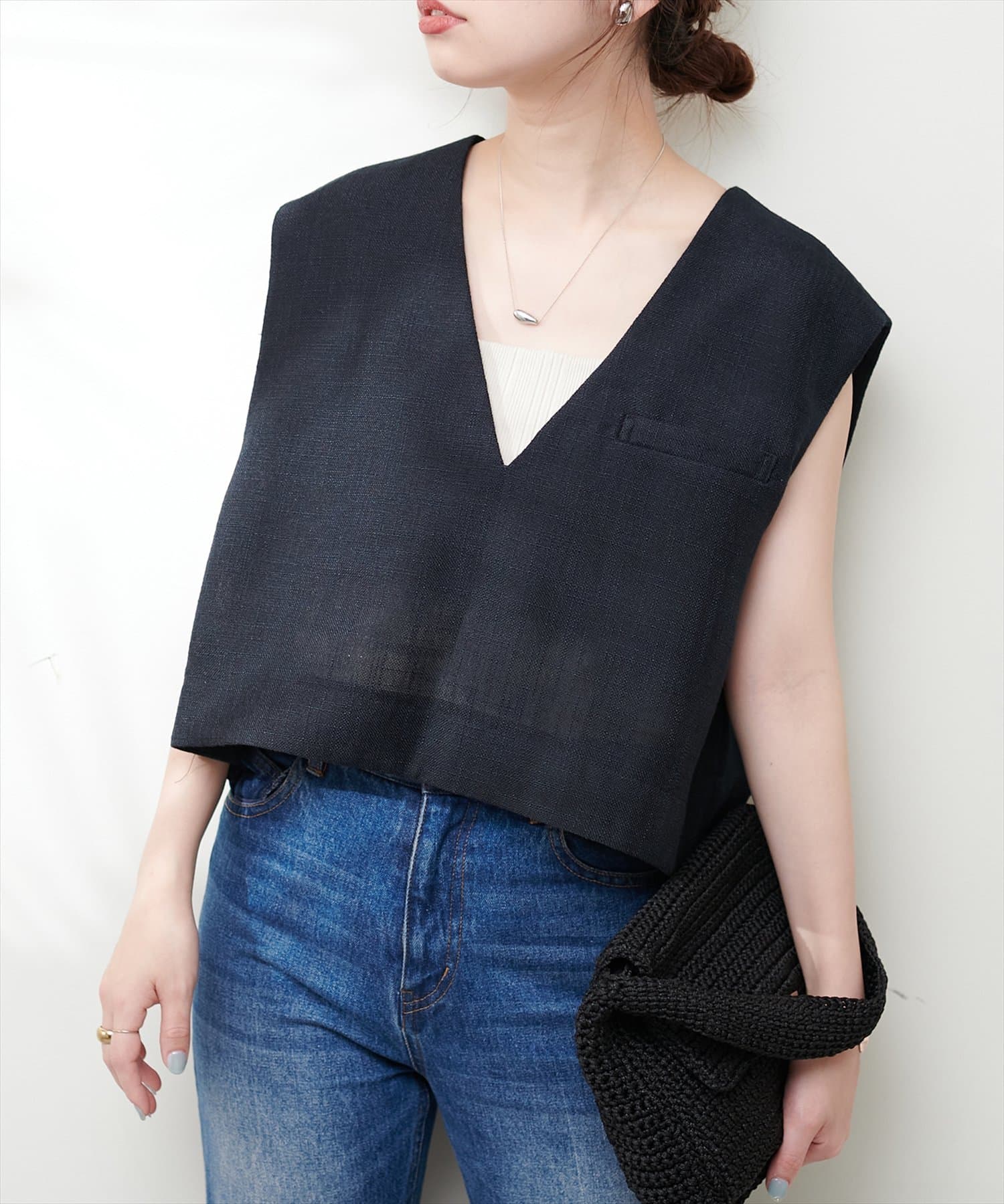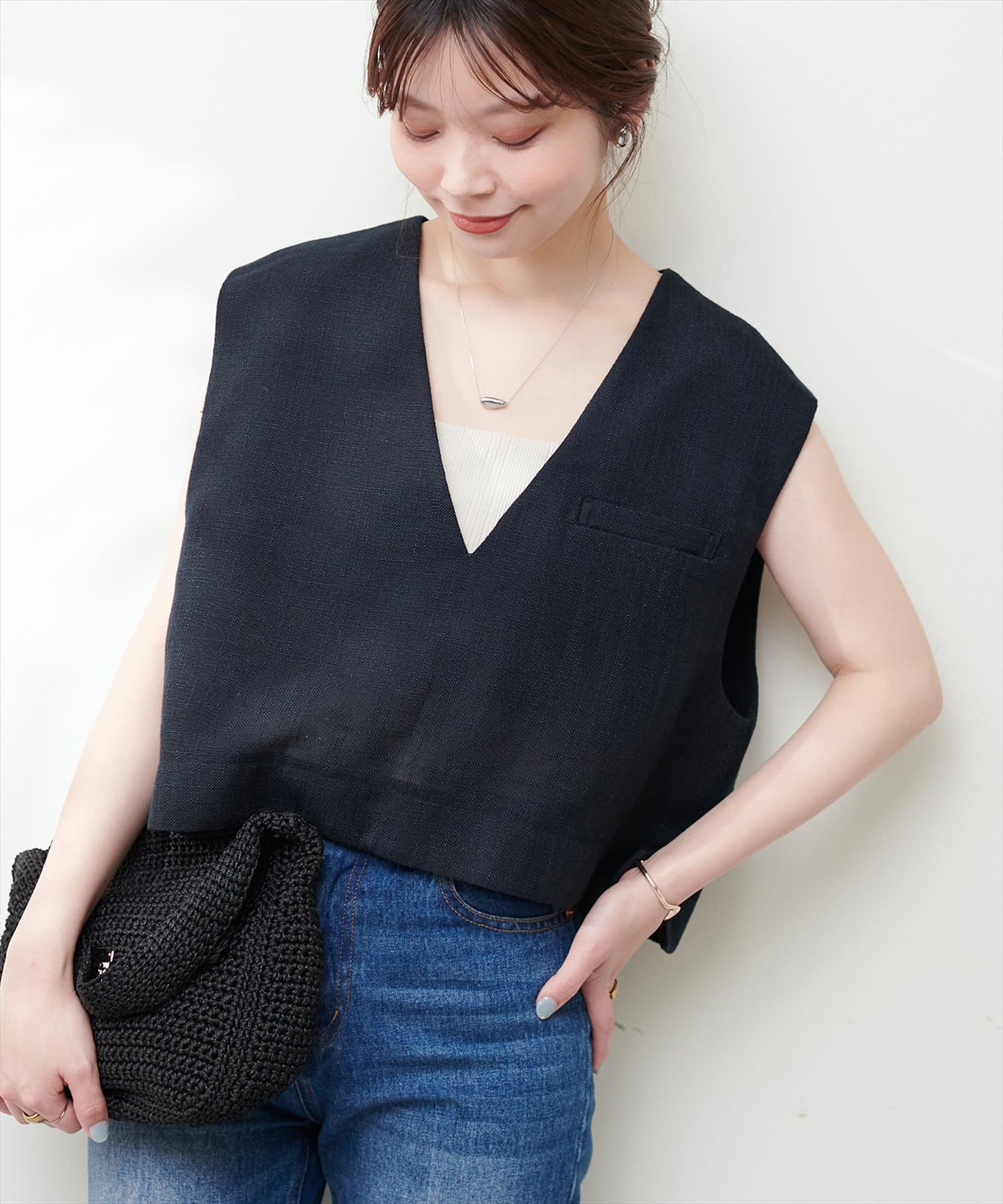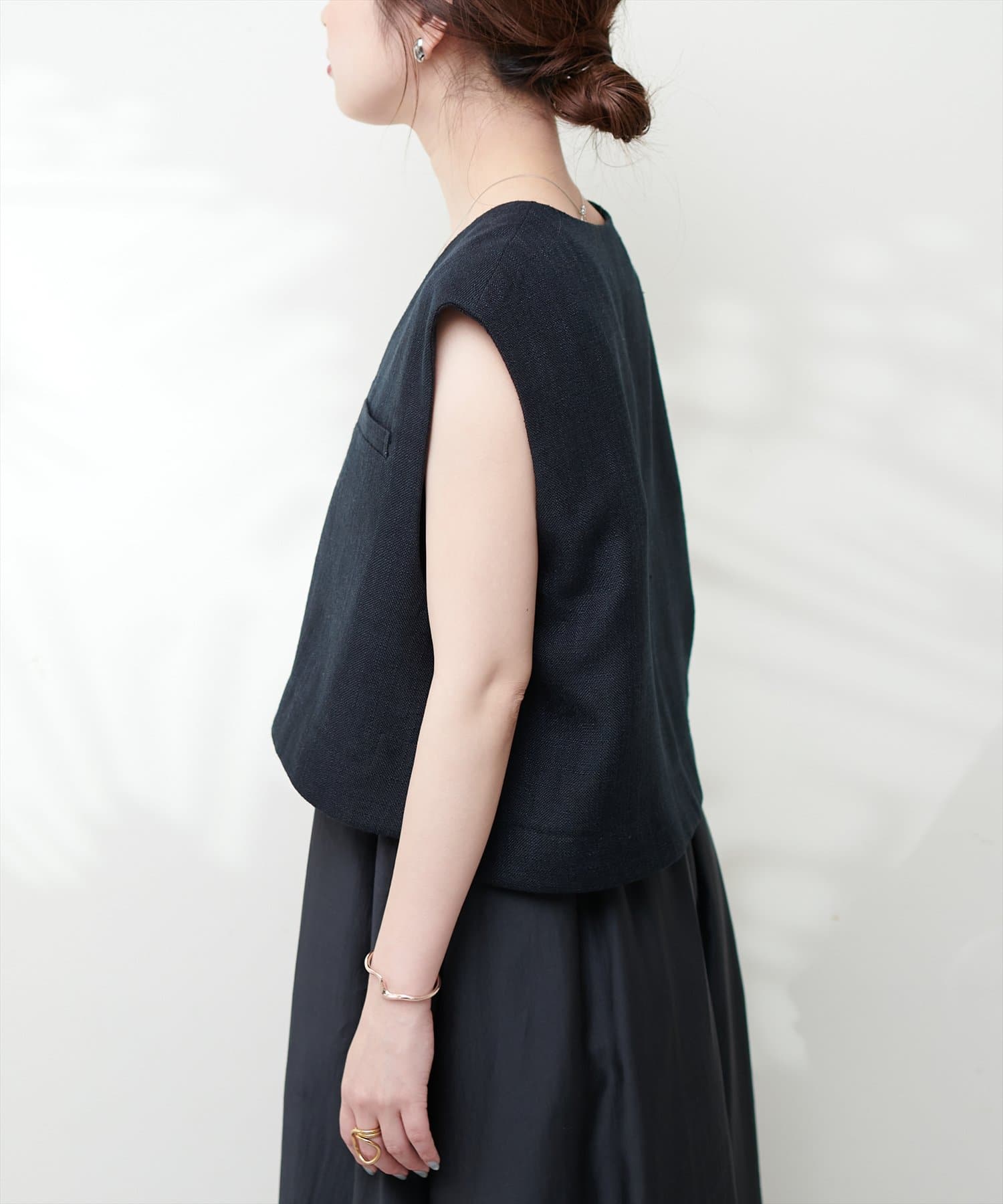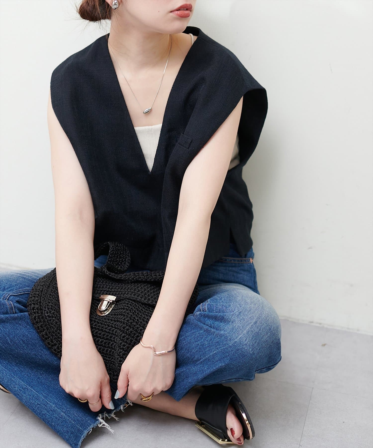 インナーの上から一枚でノースリーブベストとしてもお召いただけますし、