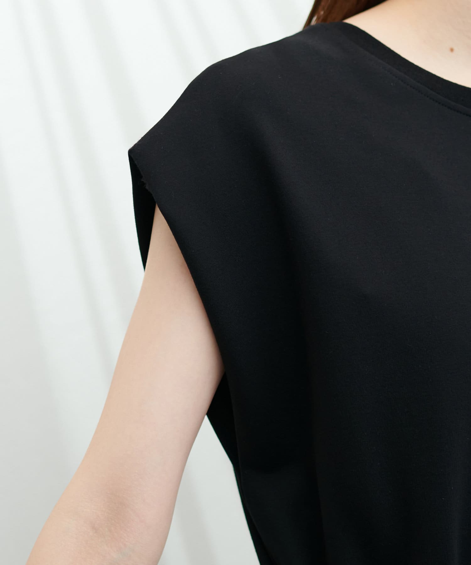 しっかりとした厚みのカット素材を使用し、さらりとして着心地の良い1着。
