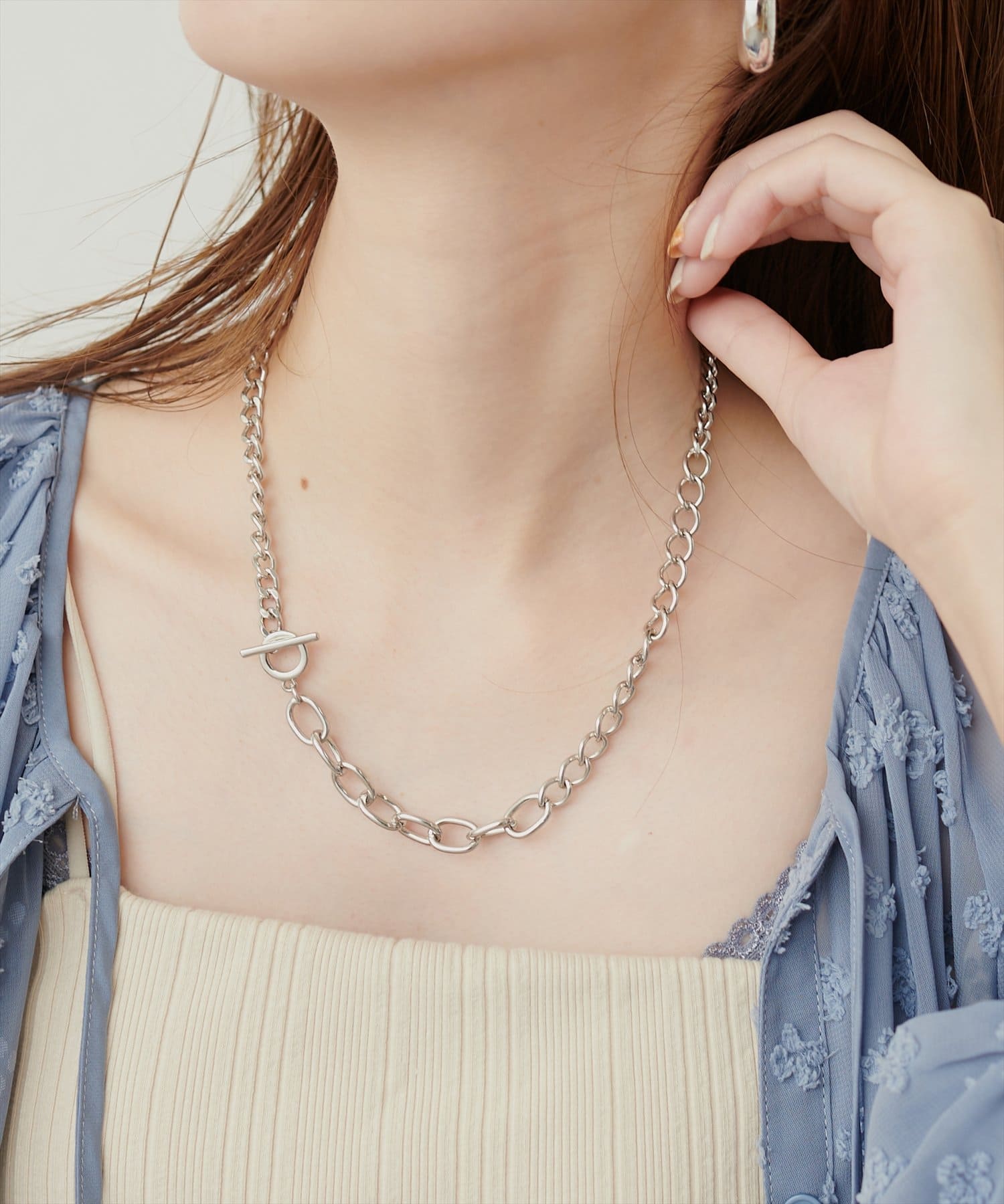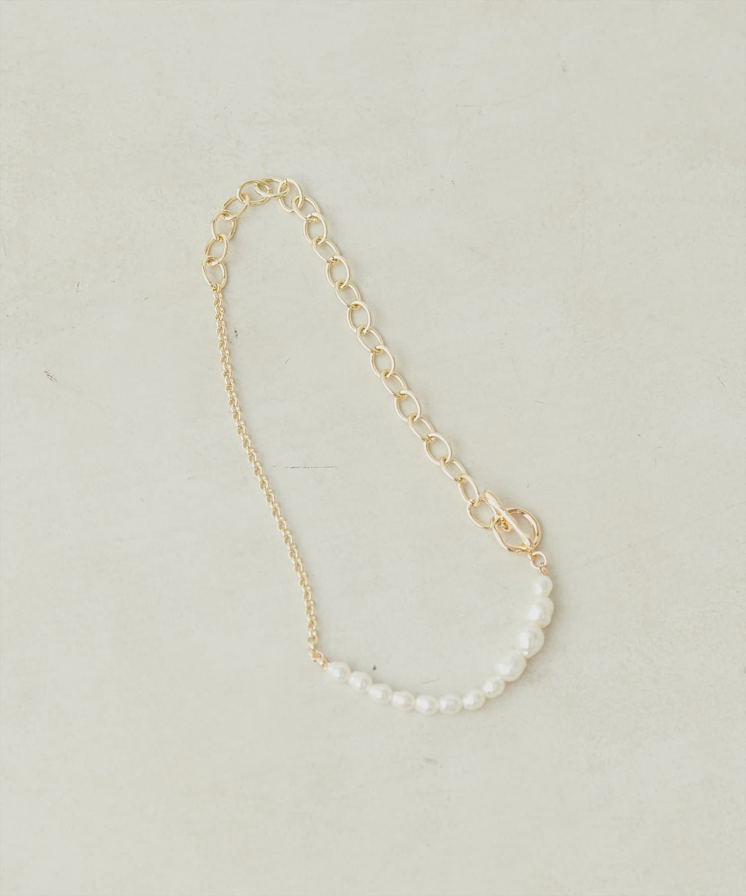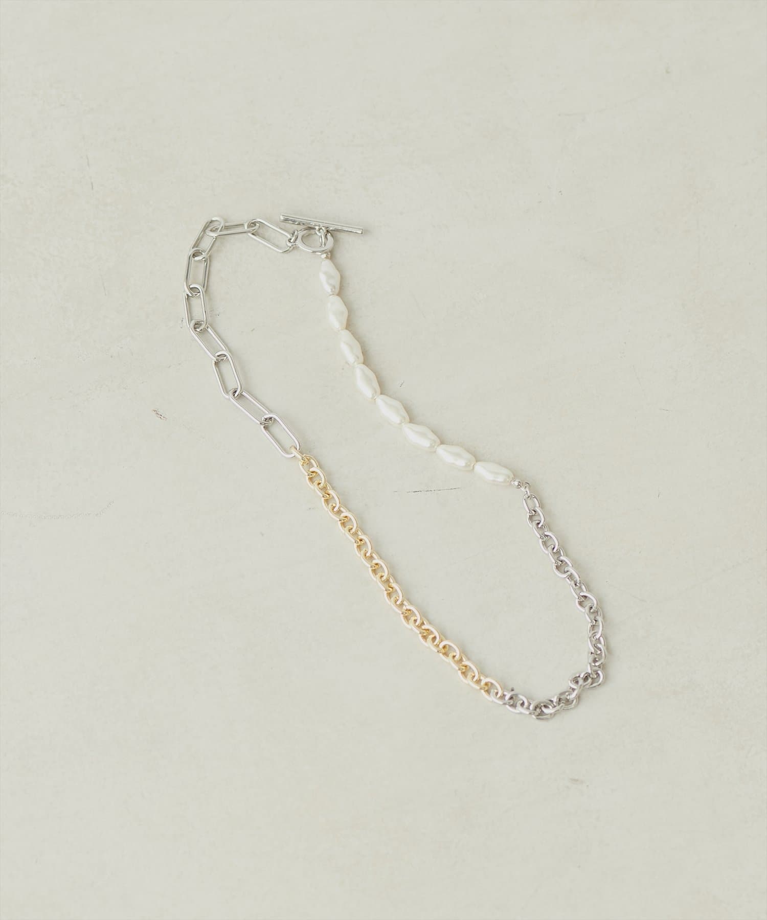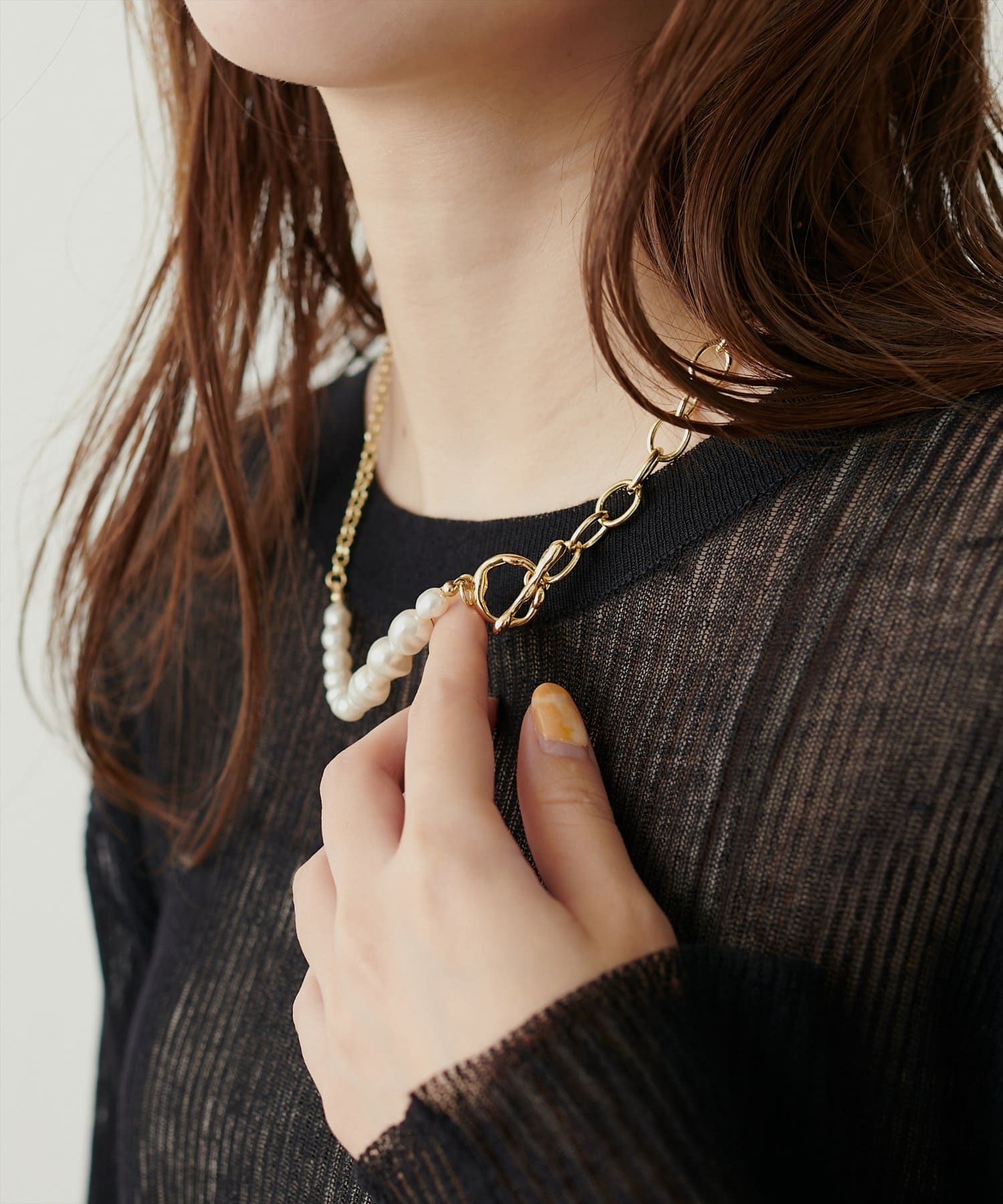 チェーンとパールを組み合わせたデザイン性のあるパールネックレスは
