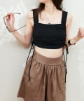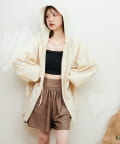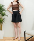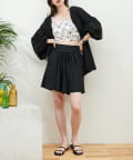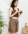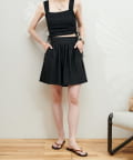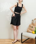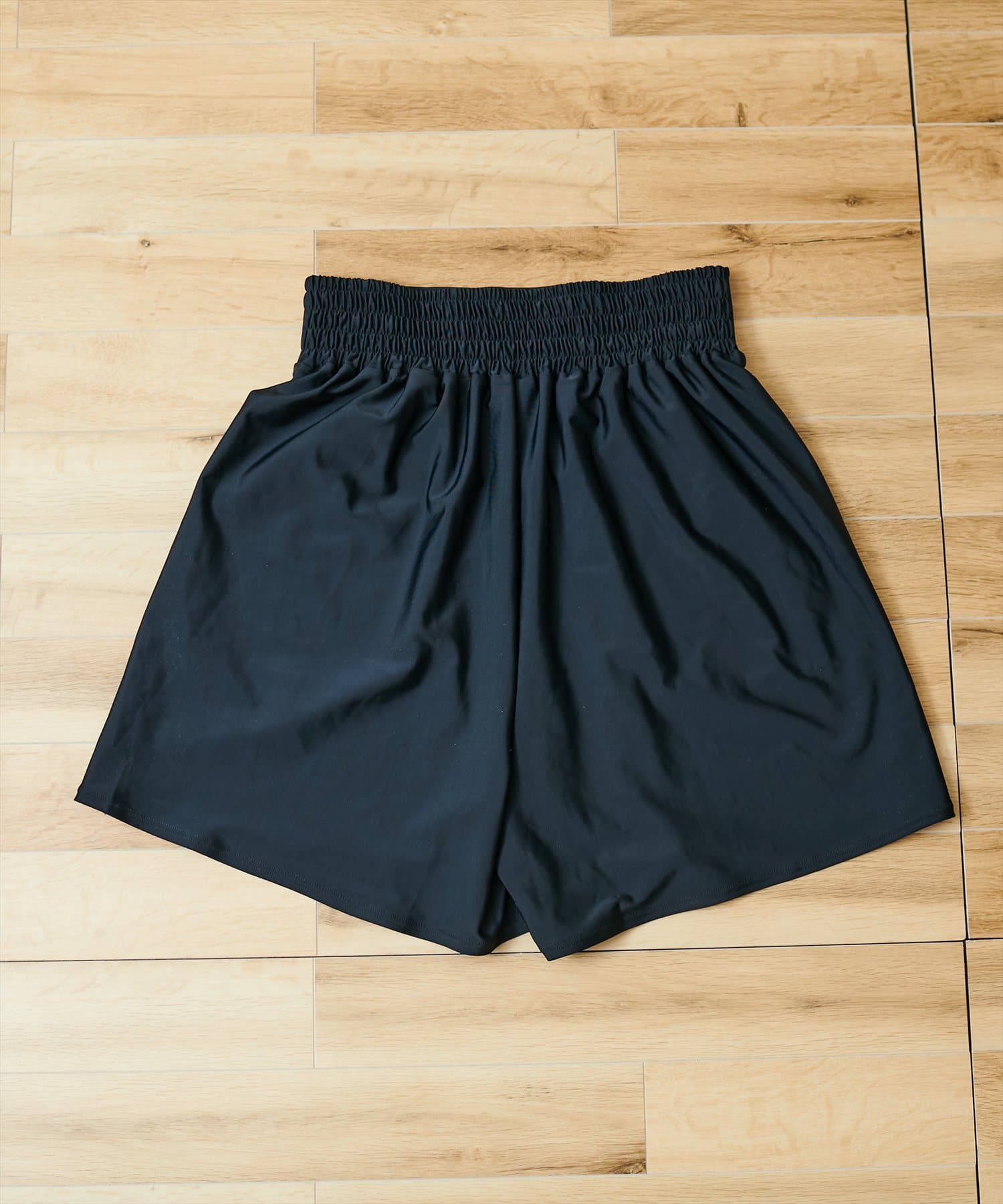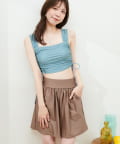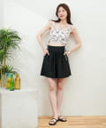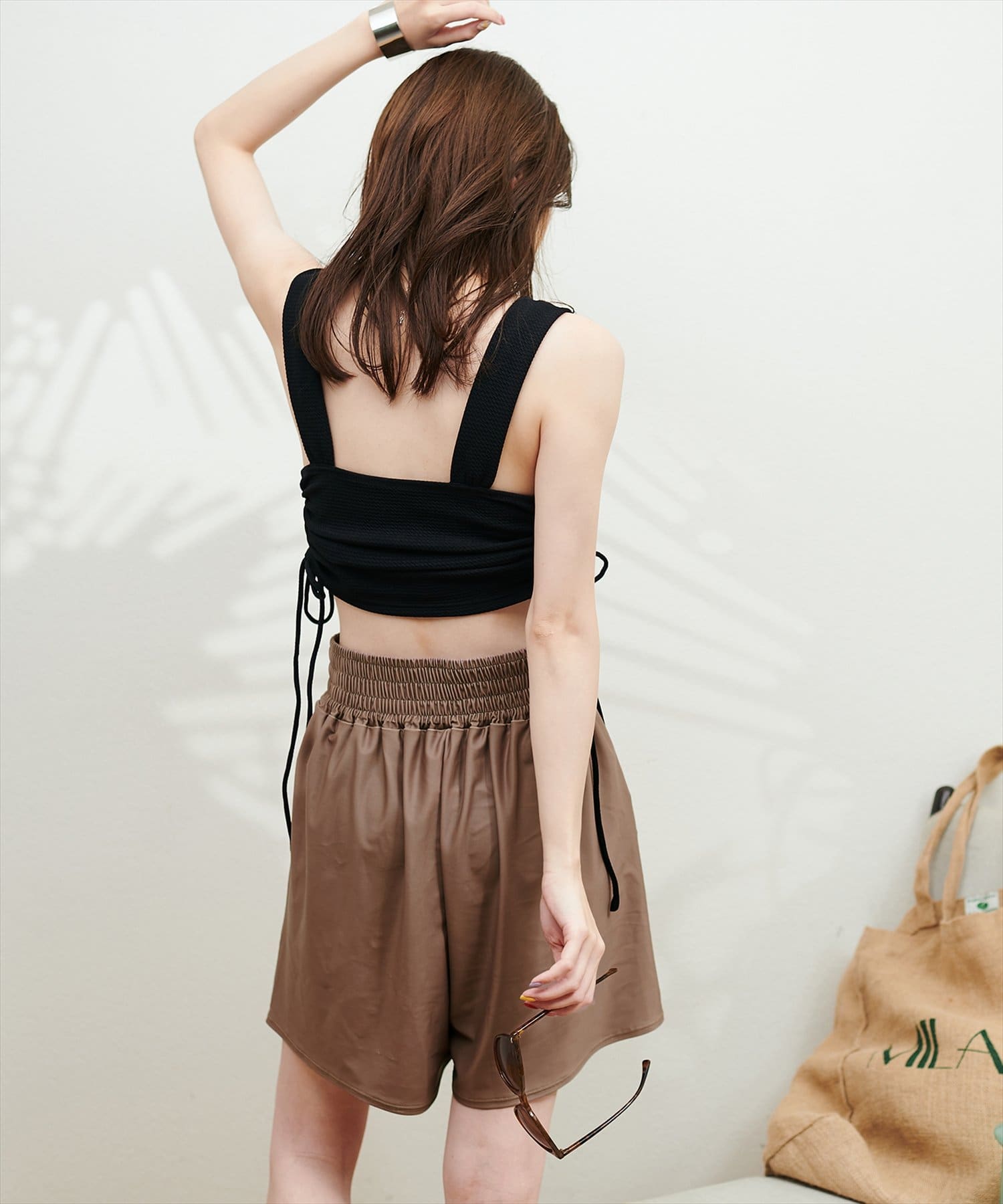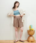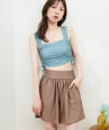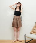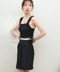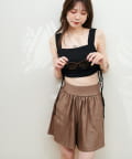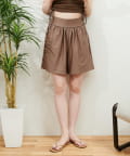 スタイルアップ効果のあるハイウエストショートパンツ。