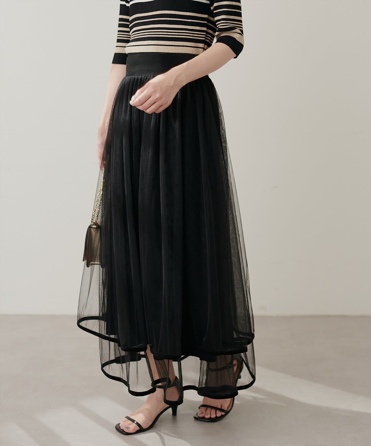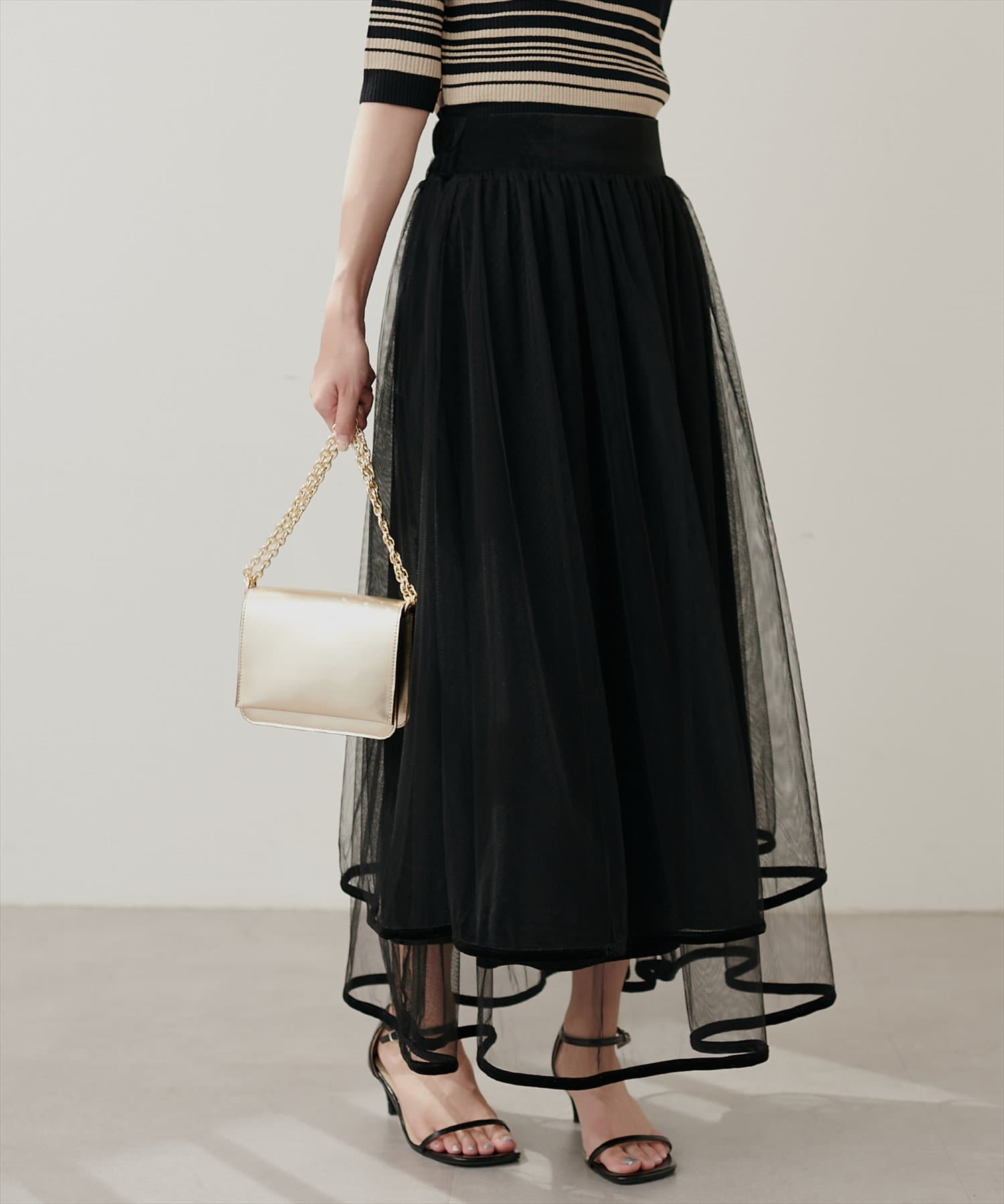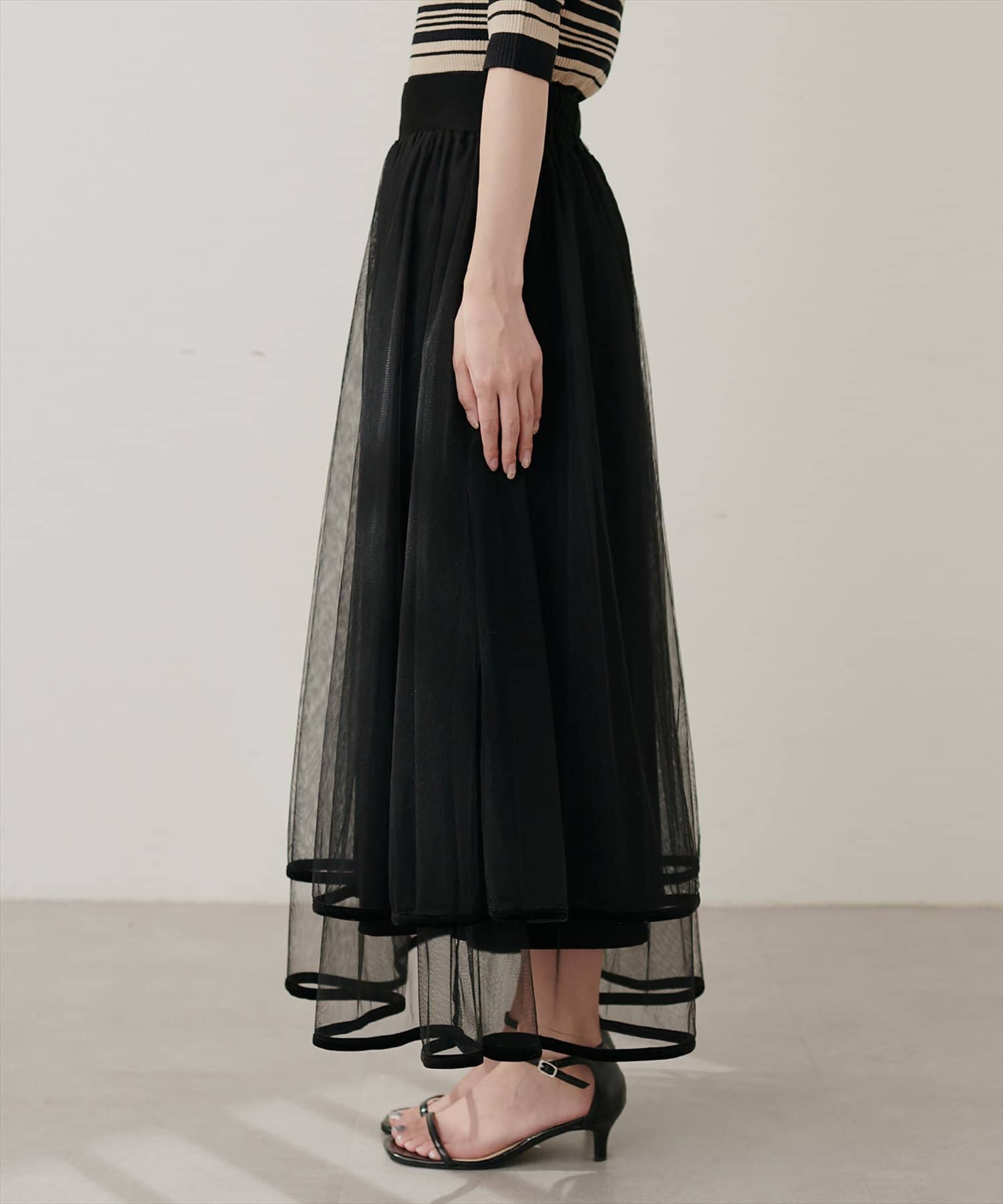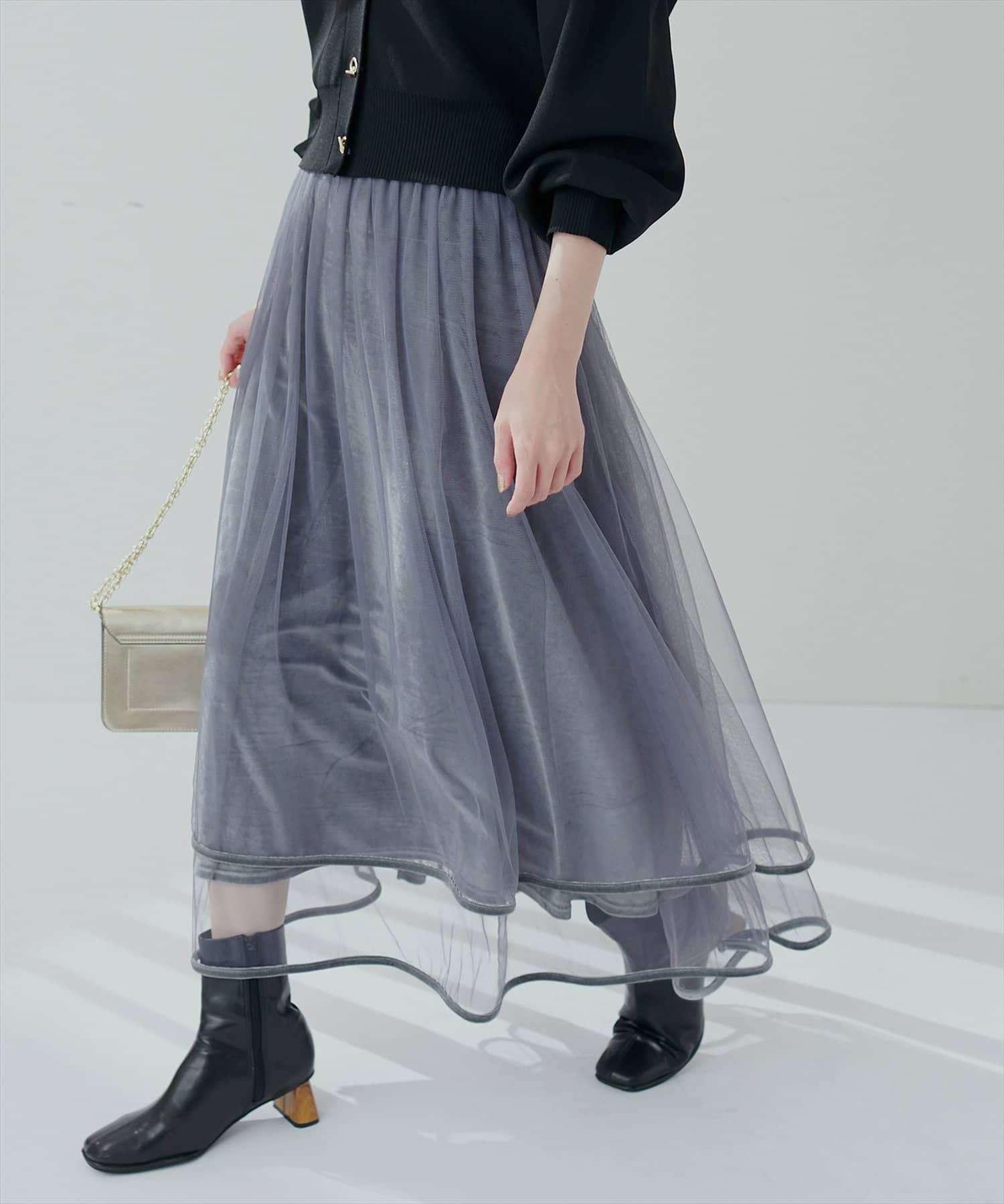 コーディネートに華やかさをプラスしてくれる贅沢なボリューム感が魅力のチュールスカート。