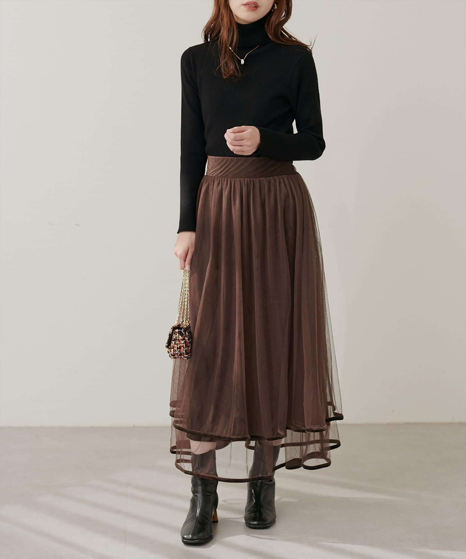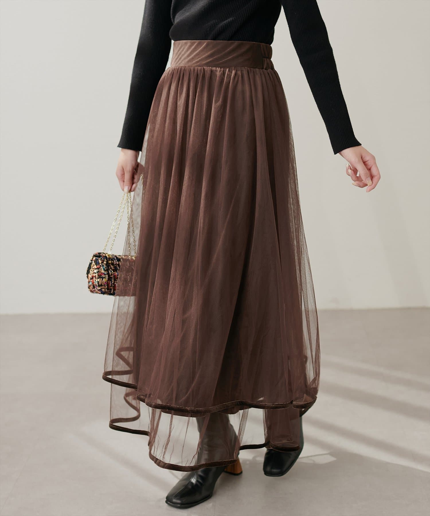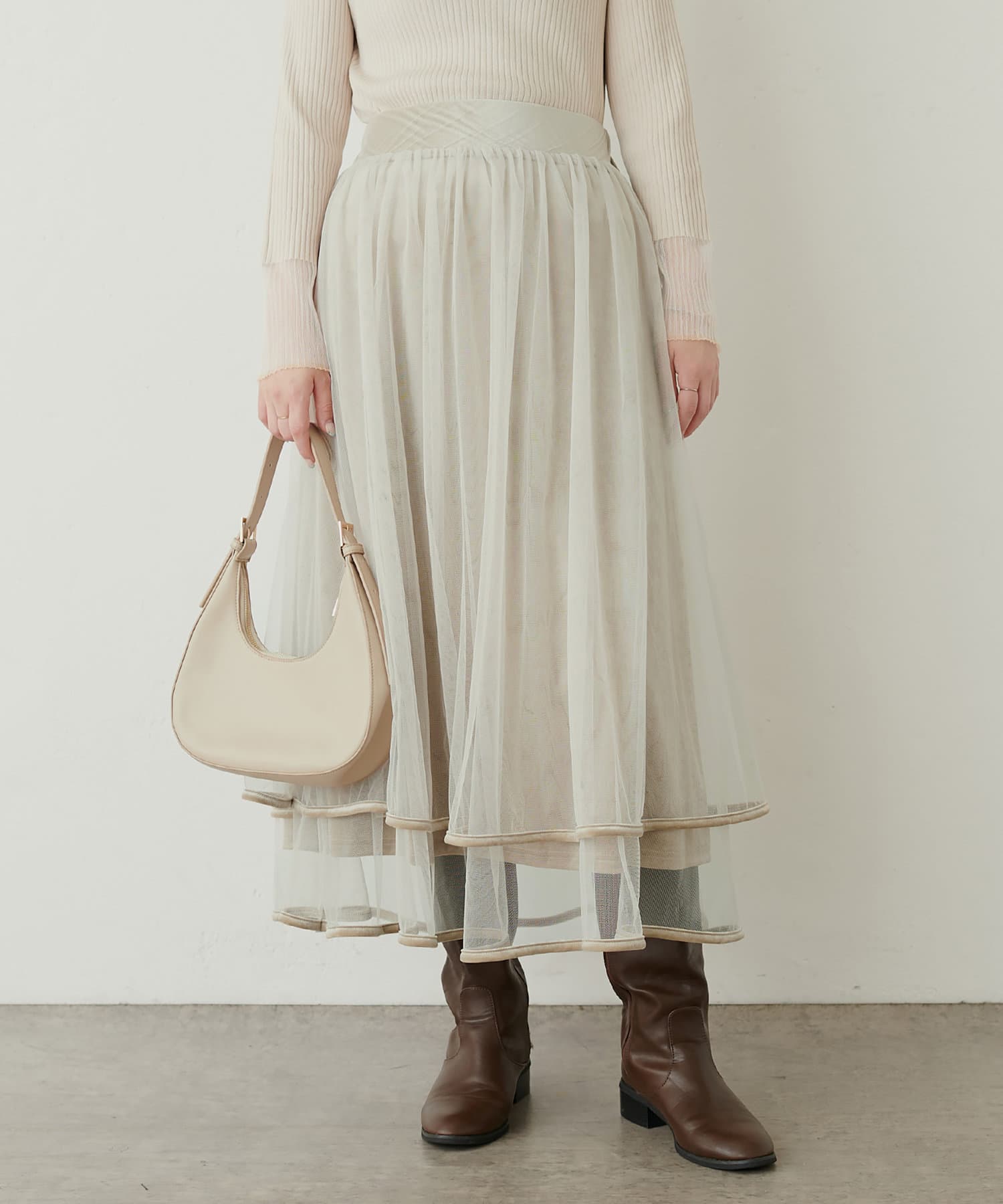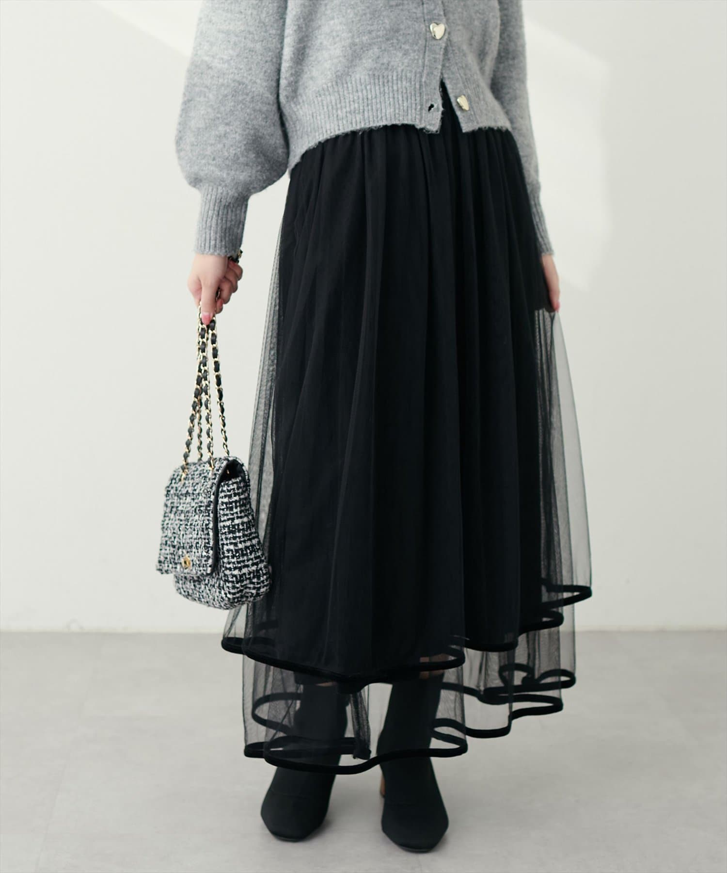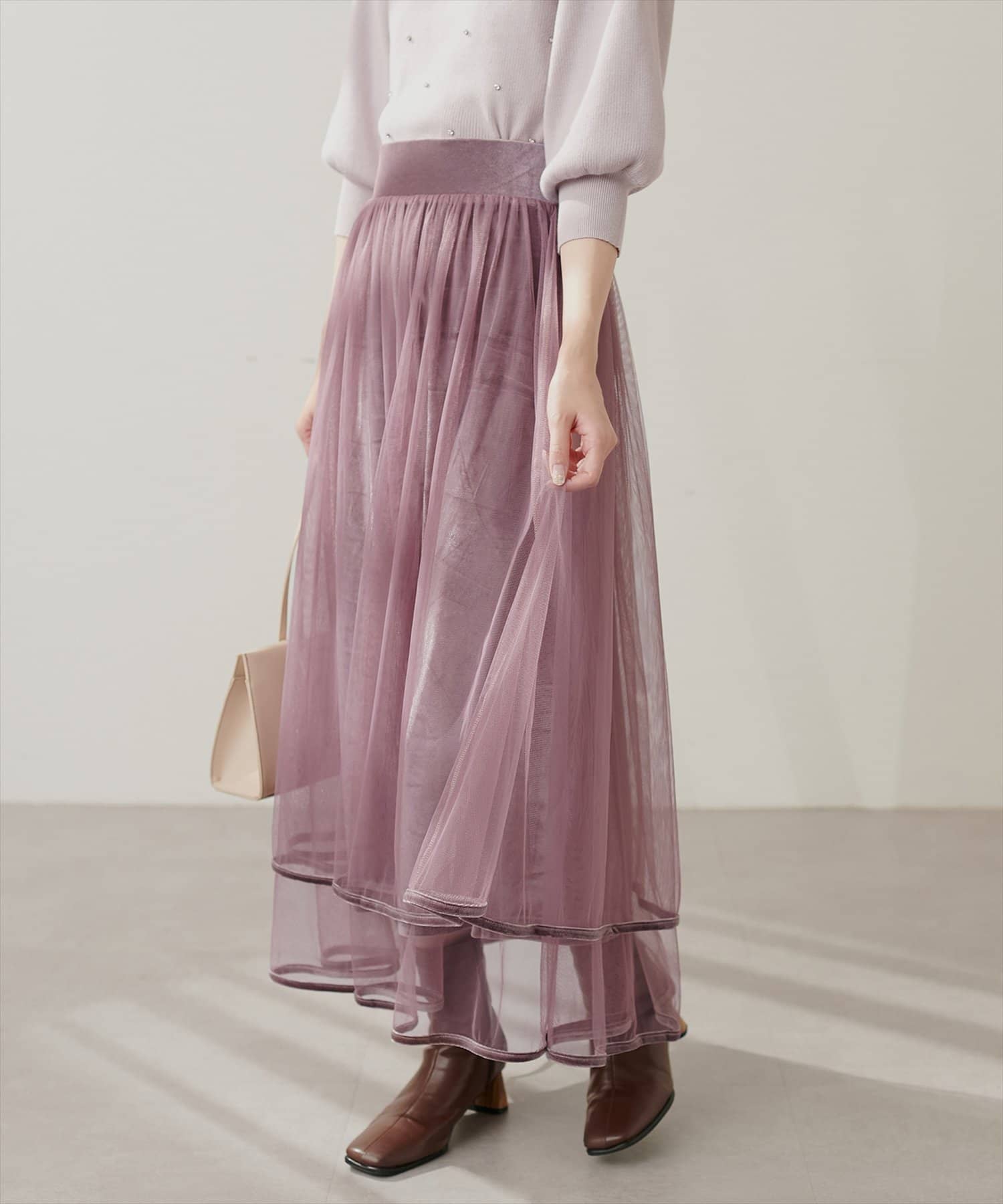 コーディネートに華やかさをプラスしてくれる贅沢なボリューム感が魅力のチュールスカート。