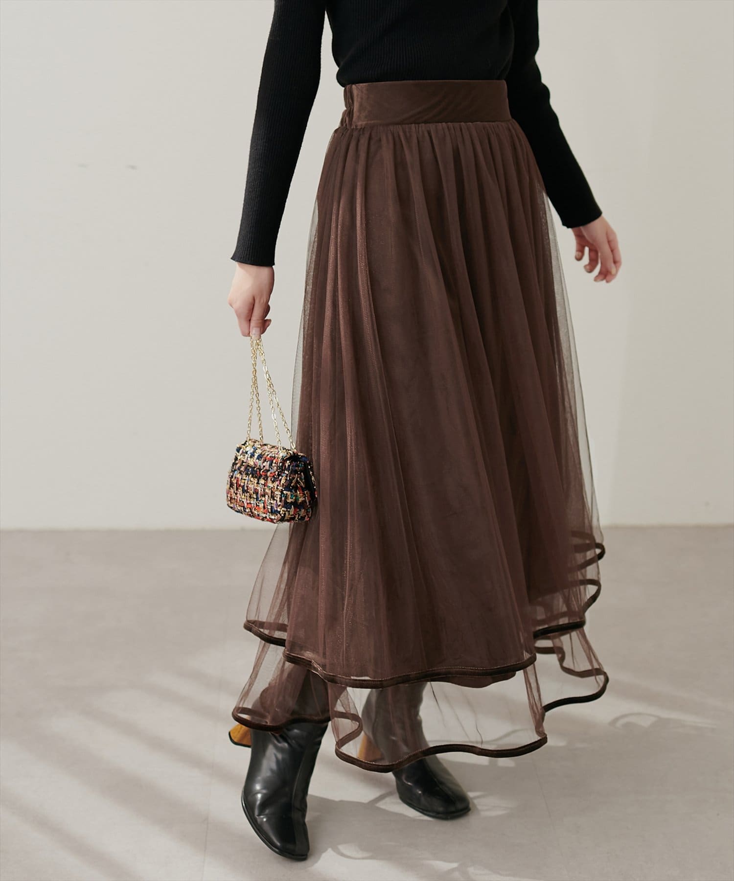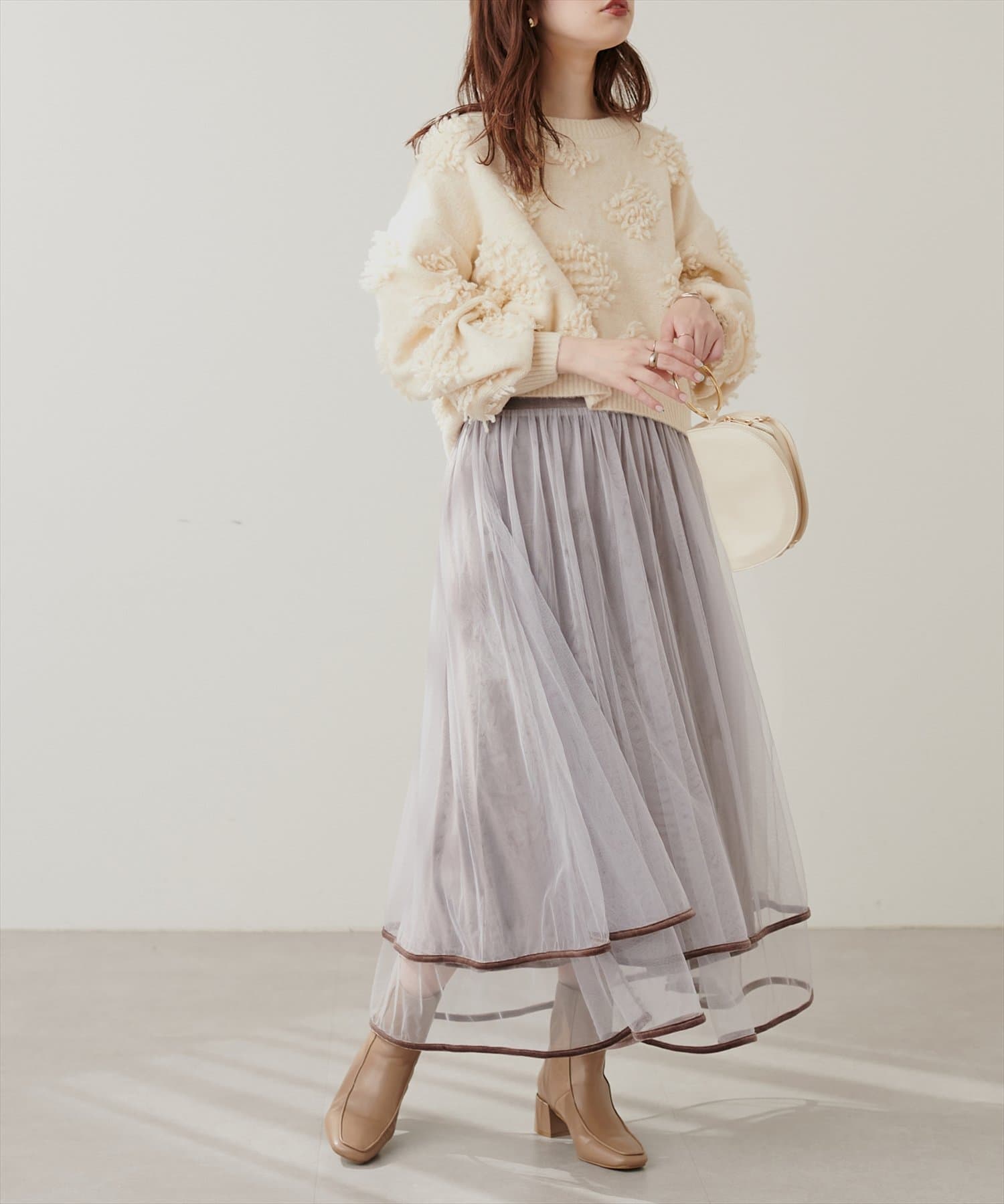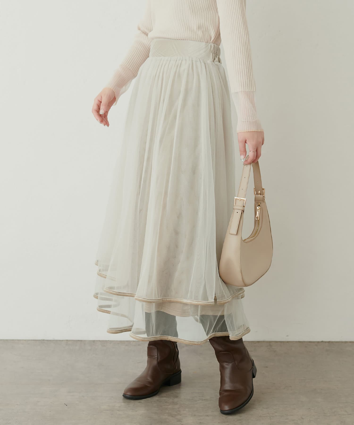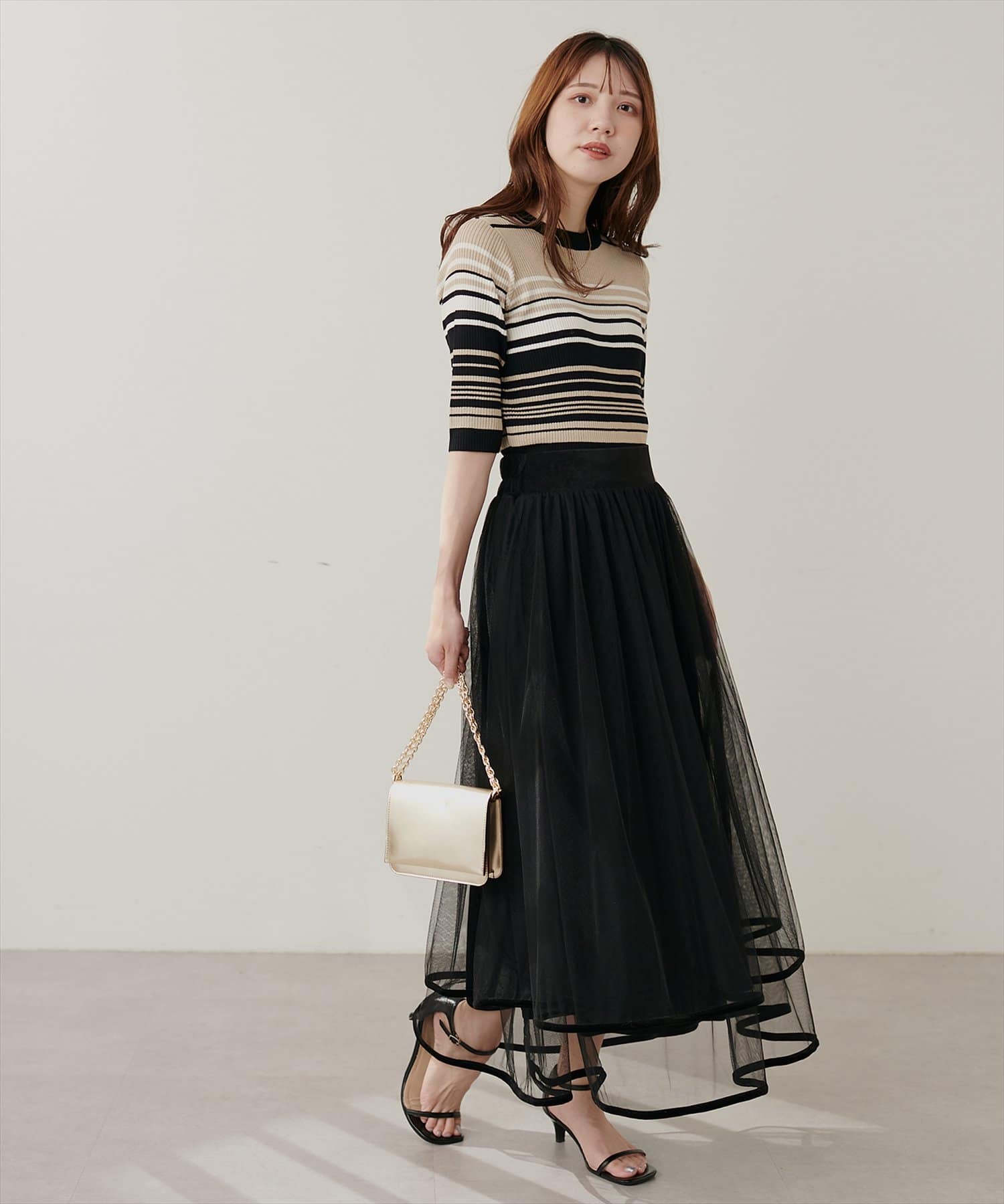 コーディネートに華やかさをプラスしてくれる贅沢なボリューム感が魅力のチュールスカート。