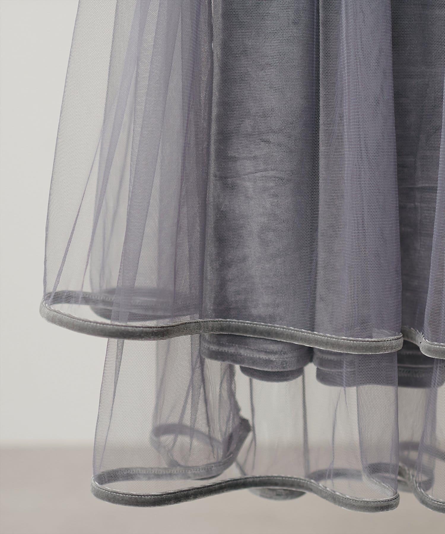 生地感:柔らかなチュール素材と滑らかなベロア生地