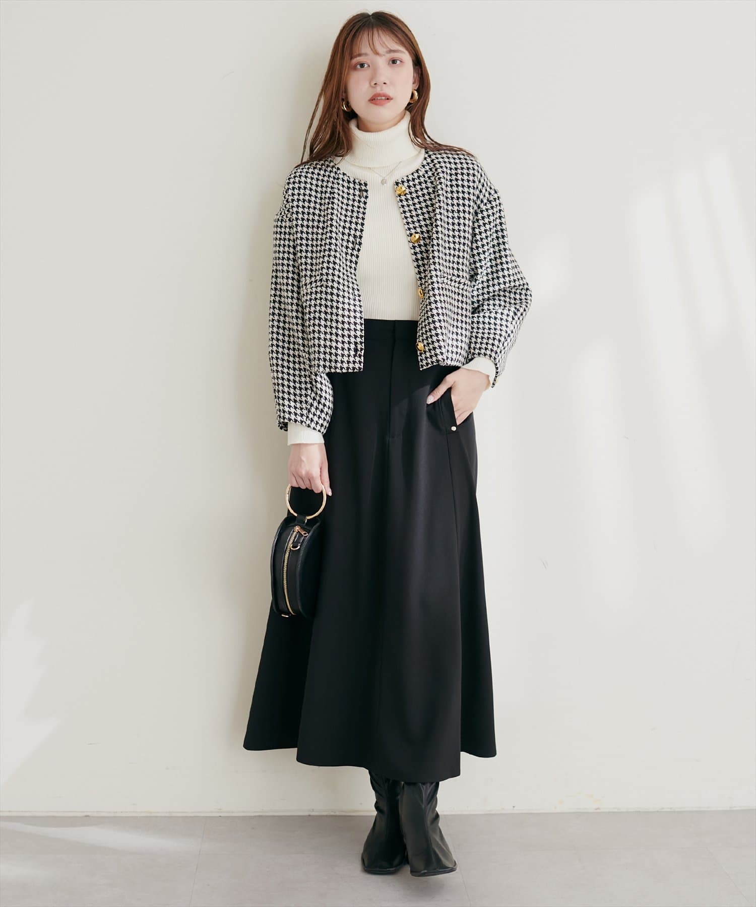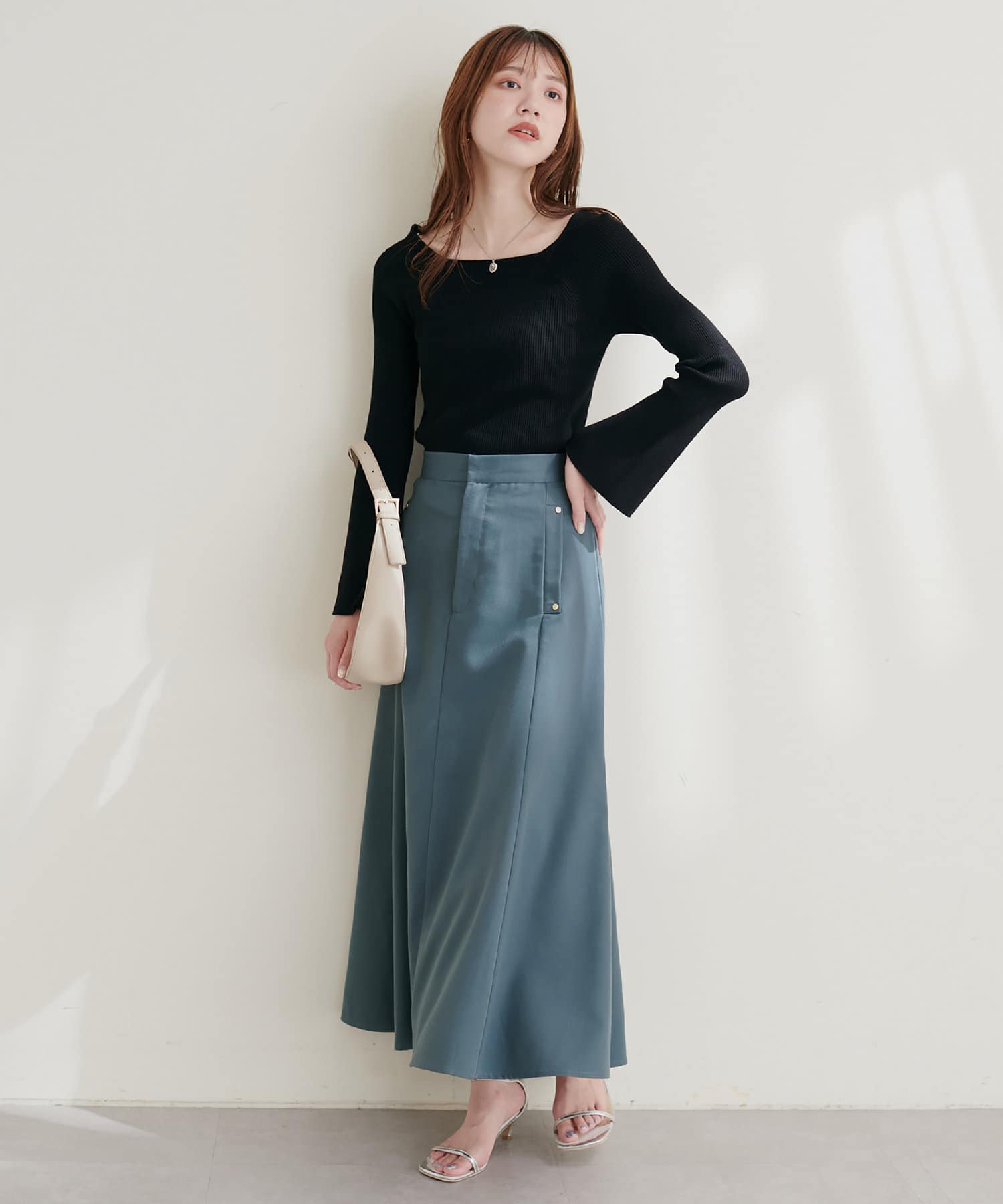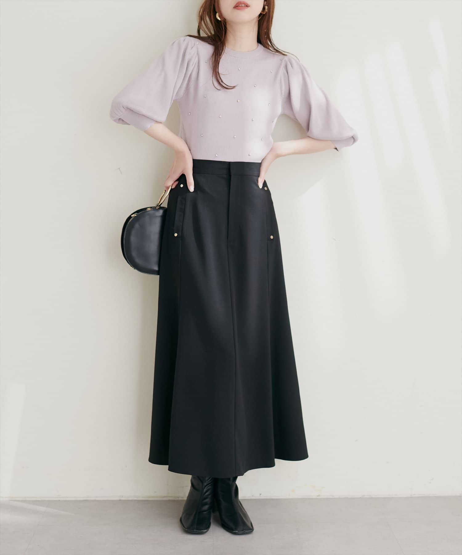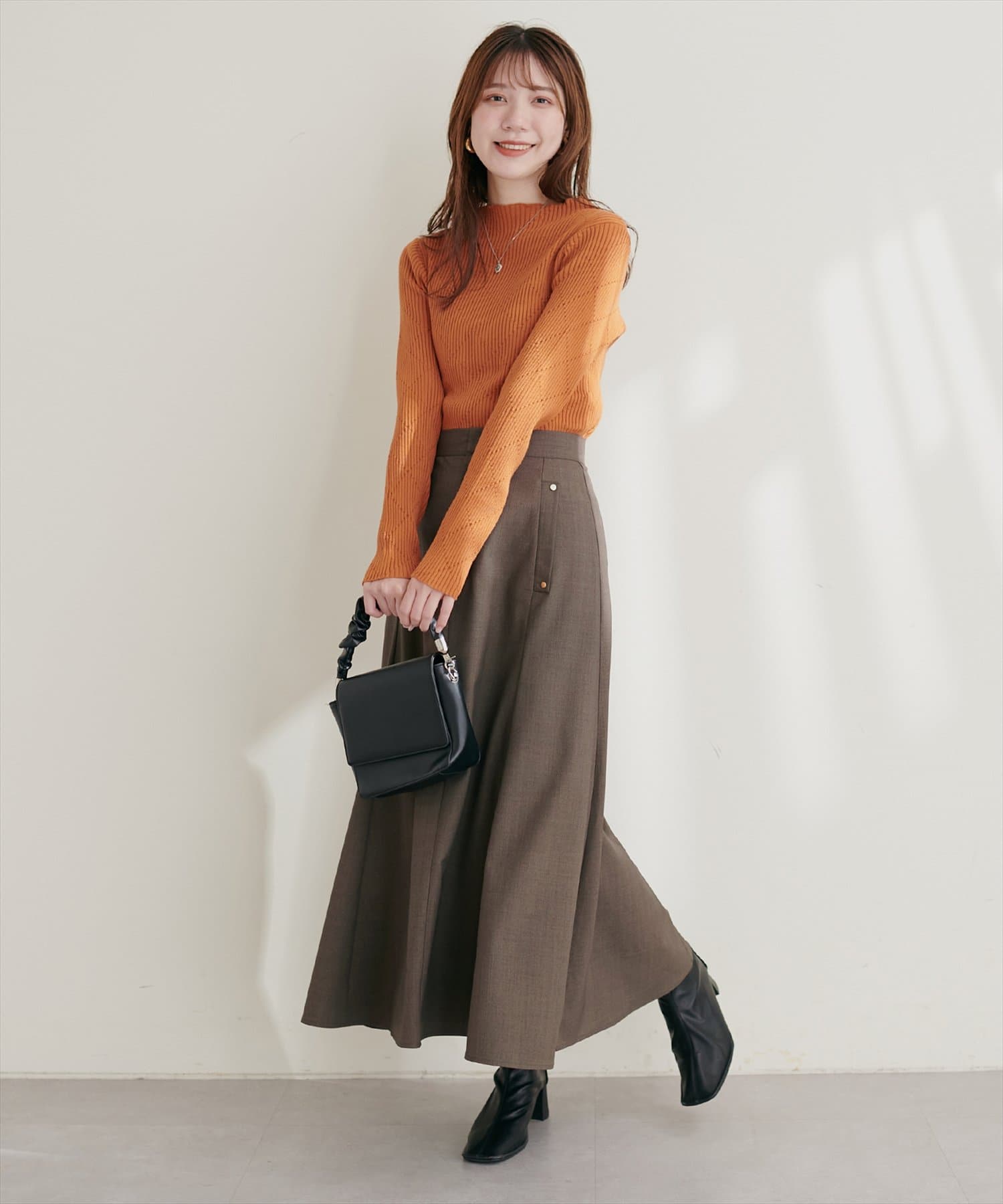 ニットなどをアウトスタイルでカジュアルに仕上げても◎