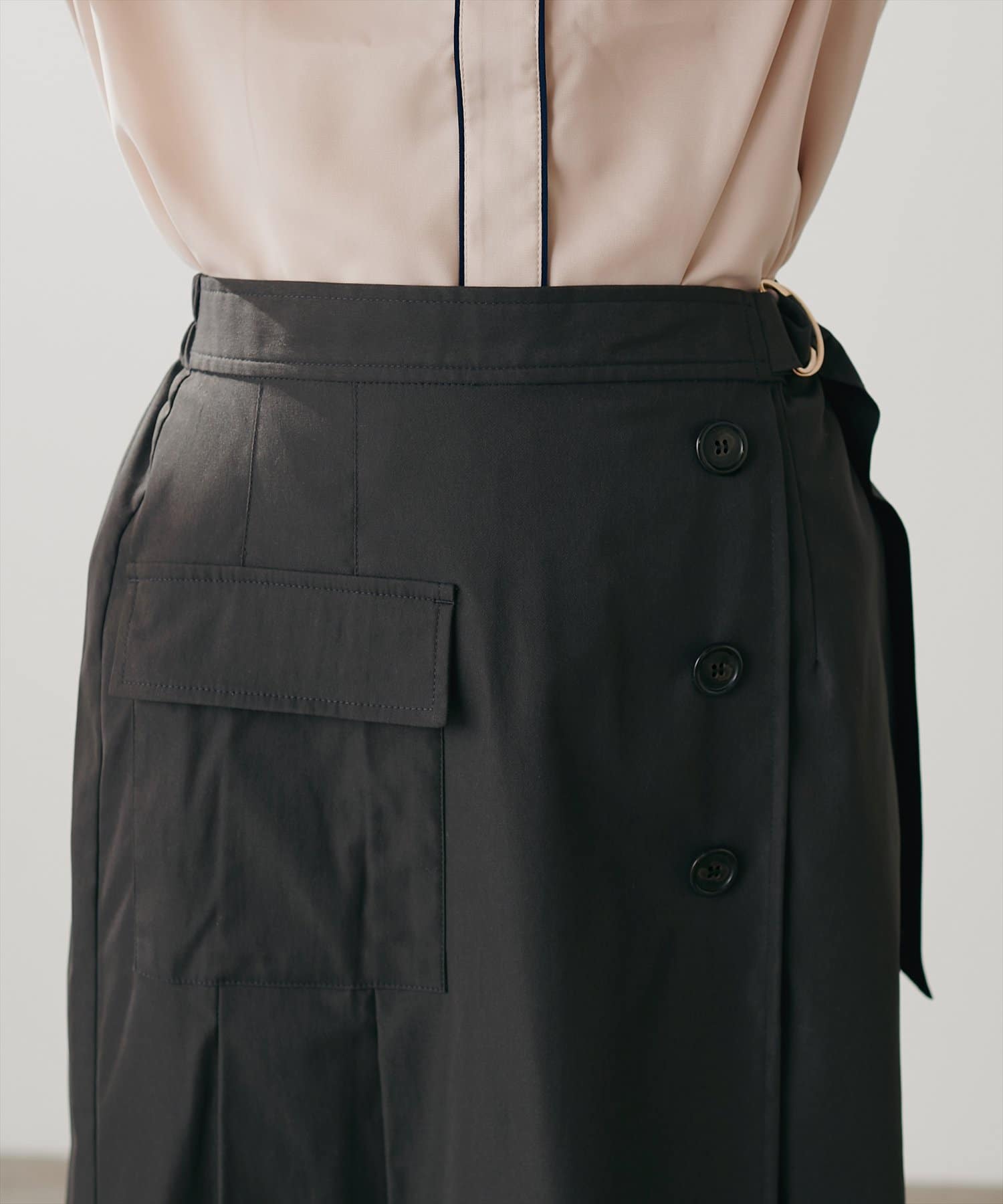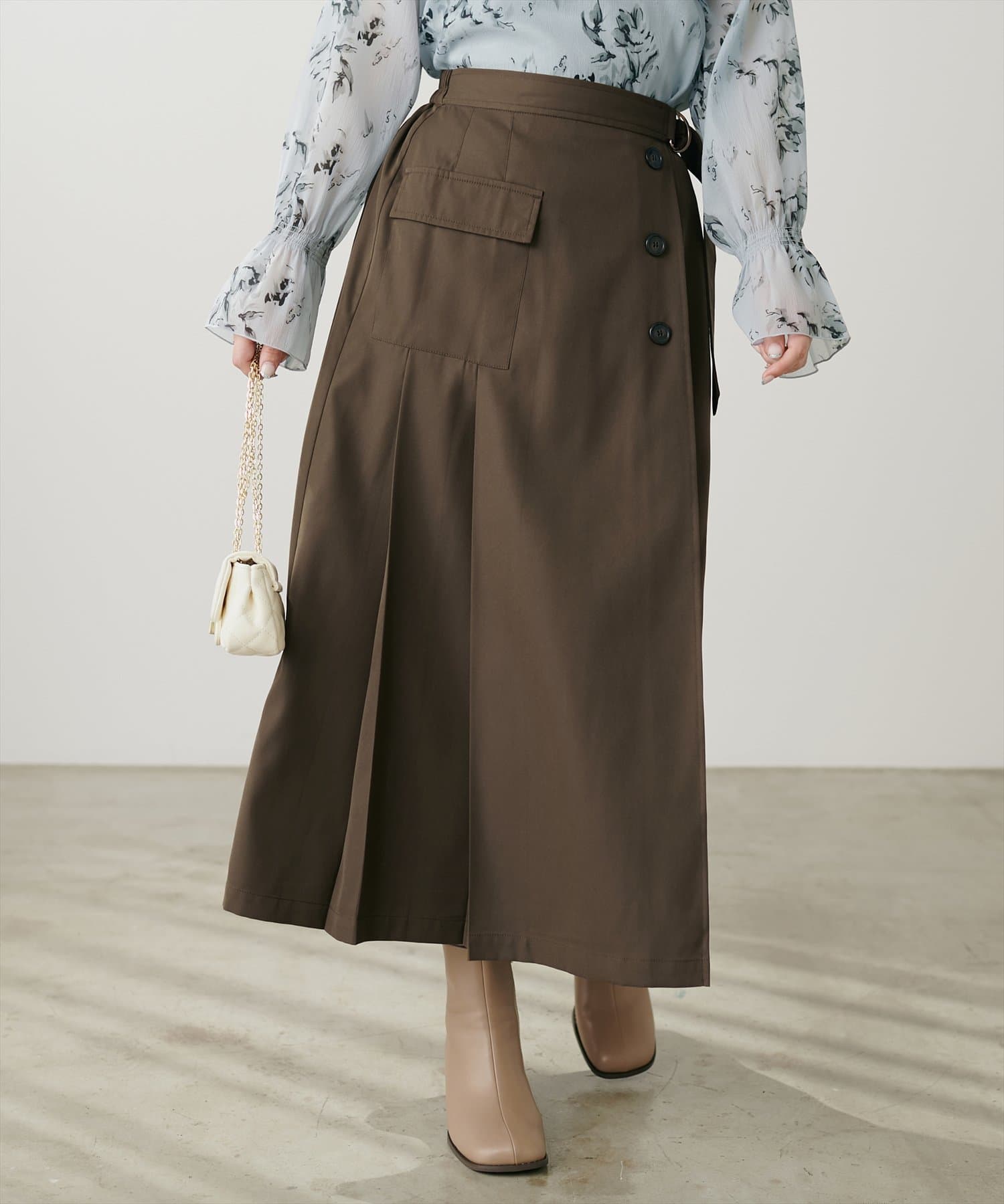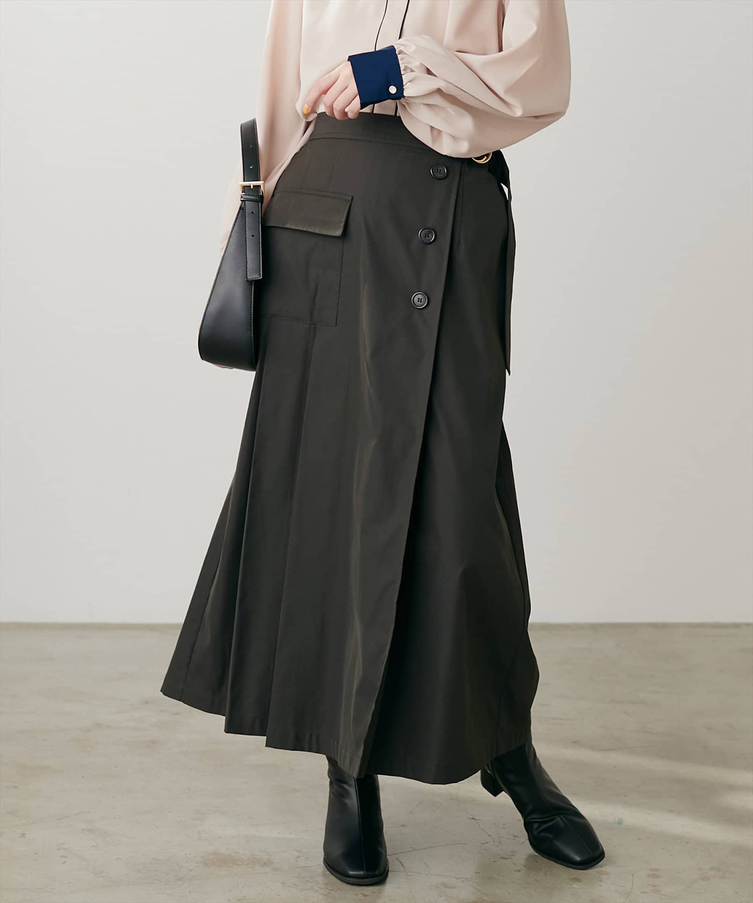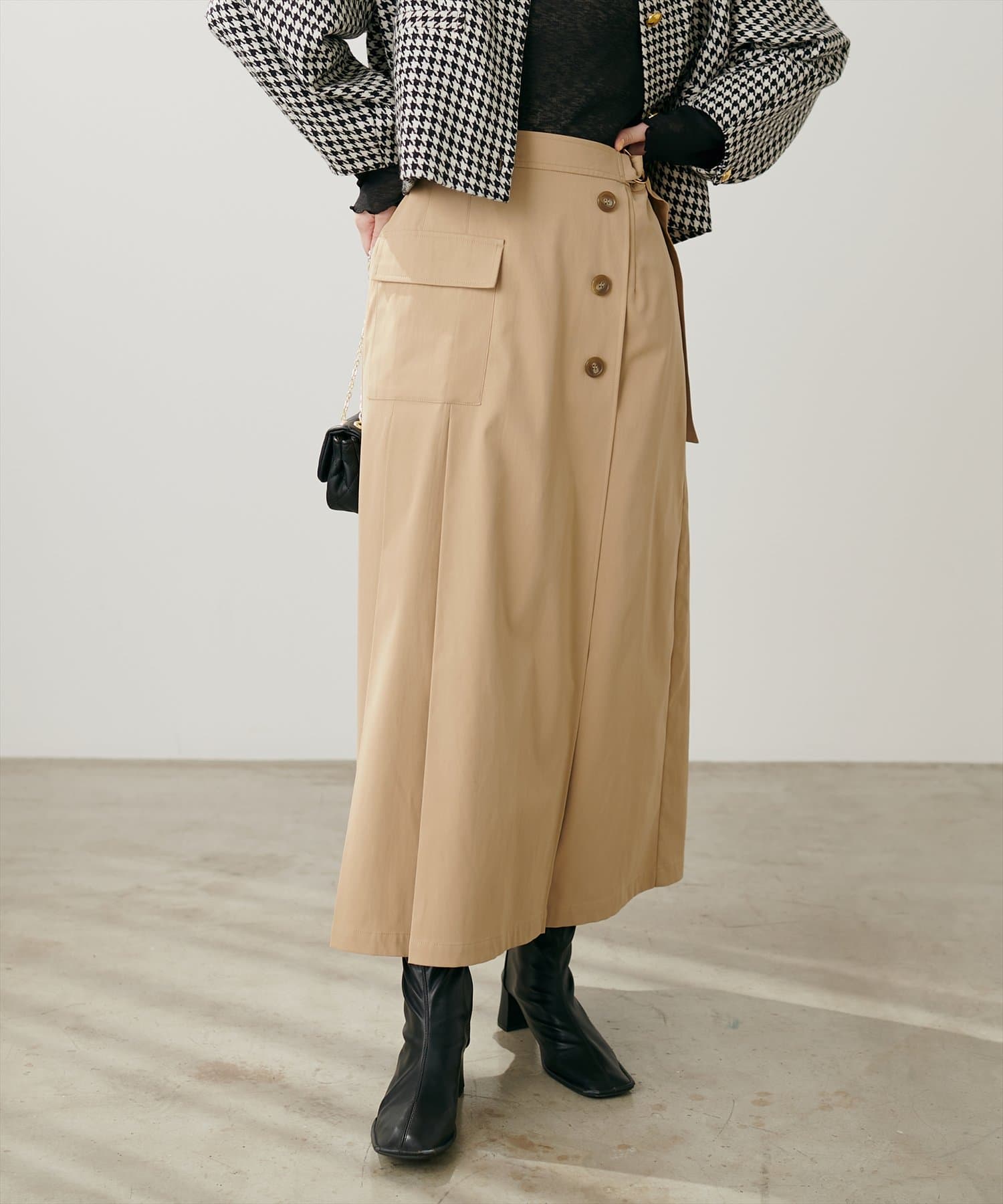 大胆な2本のタックとフェイク釦が印象的なミリタリースカート。