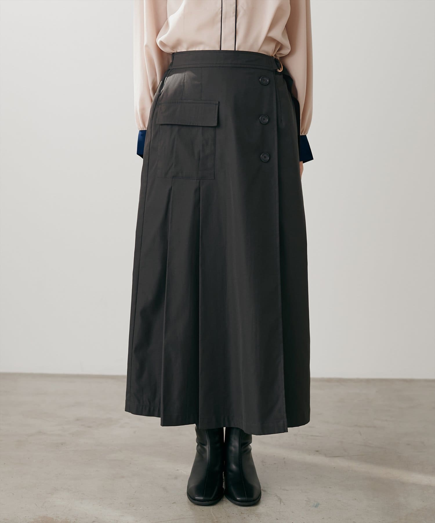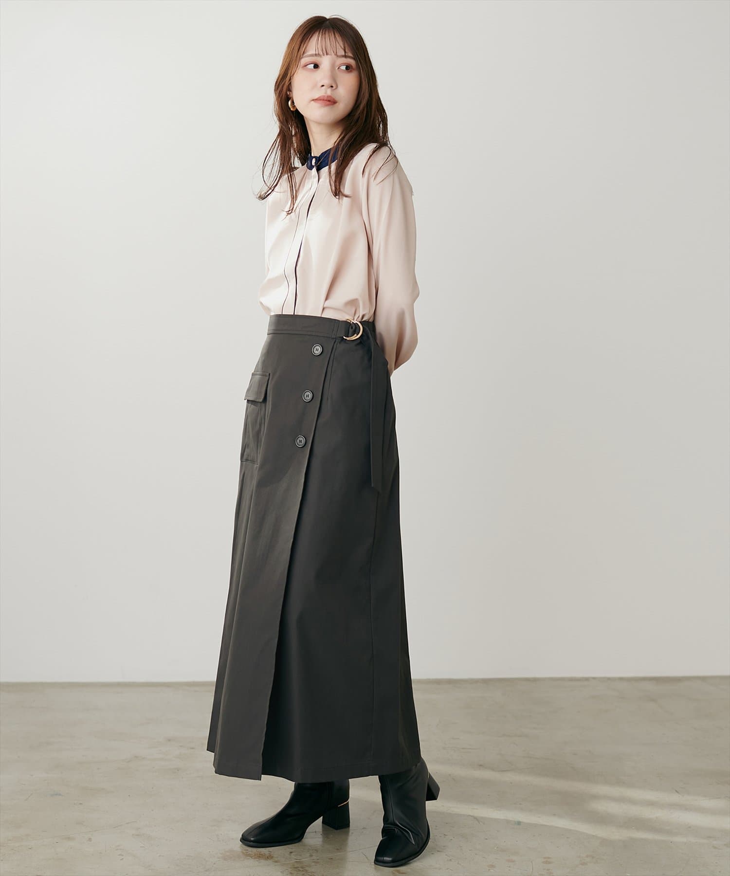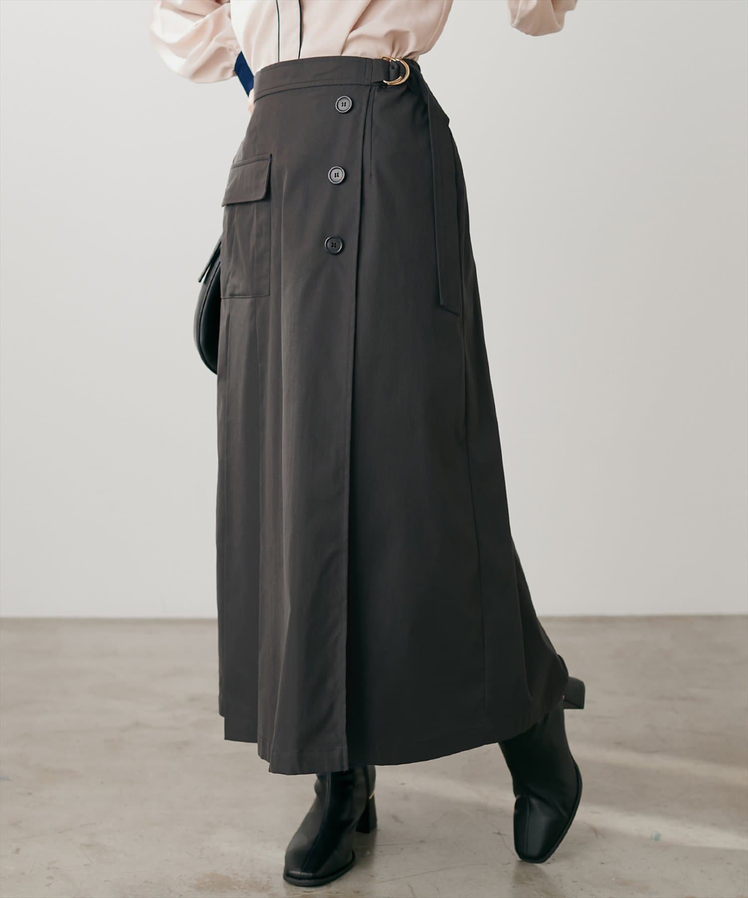大胆な2本のタックとフェイク釦が印象的なミリタリースカート。