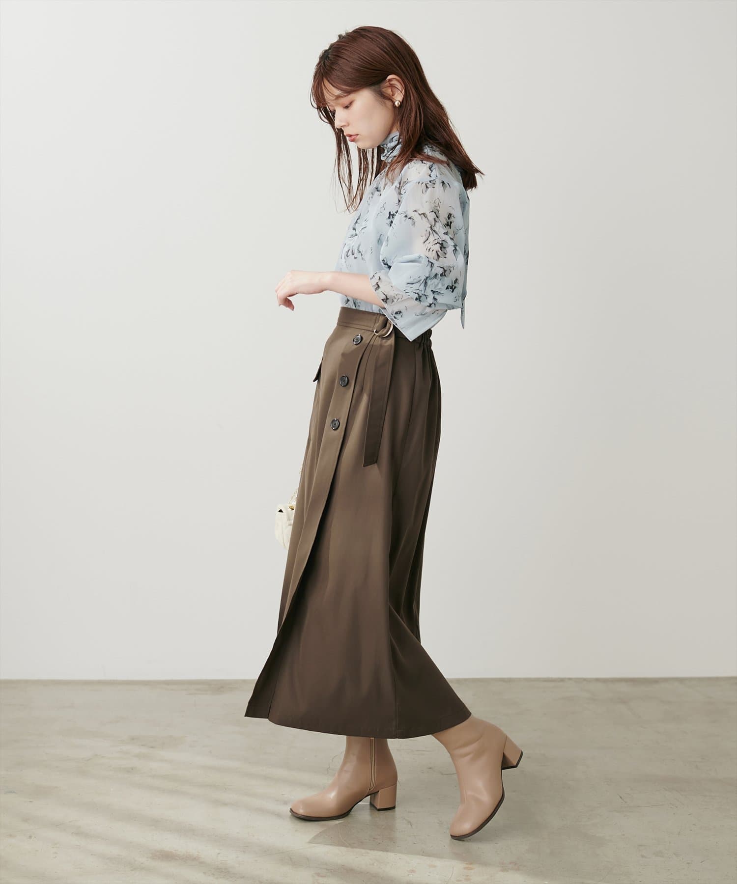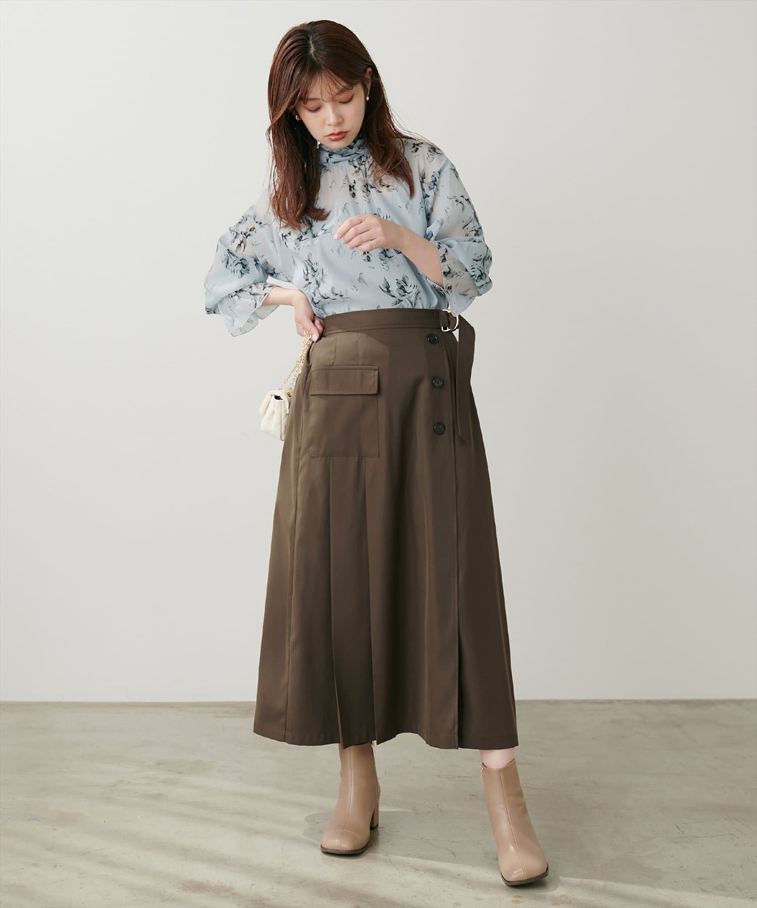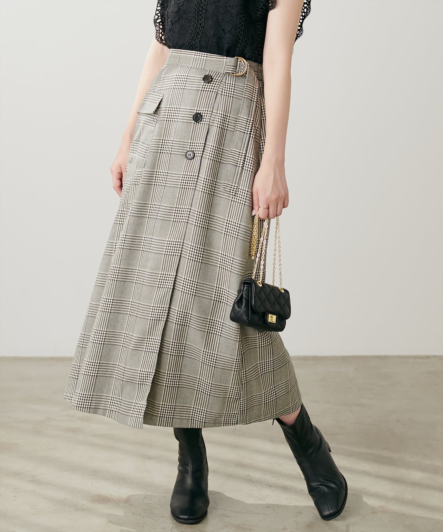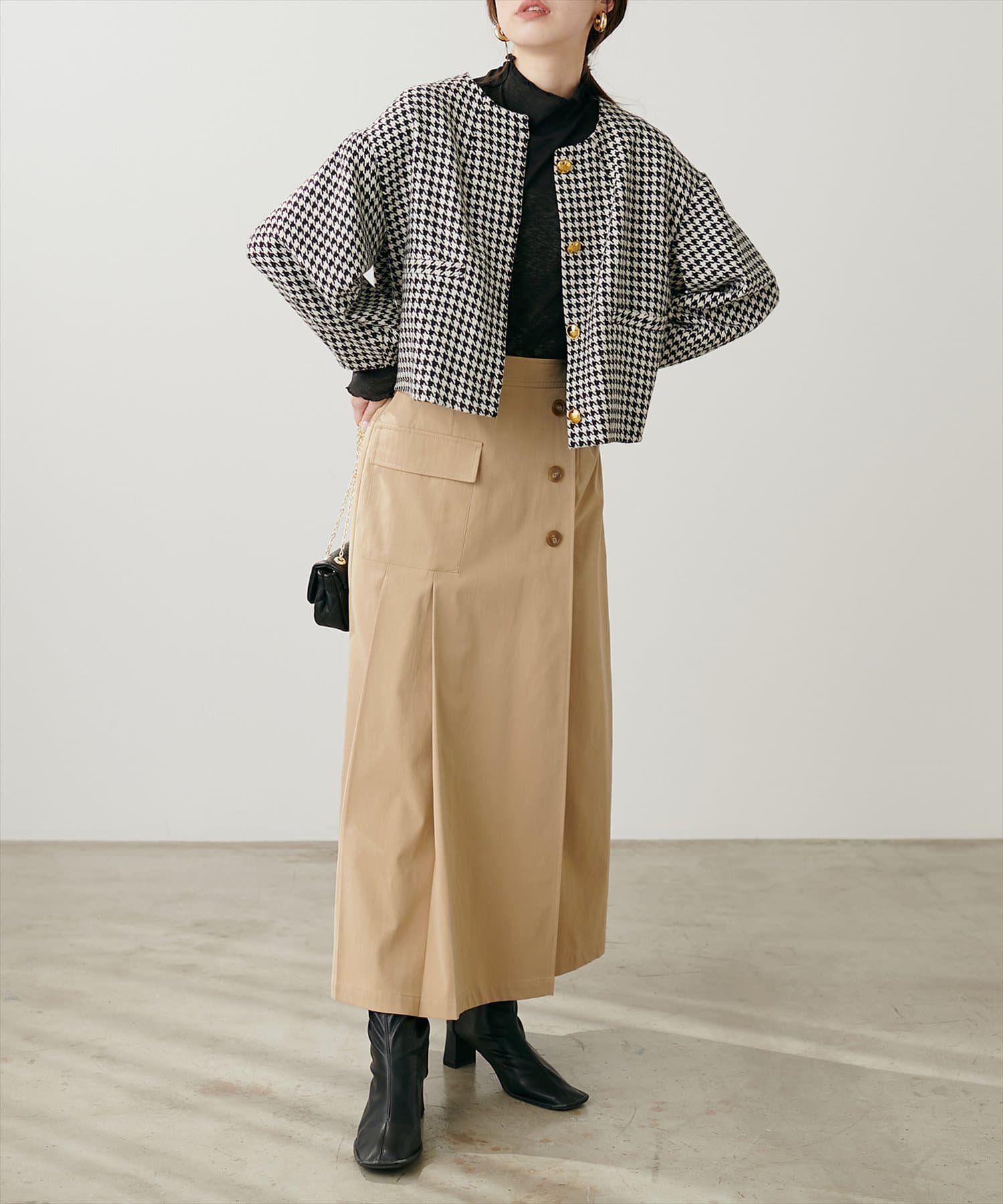 大胆な2本のタックとフェイク釦が印象的なミリタリースカート。