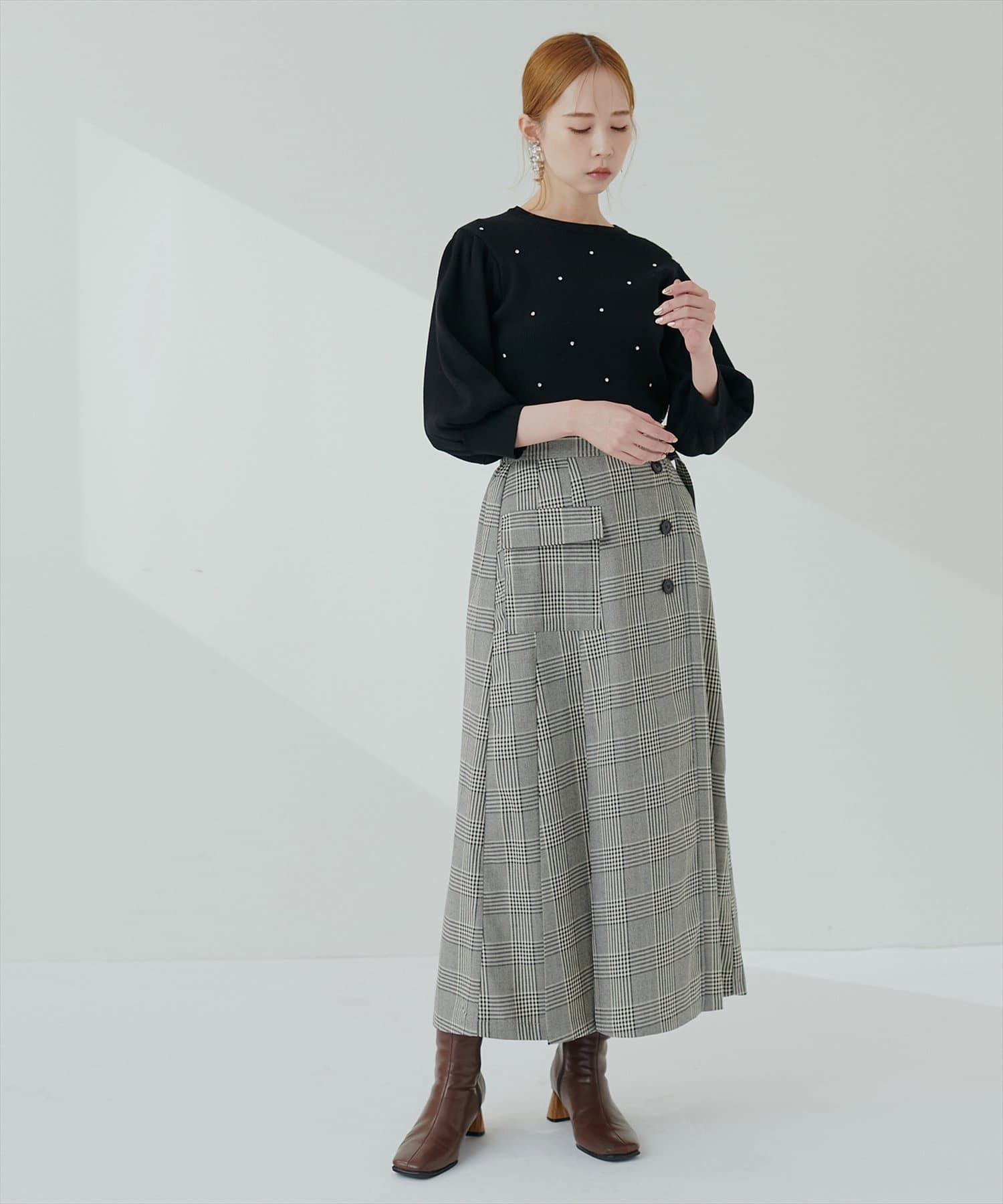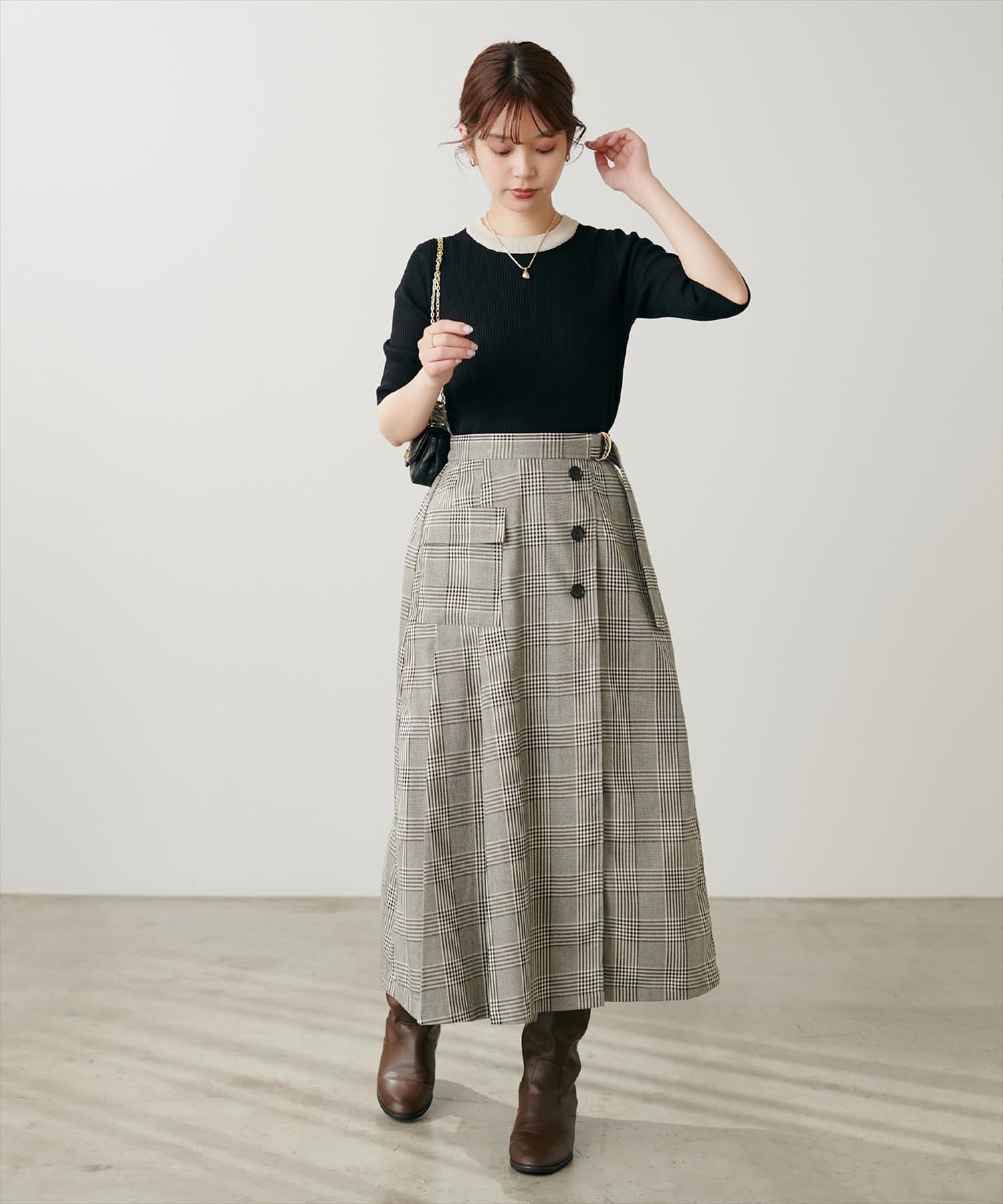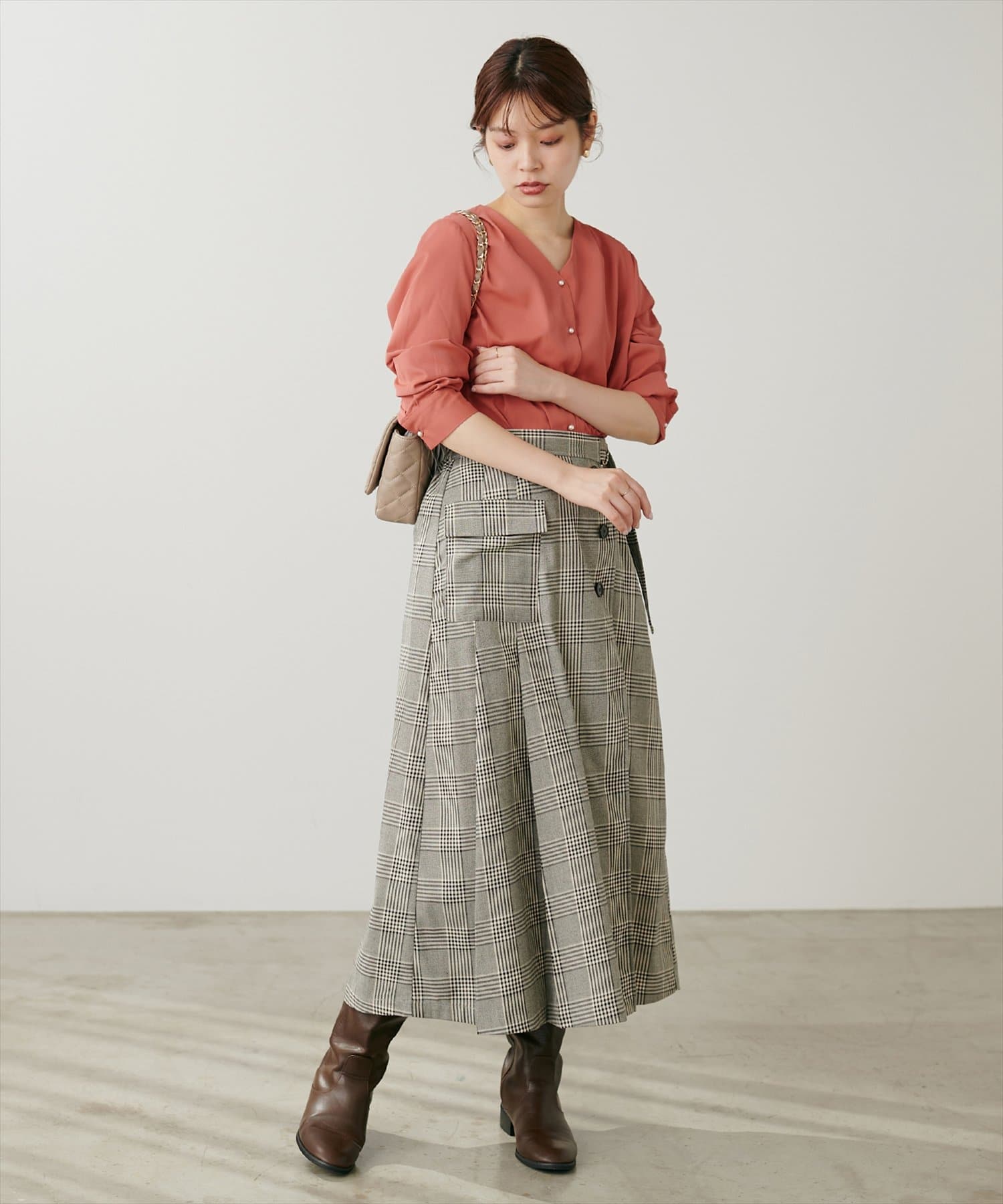 シンプルにTシャツやトレーナーを合わせたカジュアルスタイルから、ブラウスやシャツ、甘めなニットを合わせたフェミニンコーデまで幅広く活躍する1枚。