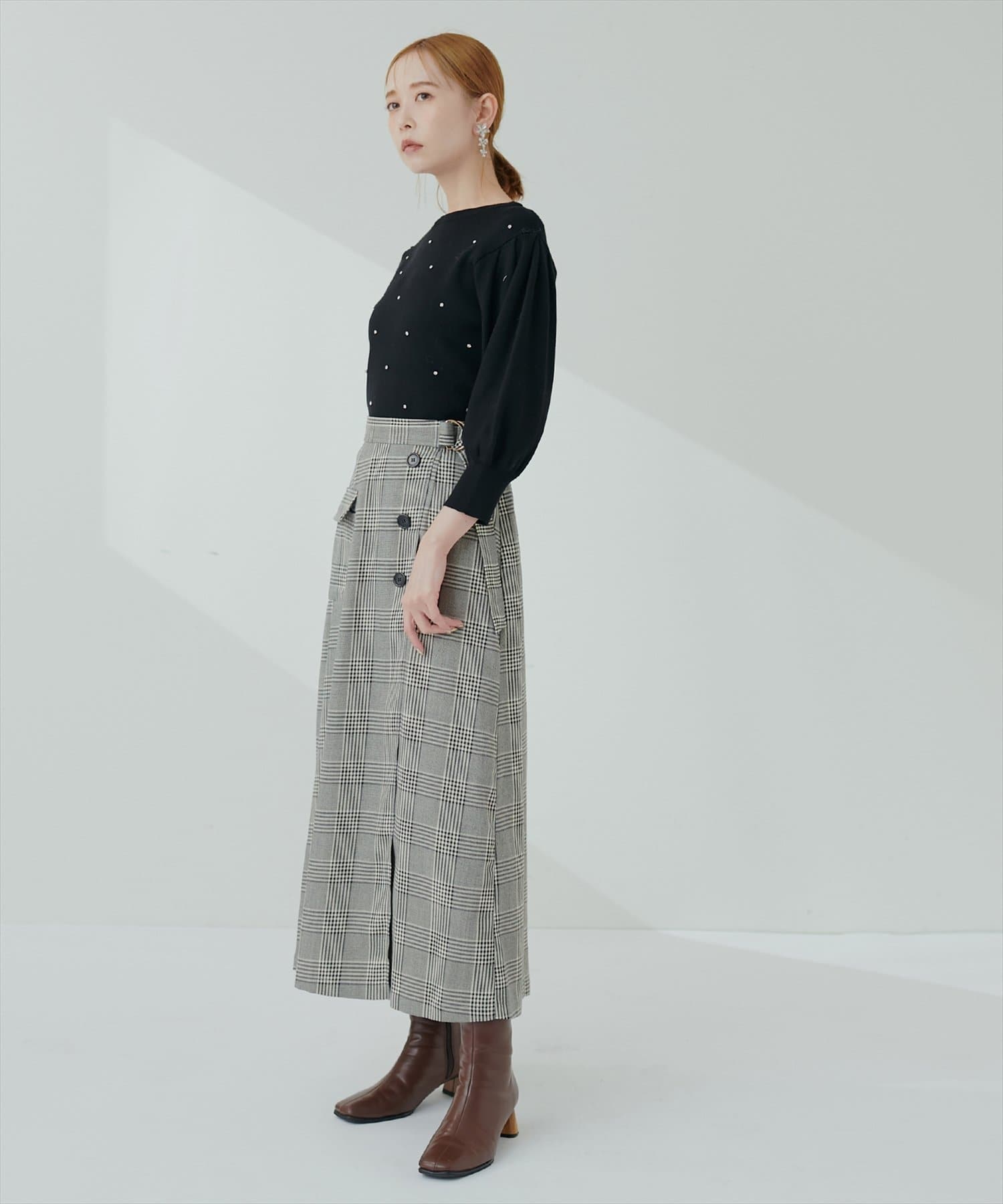 ウエストの左サイドにはDかんベルトが付いており、細部まで抜かりなくデザイン性の高い1着です。