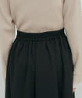 ウエストにはギャザーが施されており、トップスインのスタイリングが映える仕上がりに。