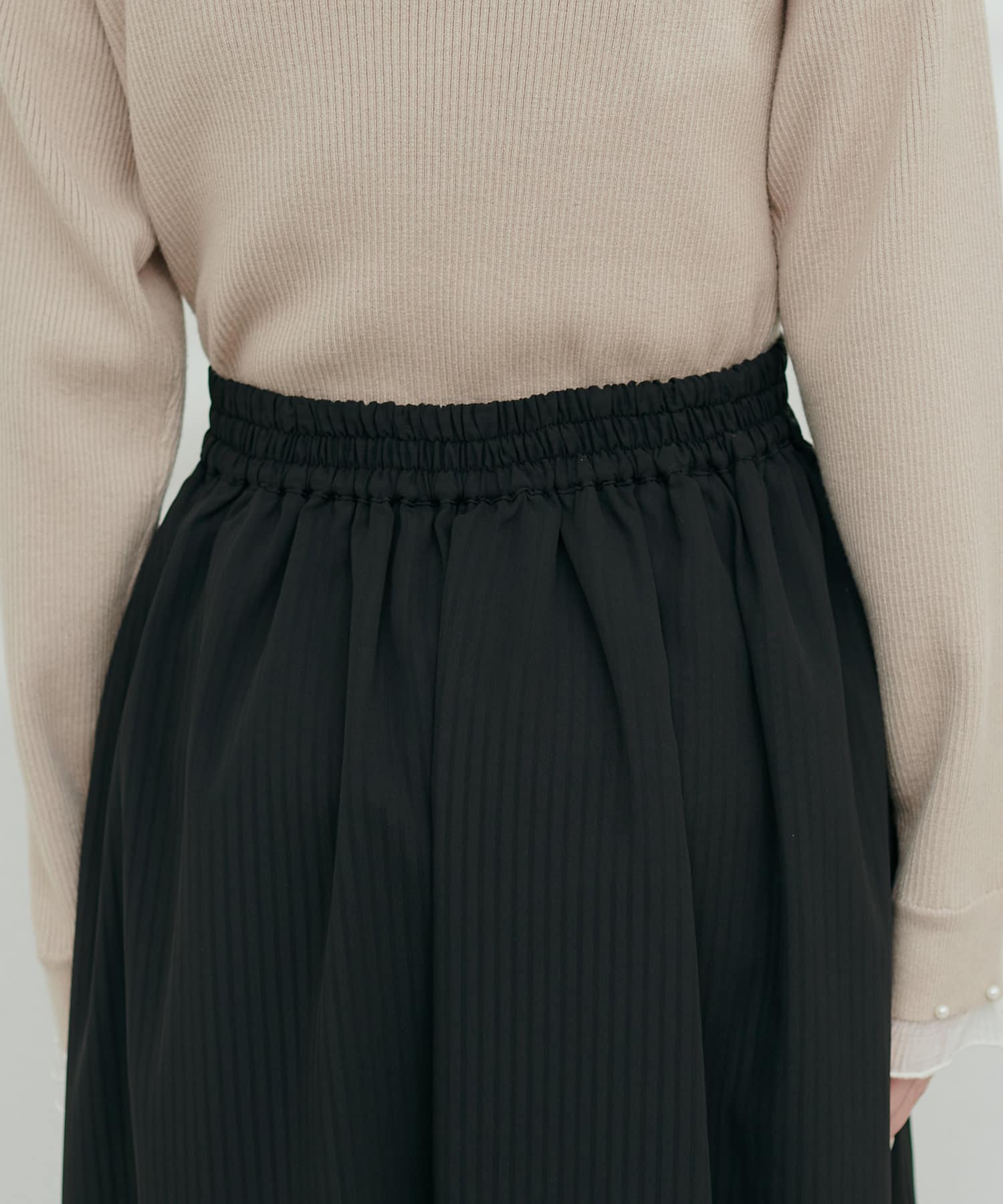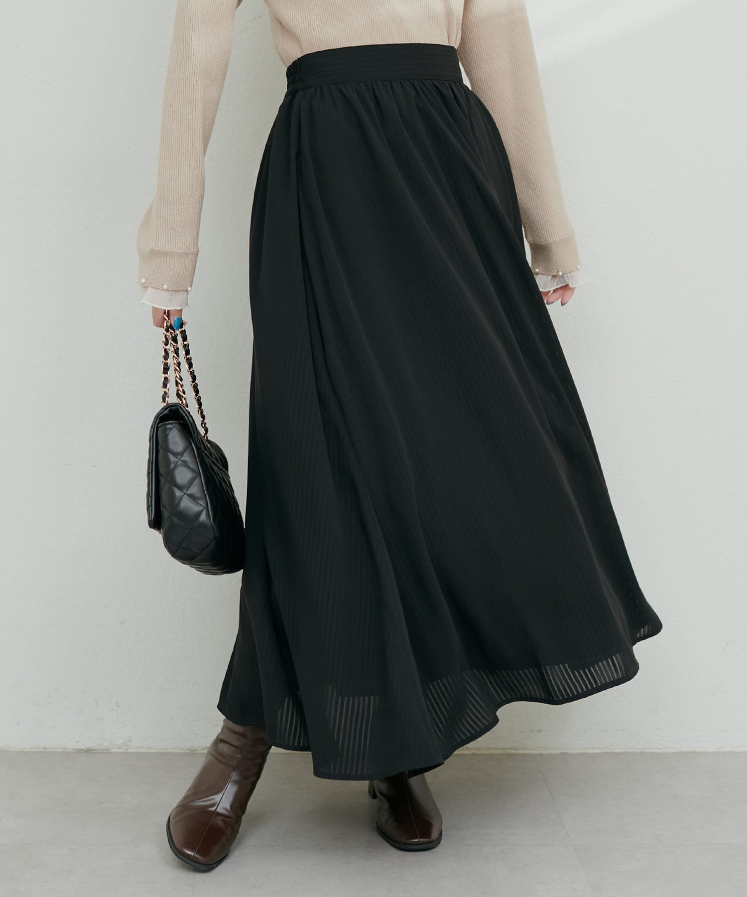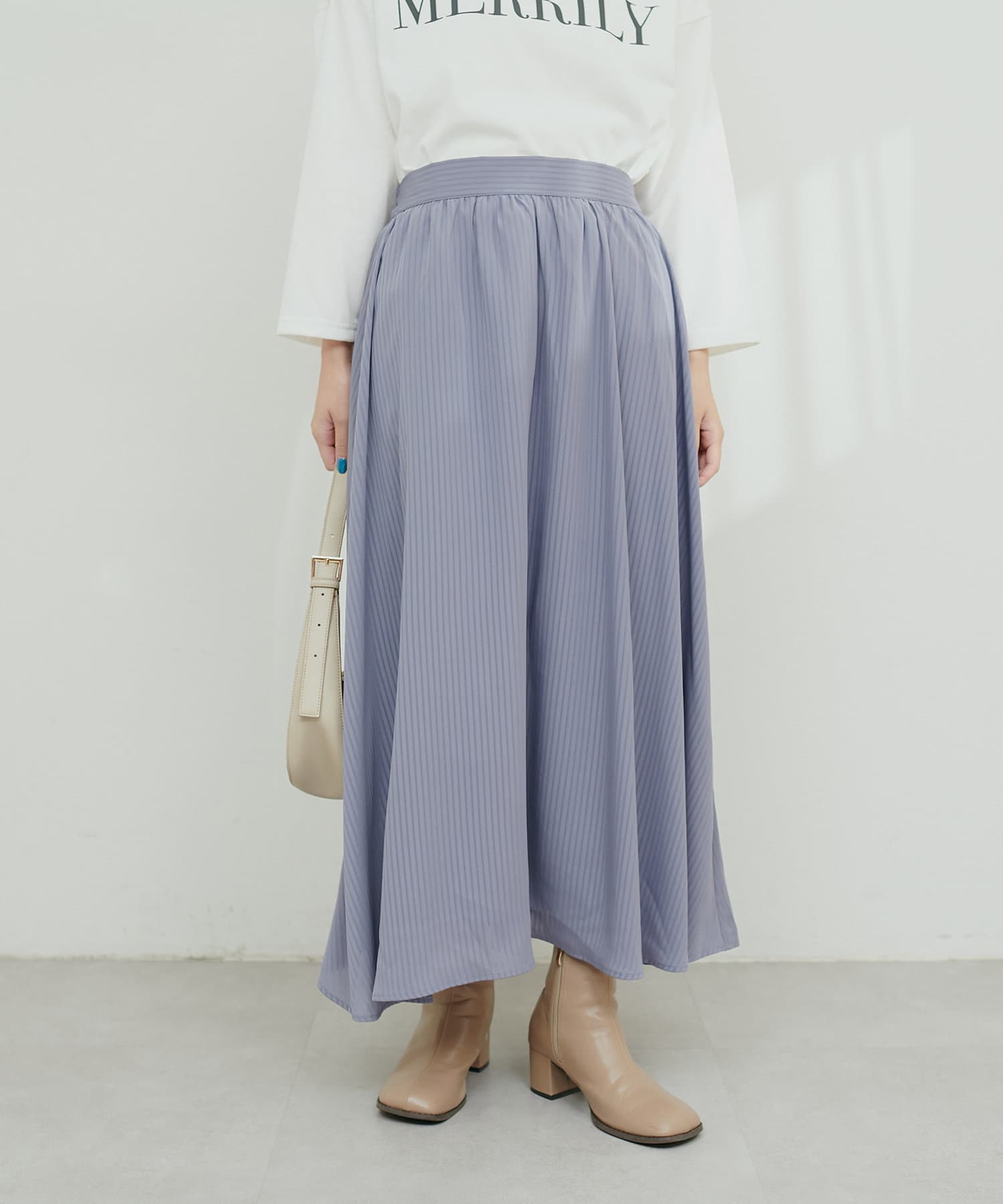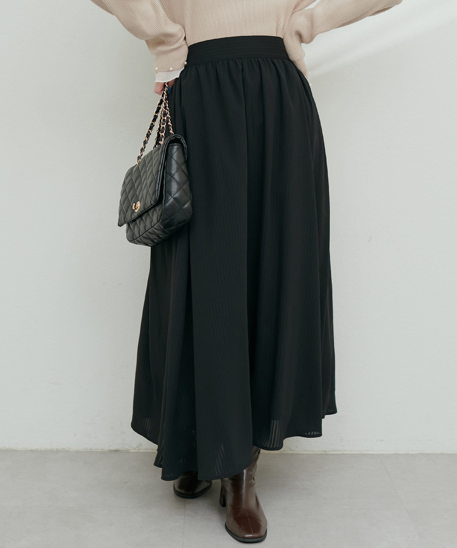 細かなストライプ柄がシンプルなスカートにニュアンスを与えてくれます。