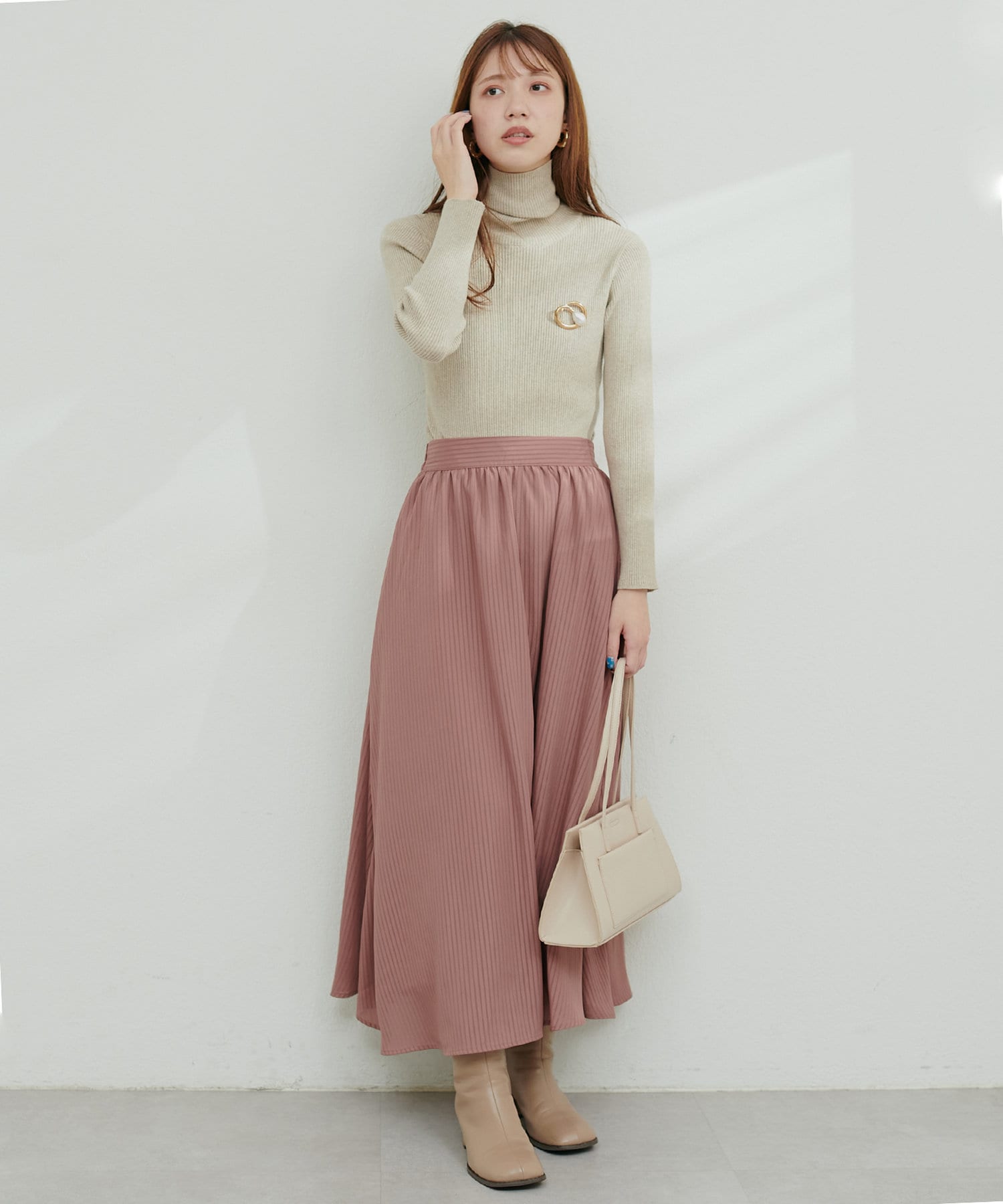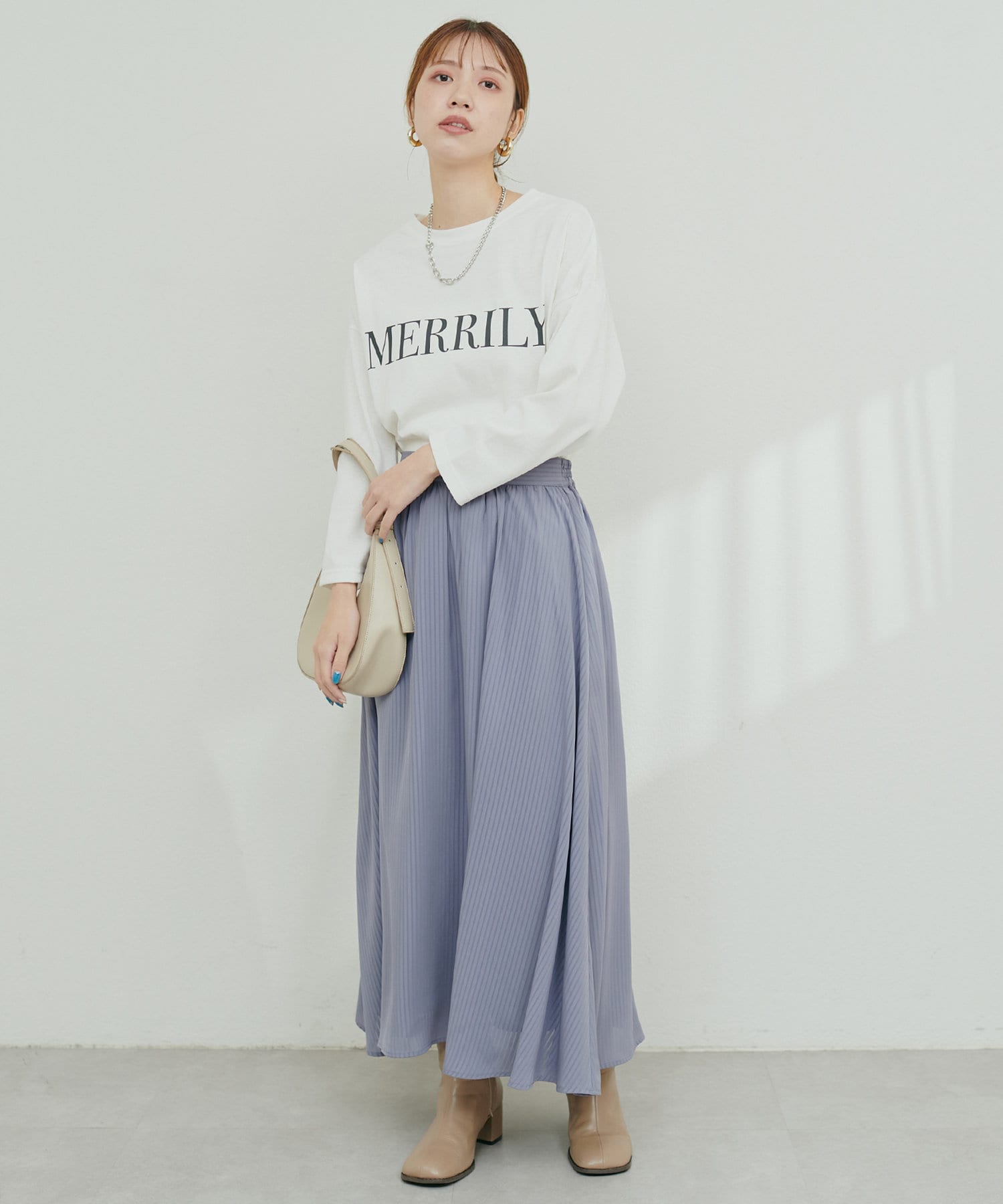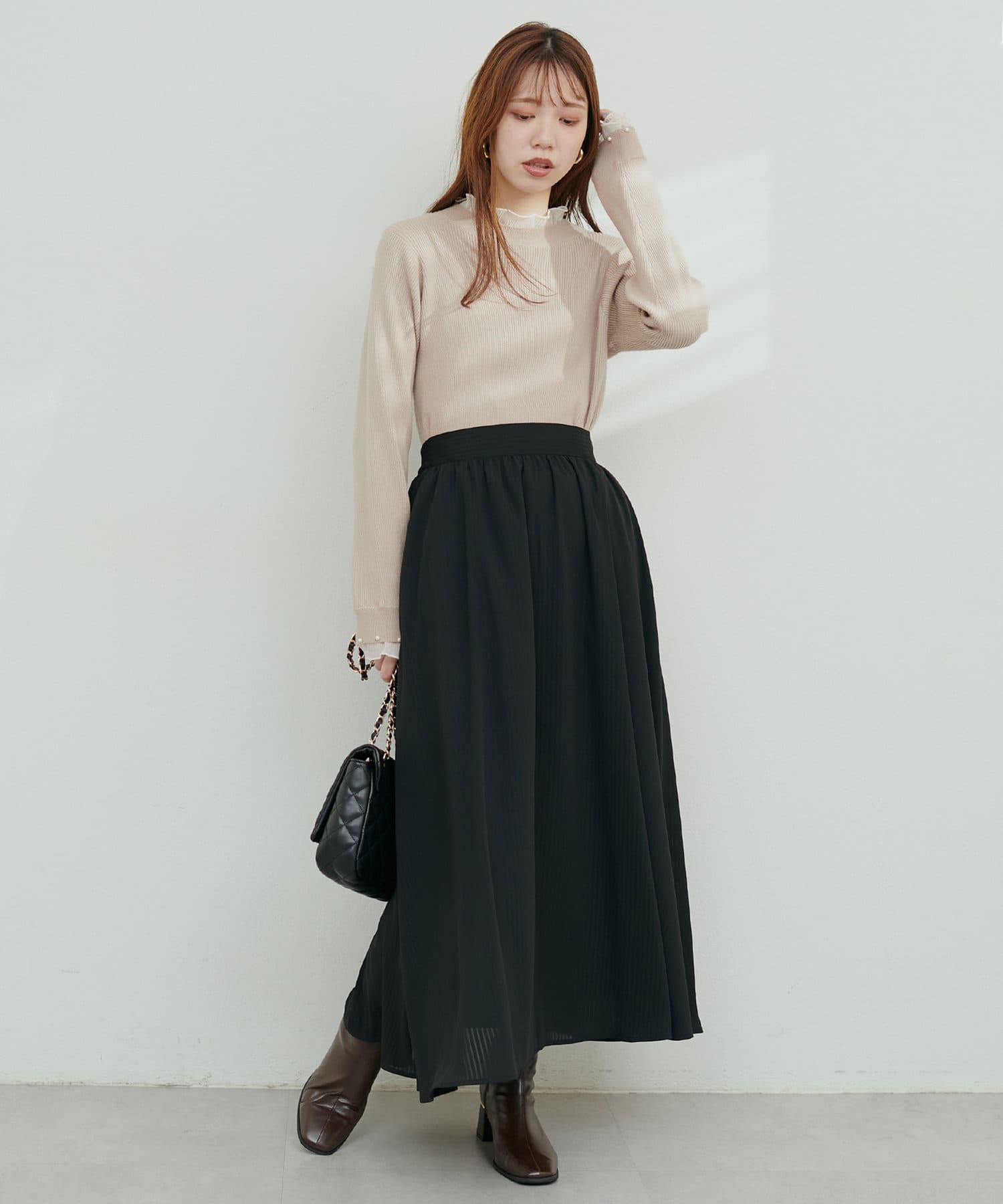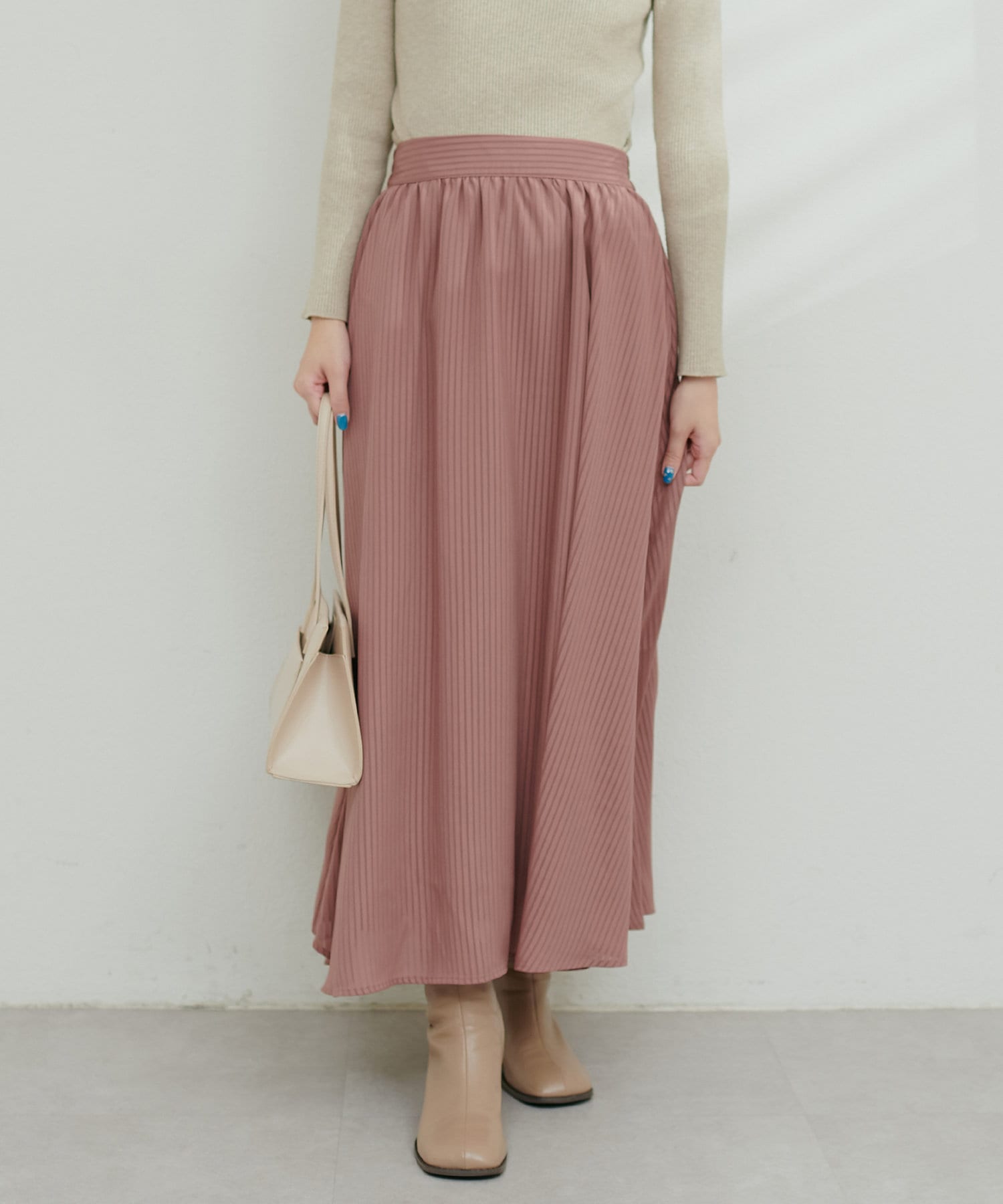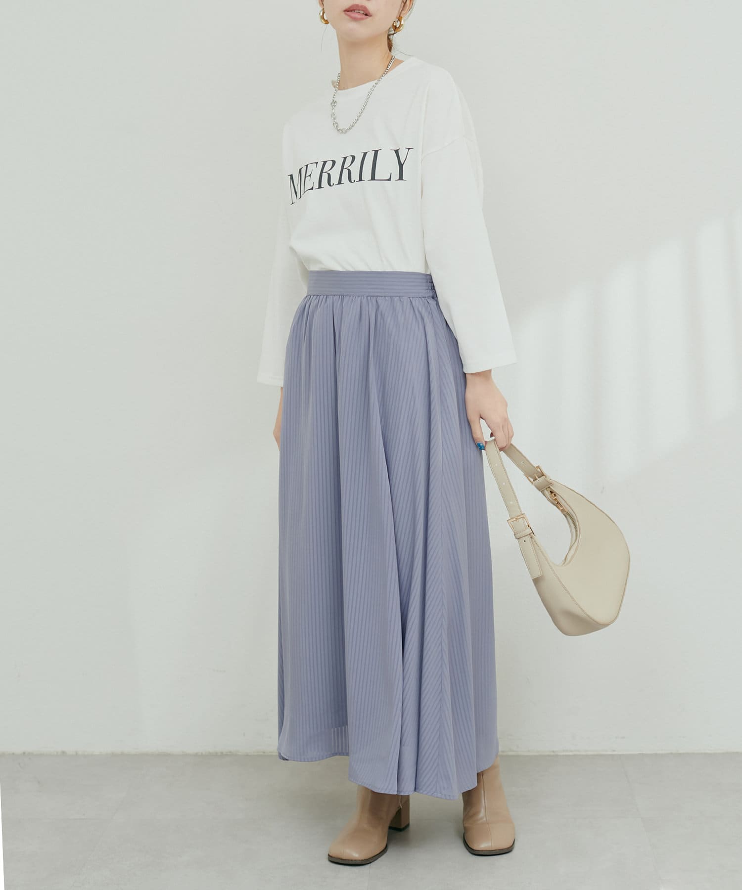 細かなストライプ柄がシンプルなスカートにニュアンスを与えてくれます。
