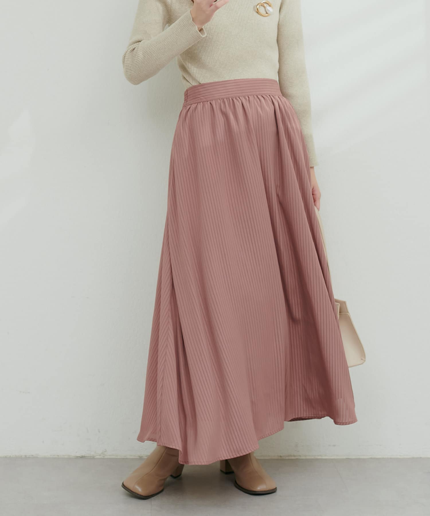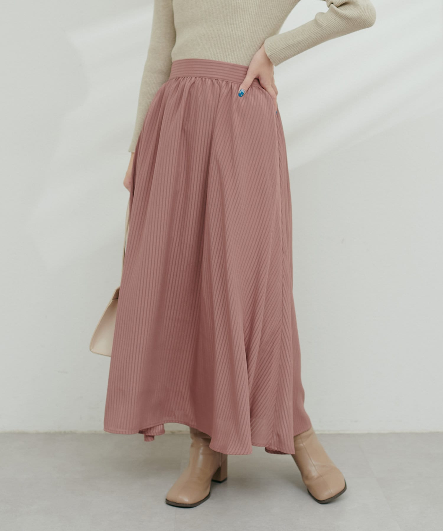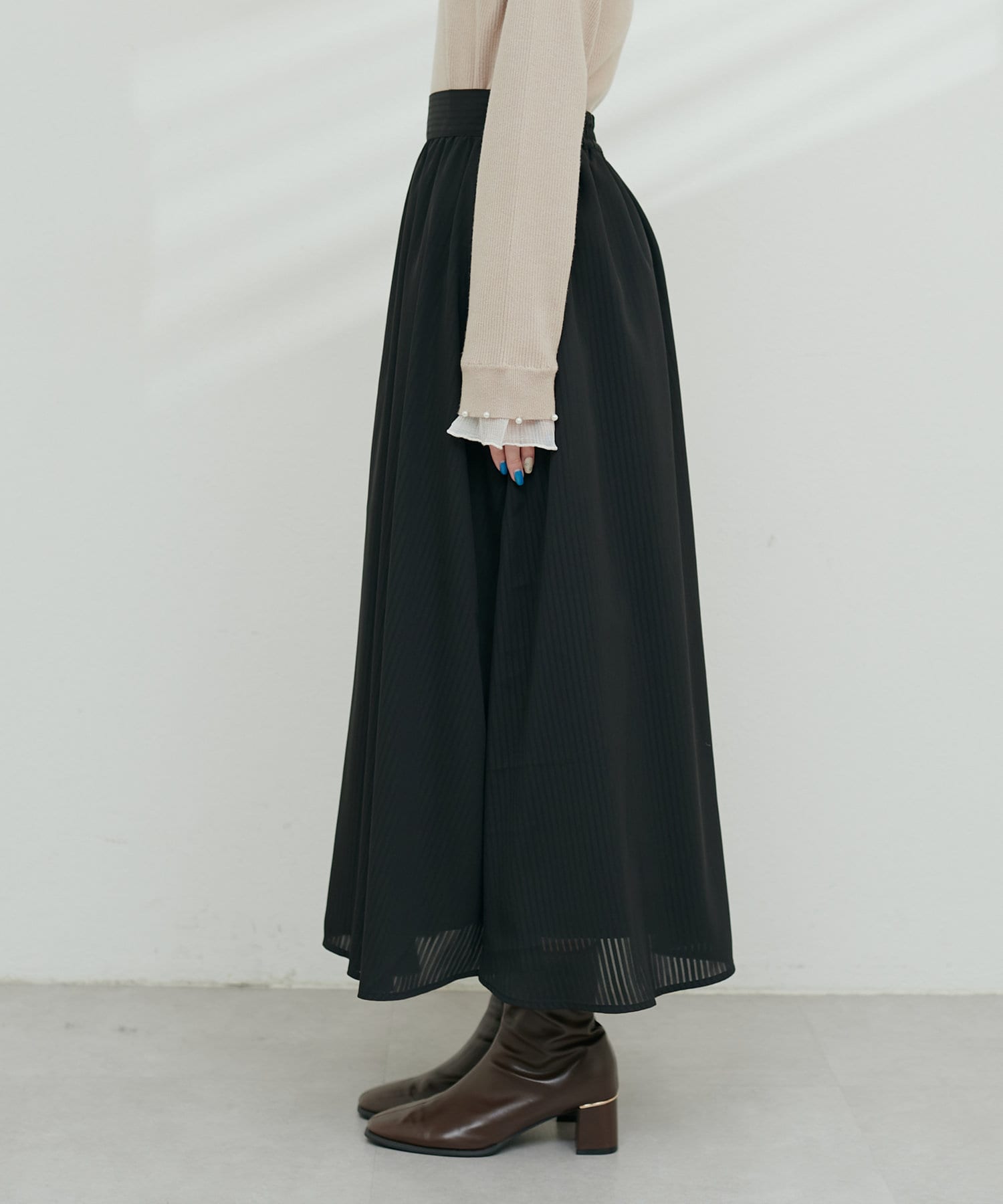 • natural couture(ナチュラルクチュール) シアーストライプギャザースカート