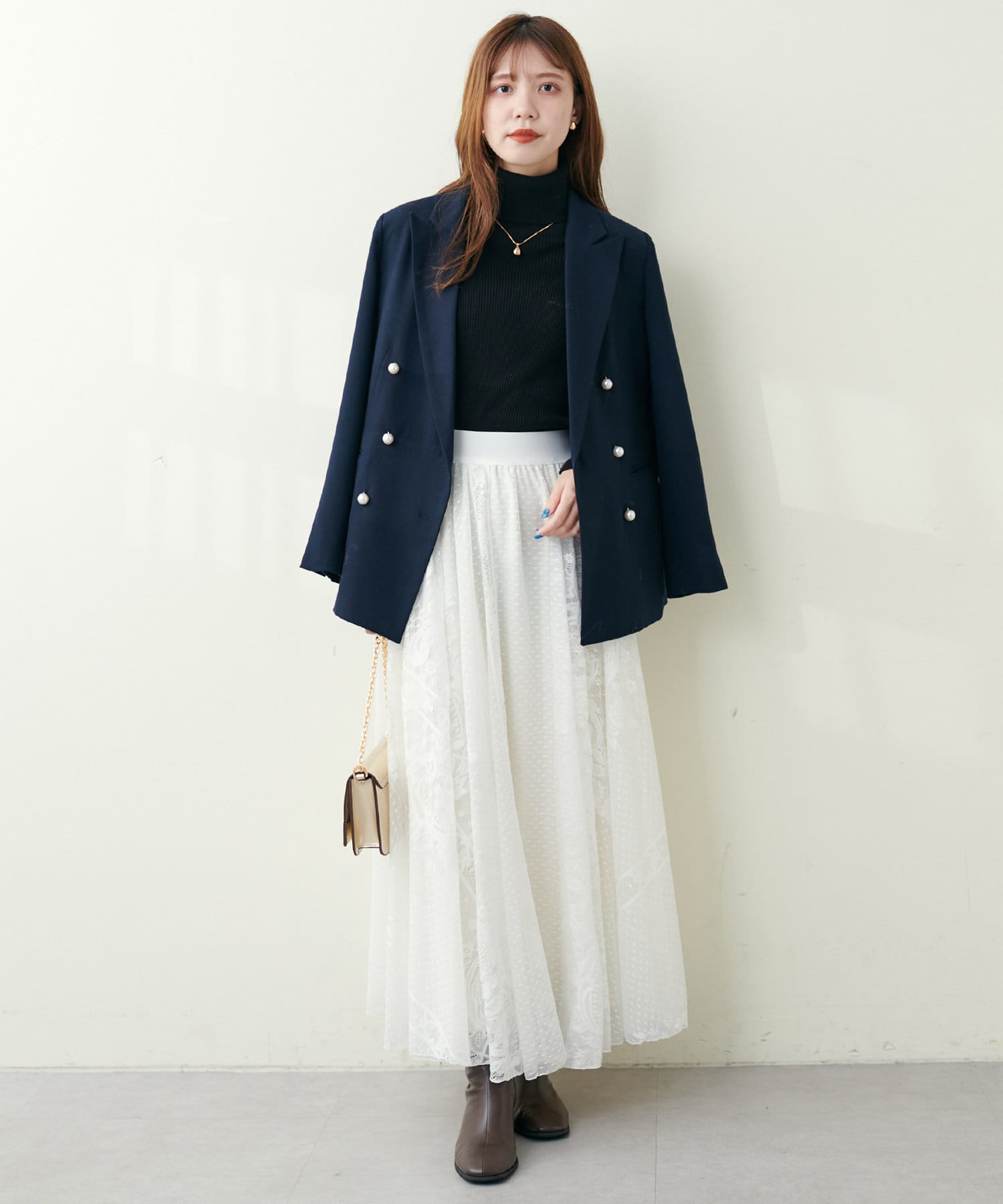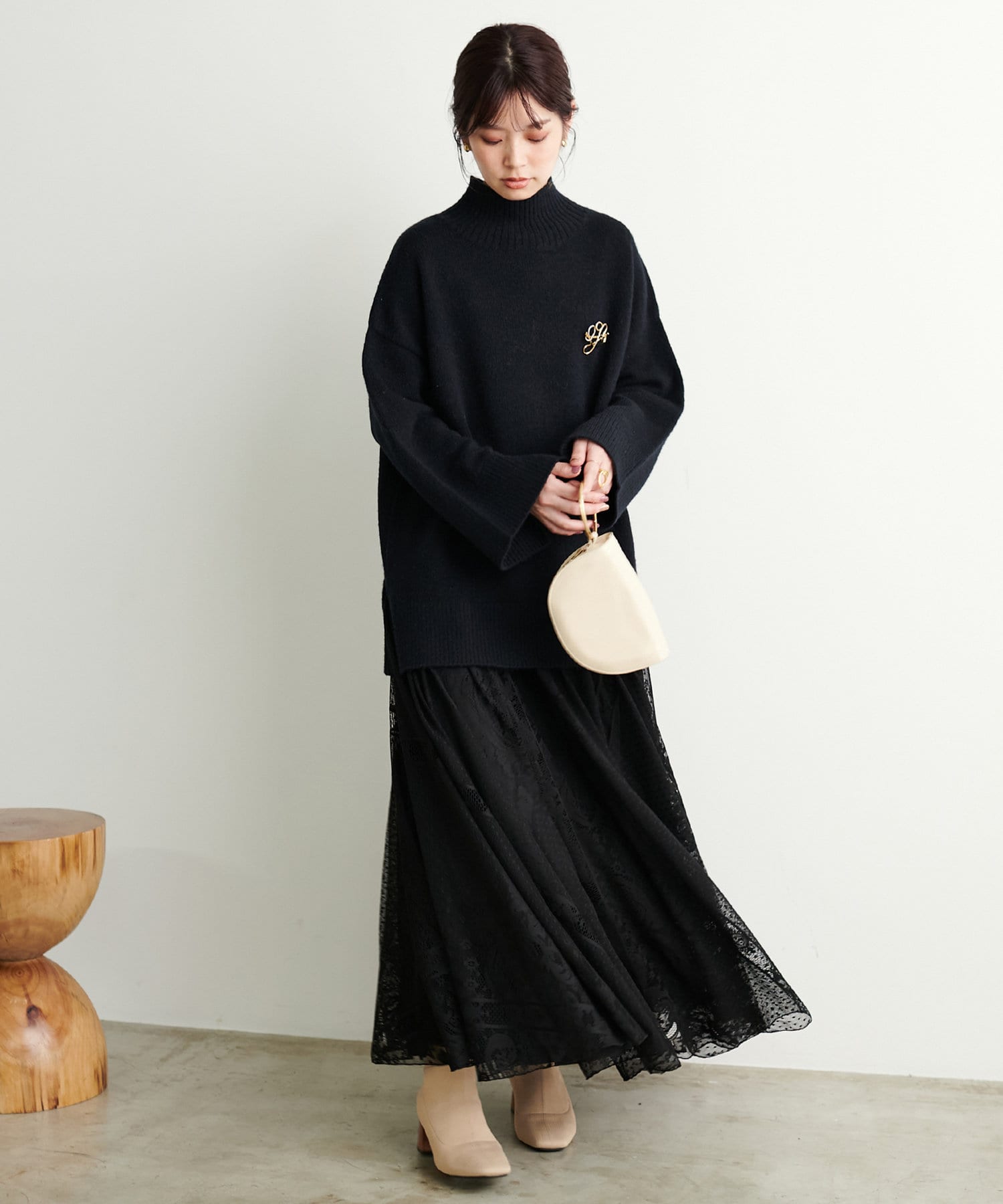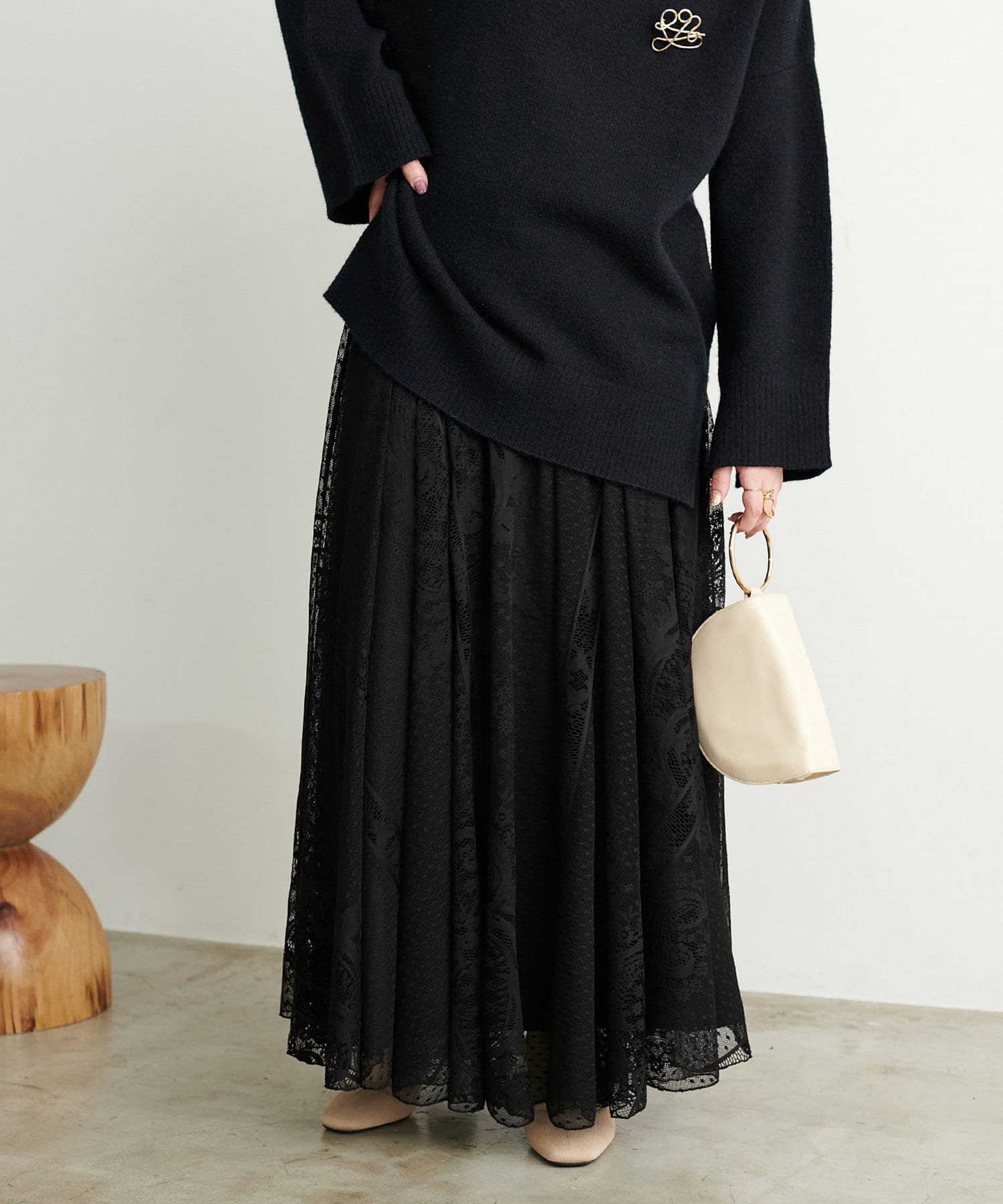 重厚感のある見た目に反しレース生地の軽やかな着用感も魅力◎