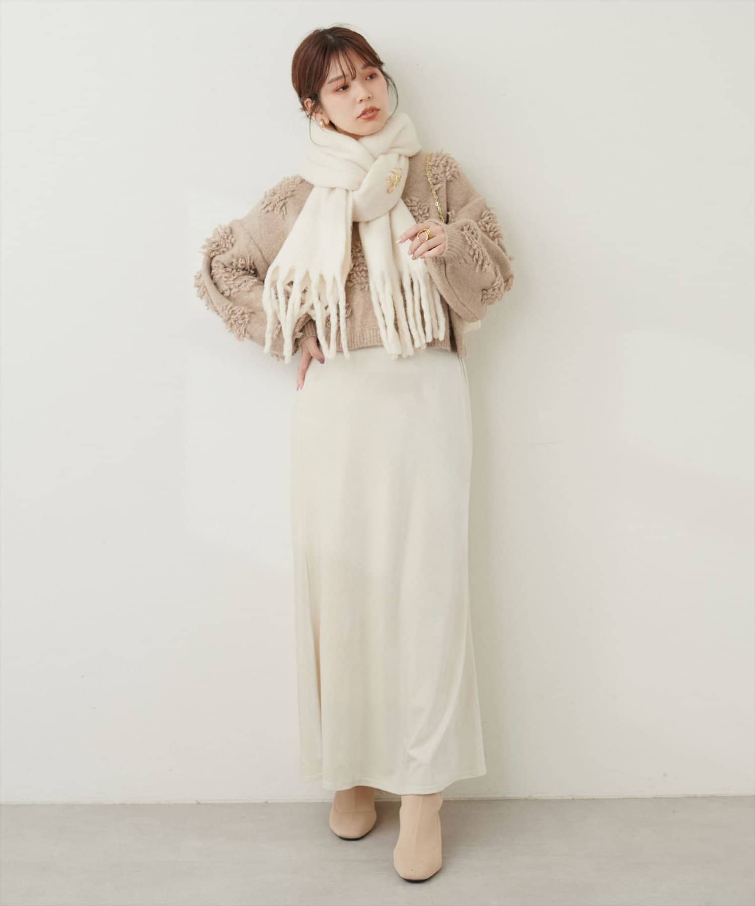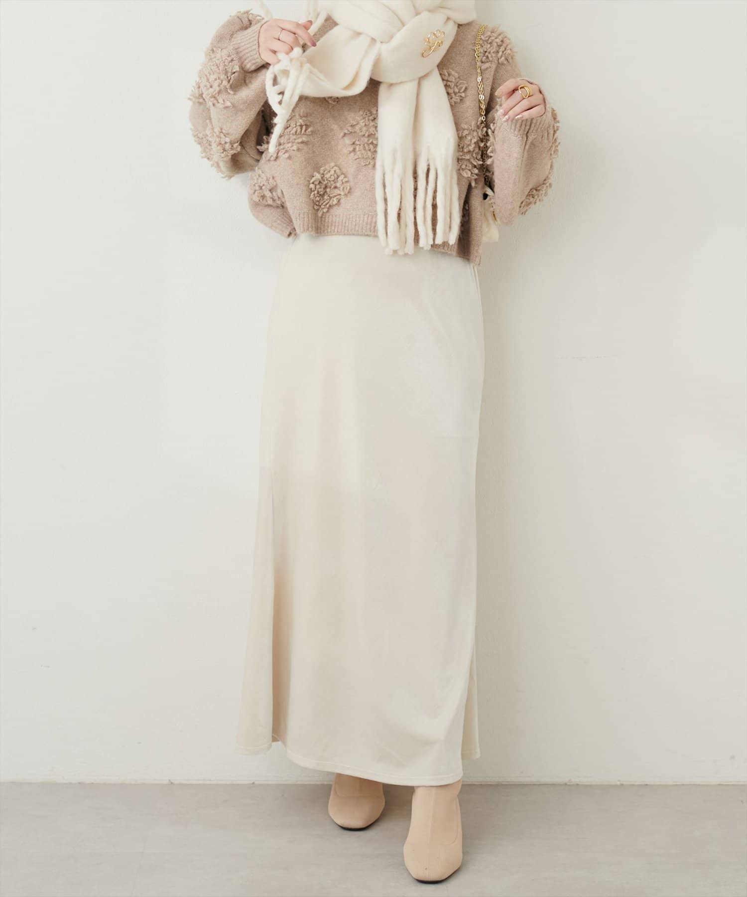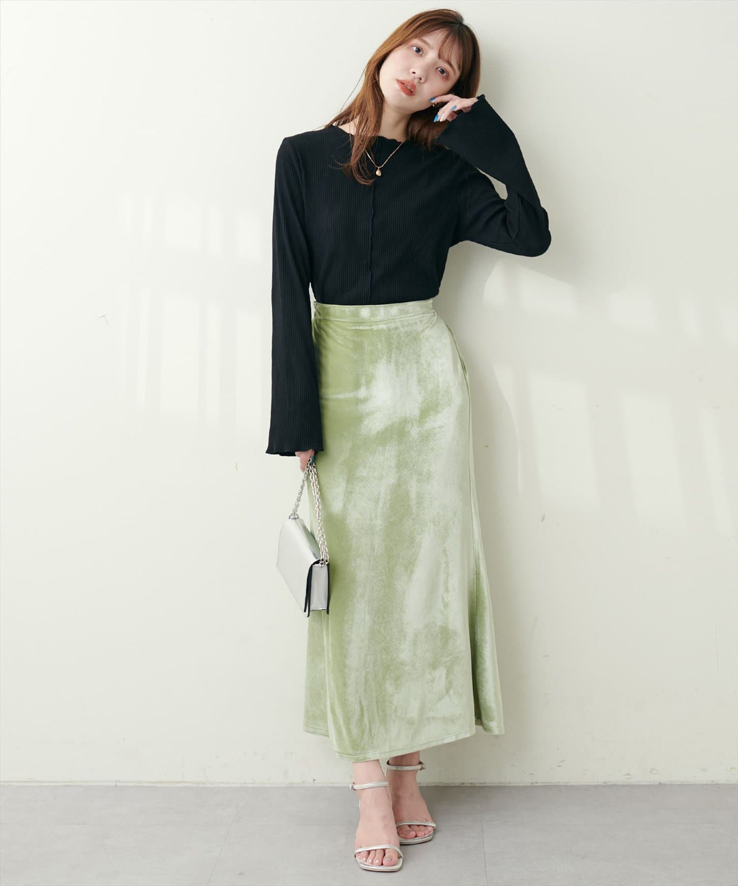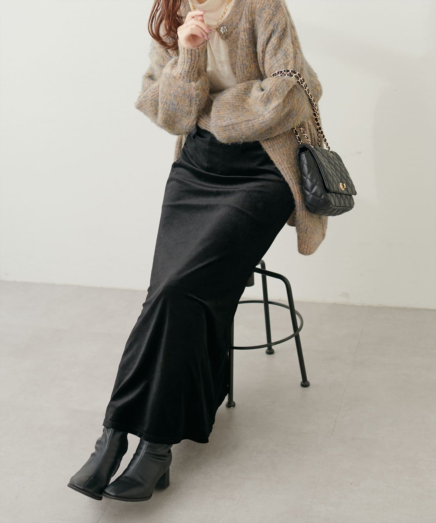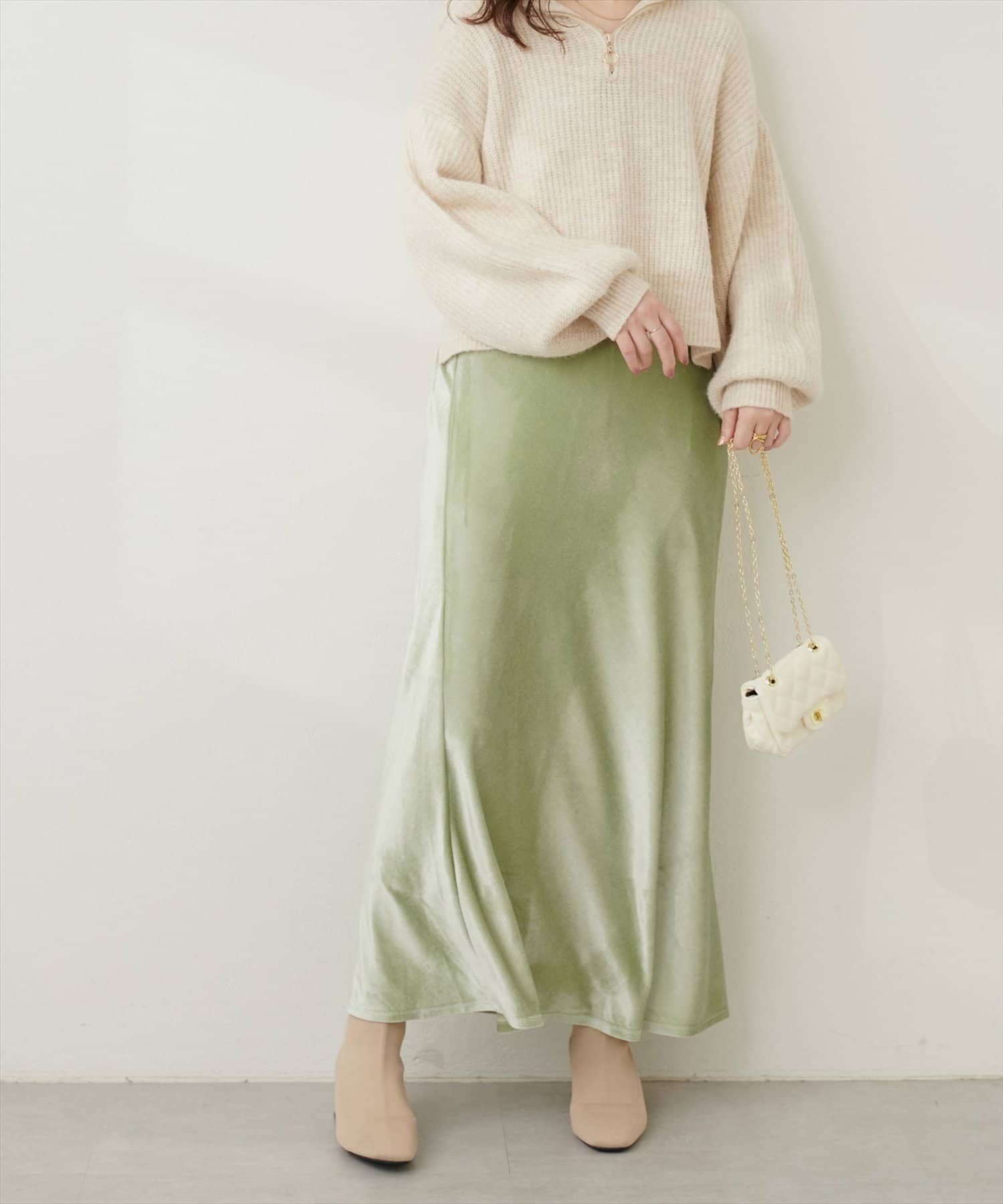 今季のトレンドのなかでも外せないベロア生地のスカート