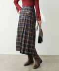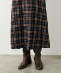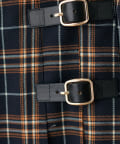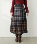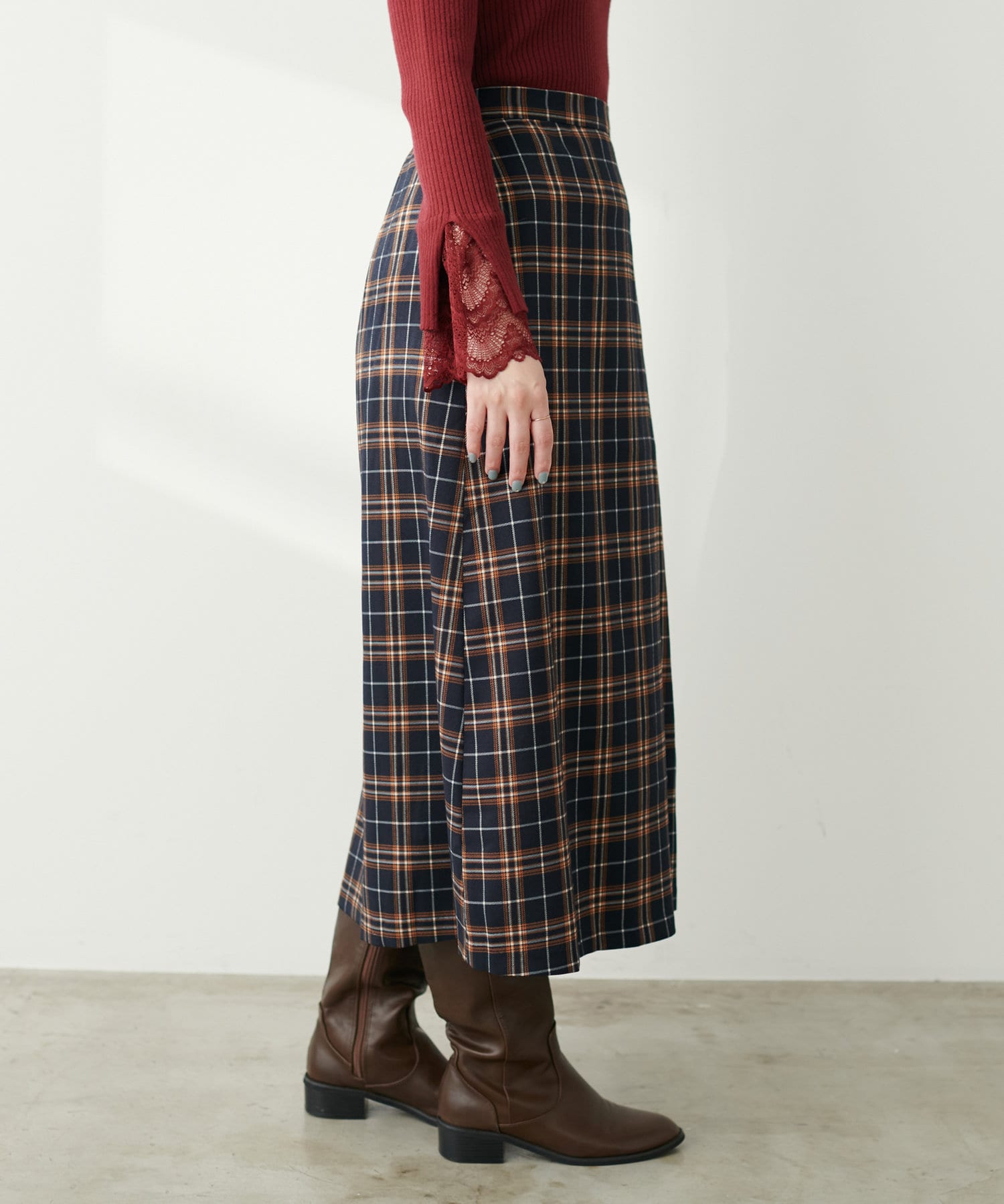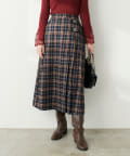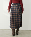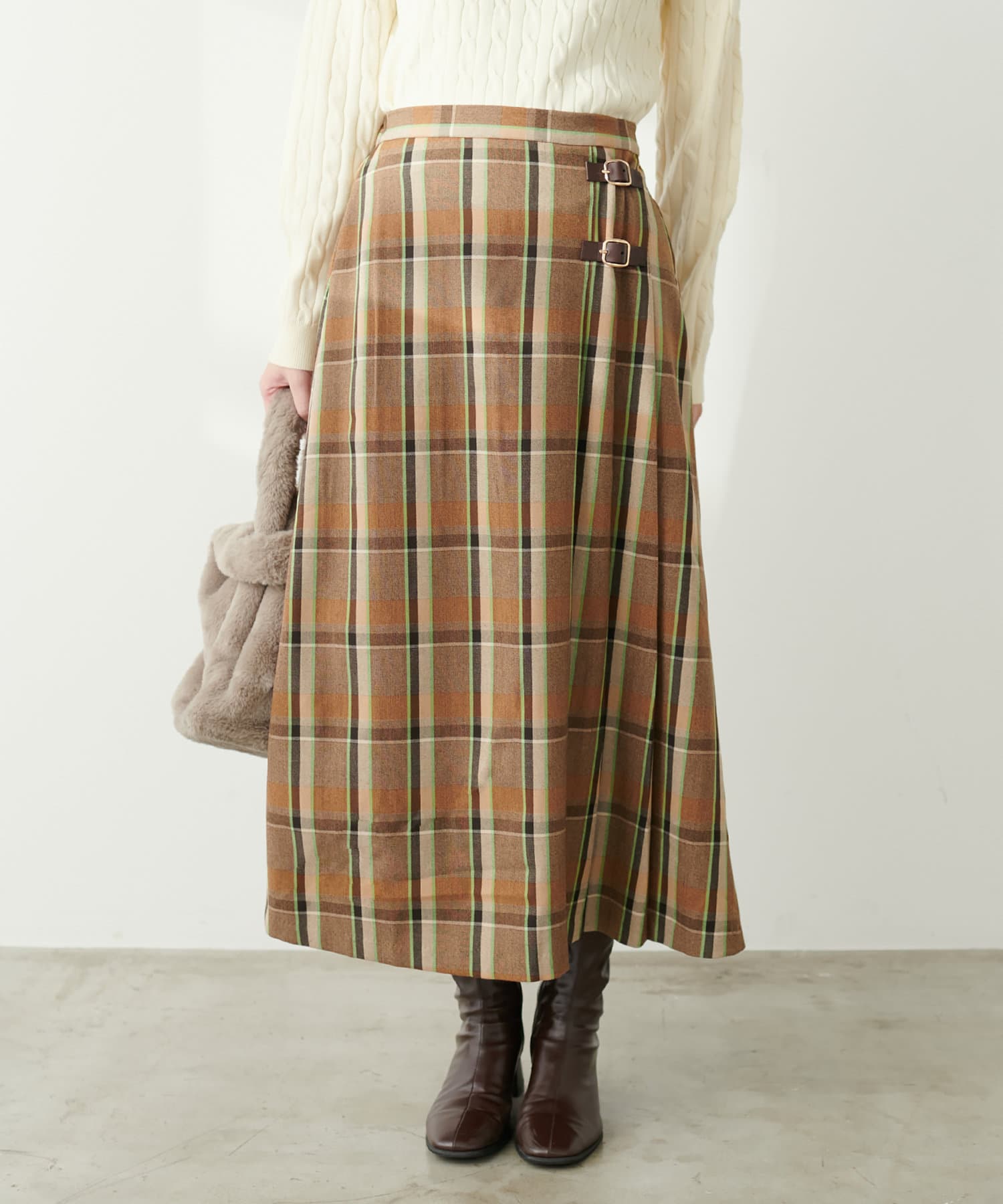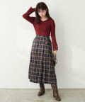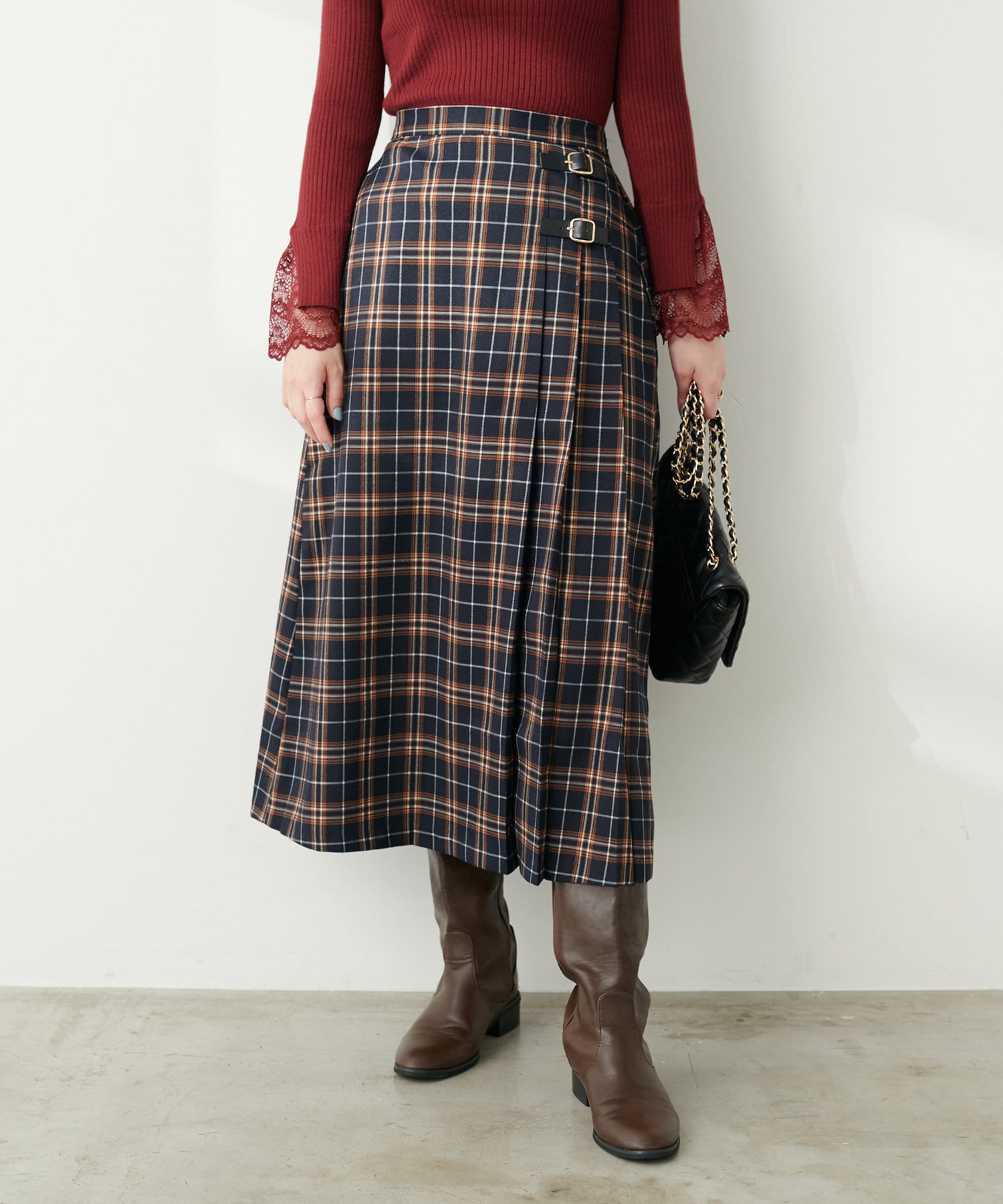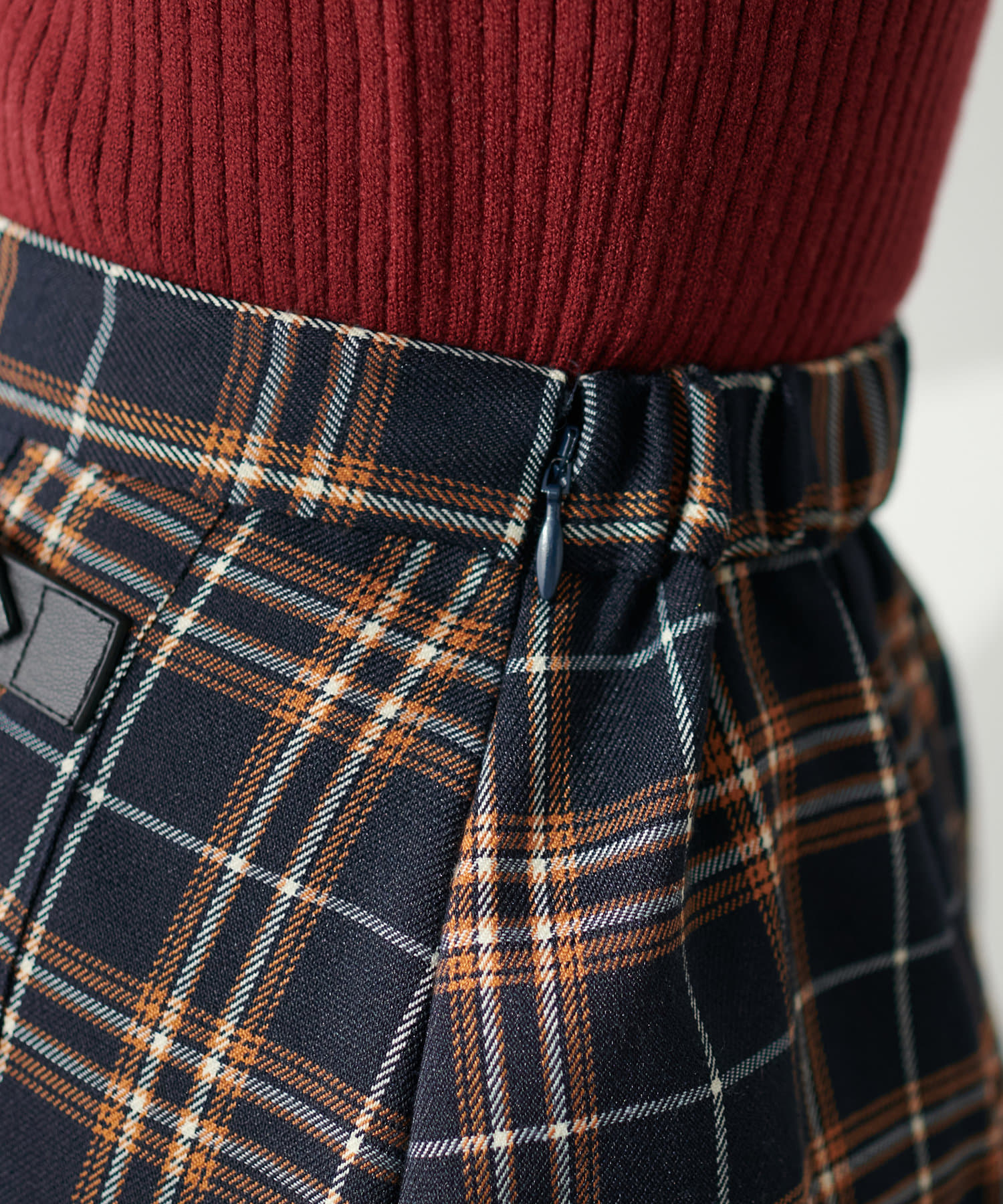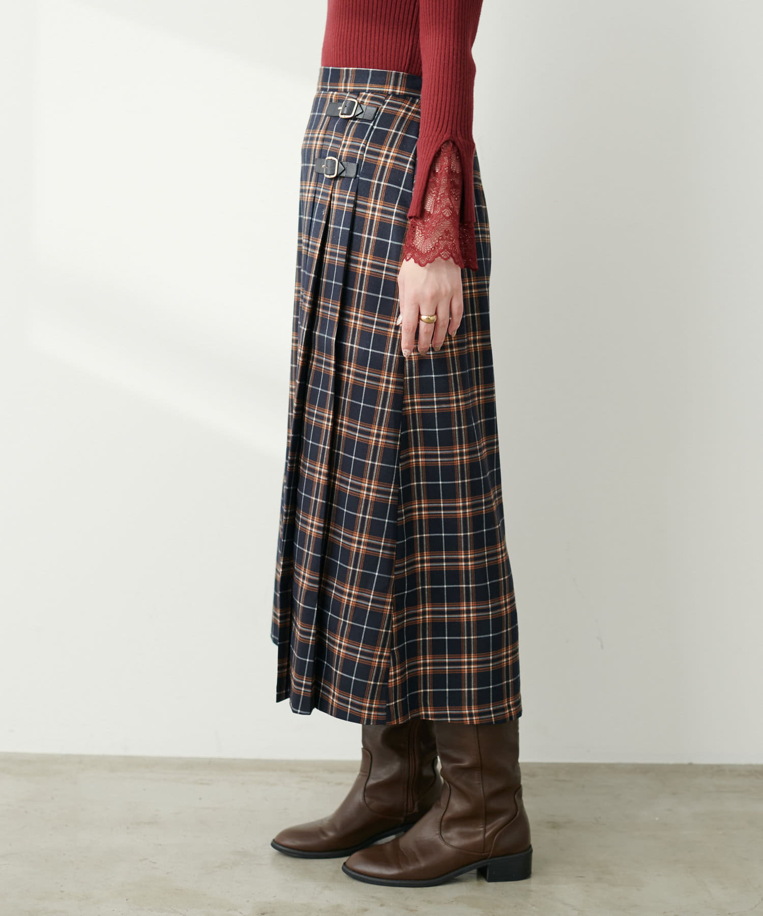 フロントの2本の合皮ベルトが大人レディな印象のAラインスカート。