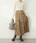 柔らかな動きのあるシルエットが女性らしいので、リブニットなど身体にフィットするトップスを合わせたコントラストのあるコーディネートがおすすめです。