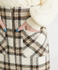 秋冬を先取りできる大き目のチェック柄と、センターに入ったZIPデザインが目を惹くタイトスカート。