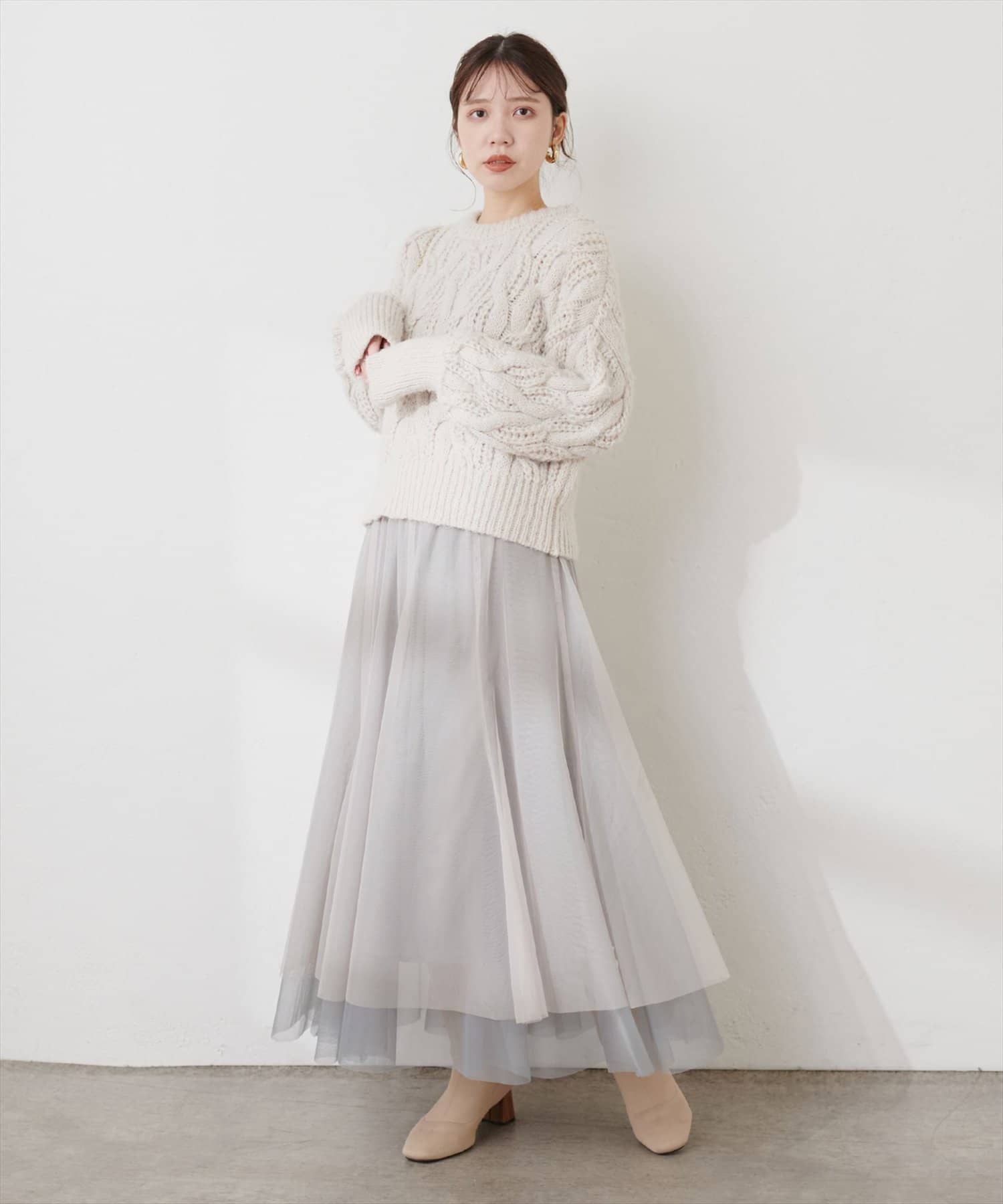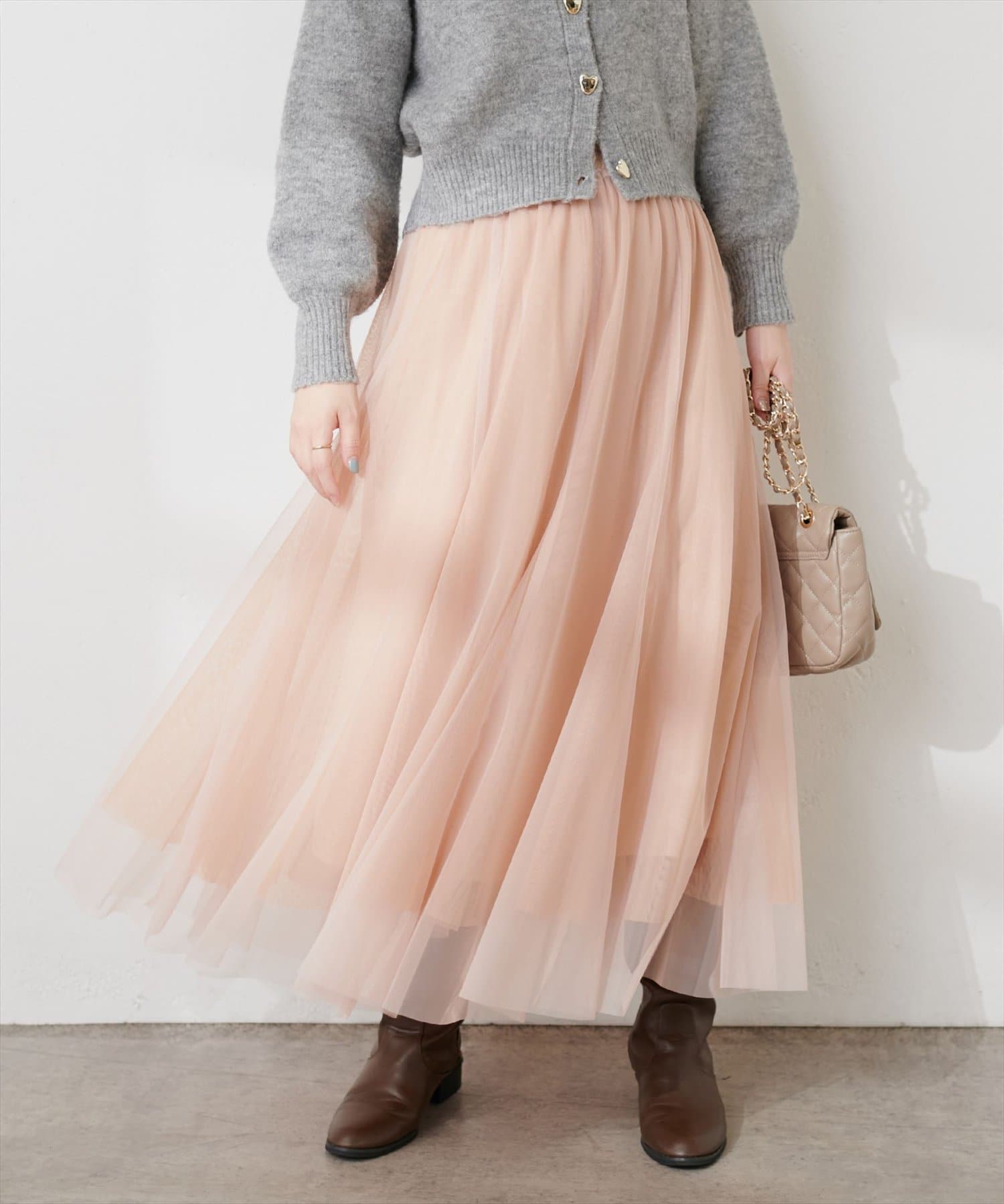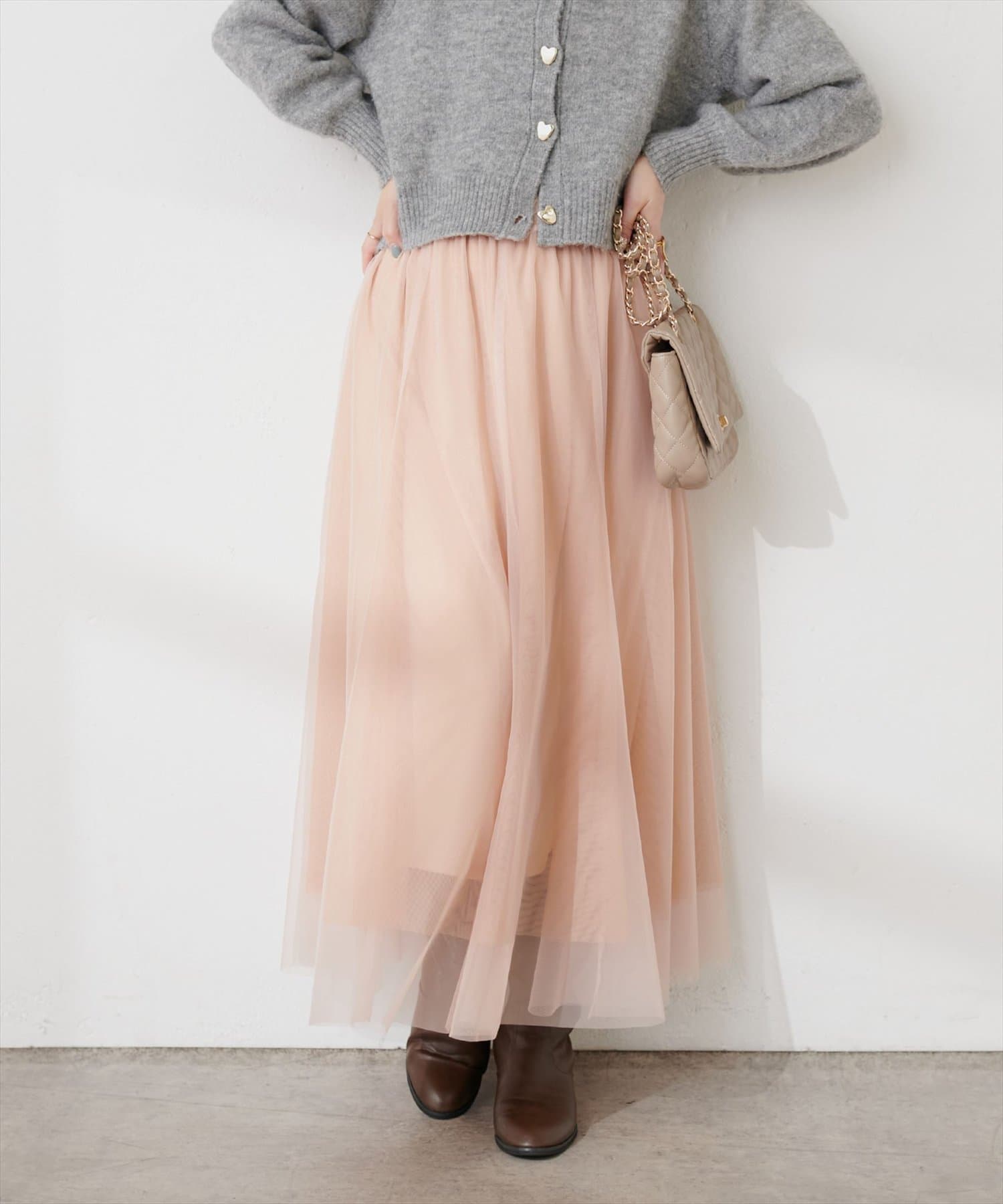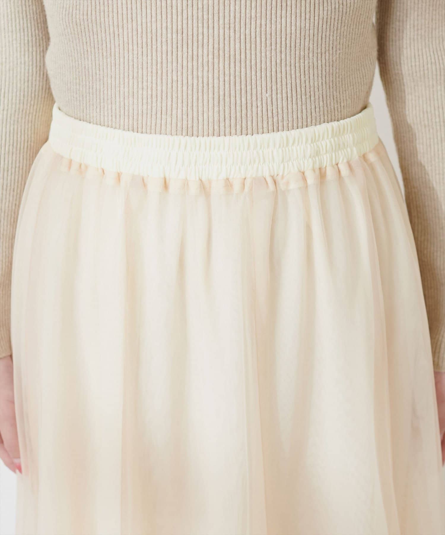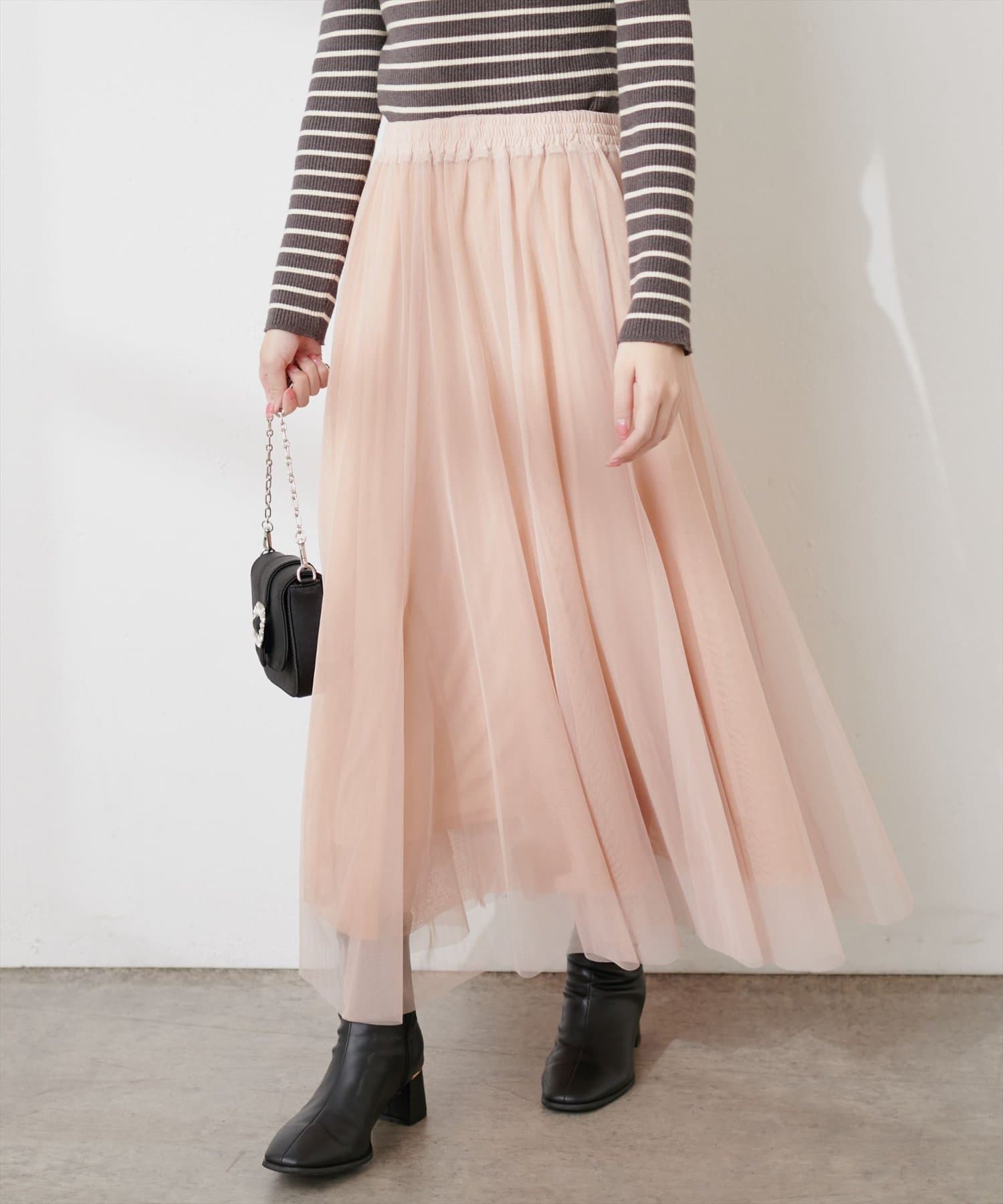二枚重ねのチュールが軽やかに広がるチュールスカート。