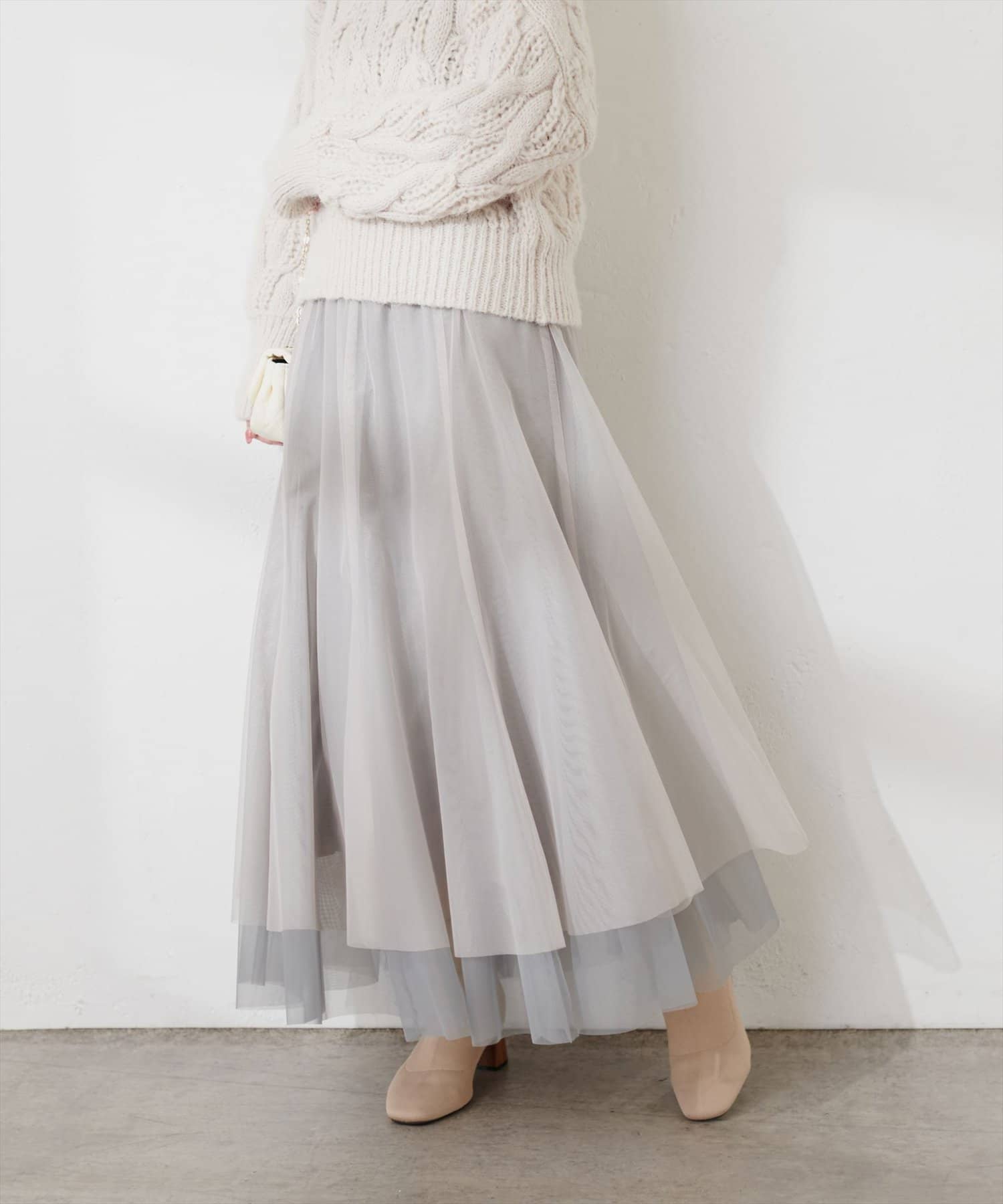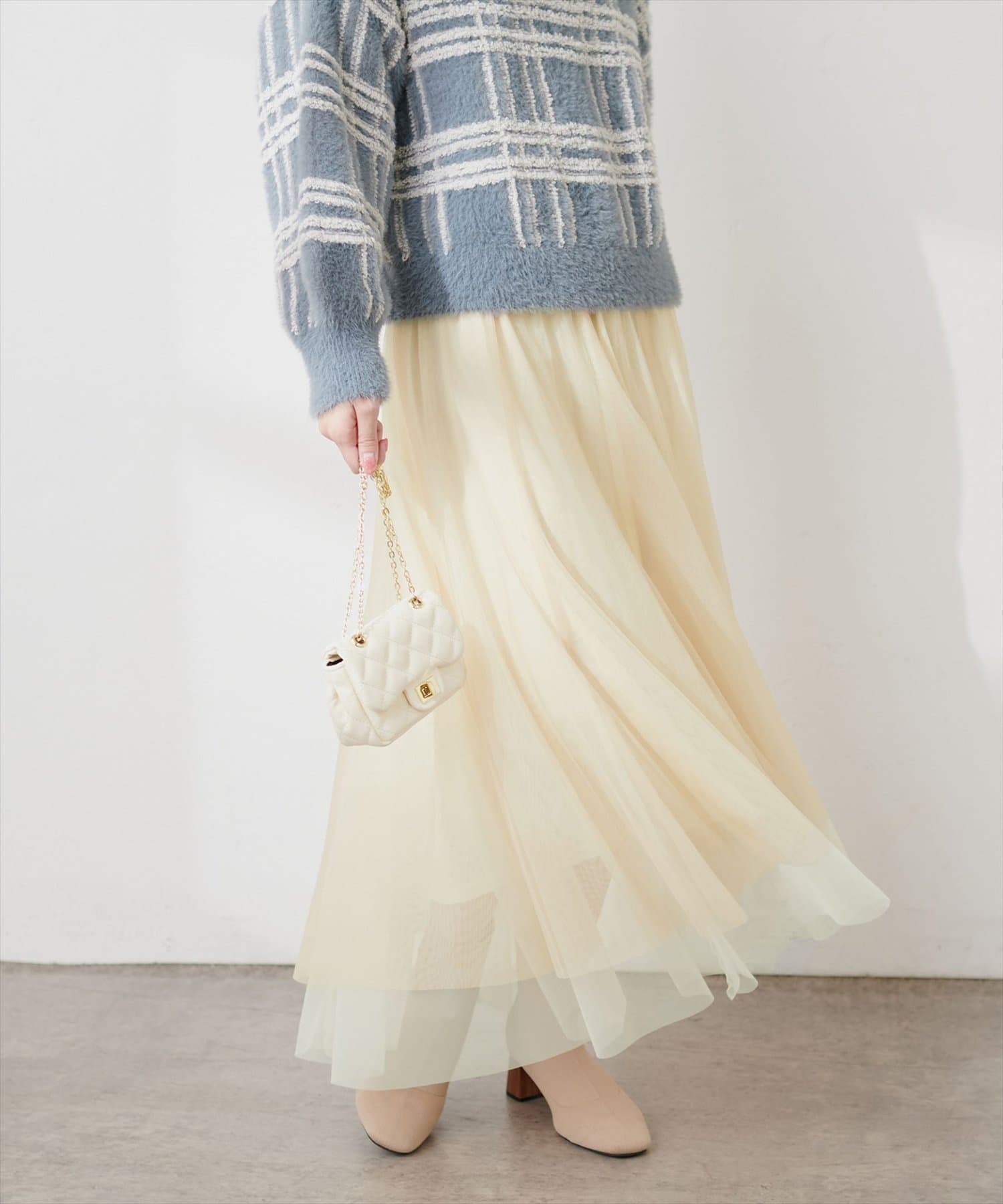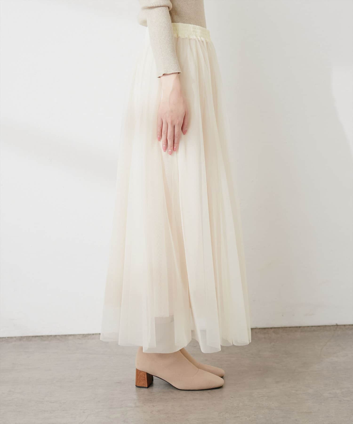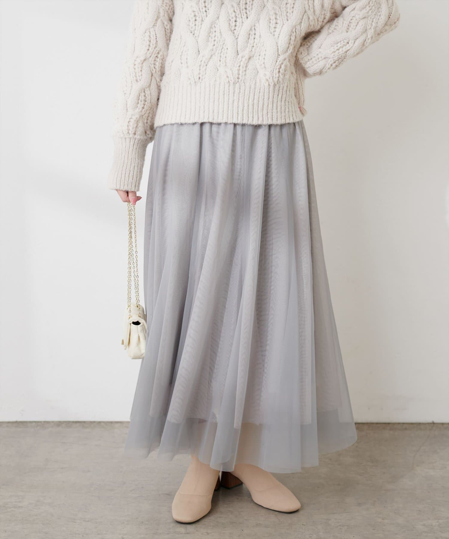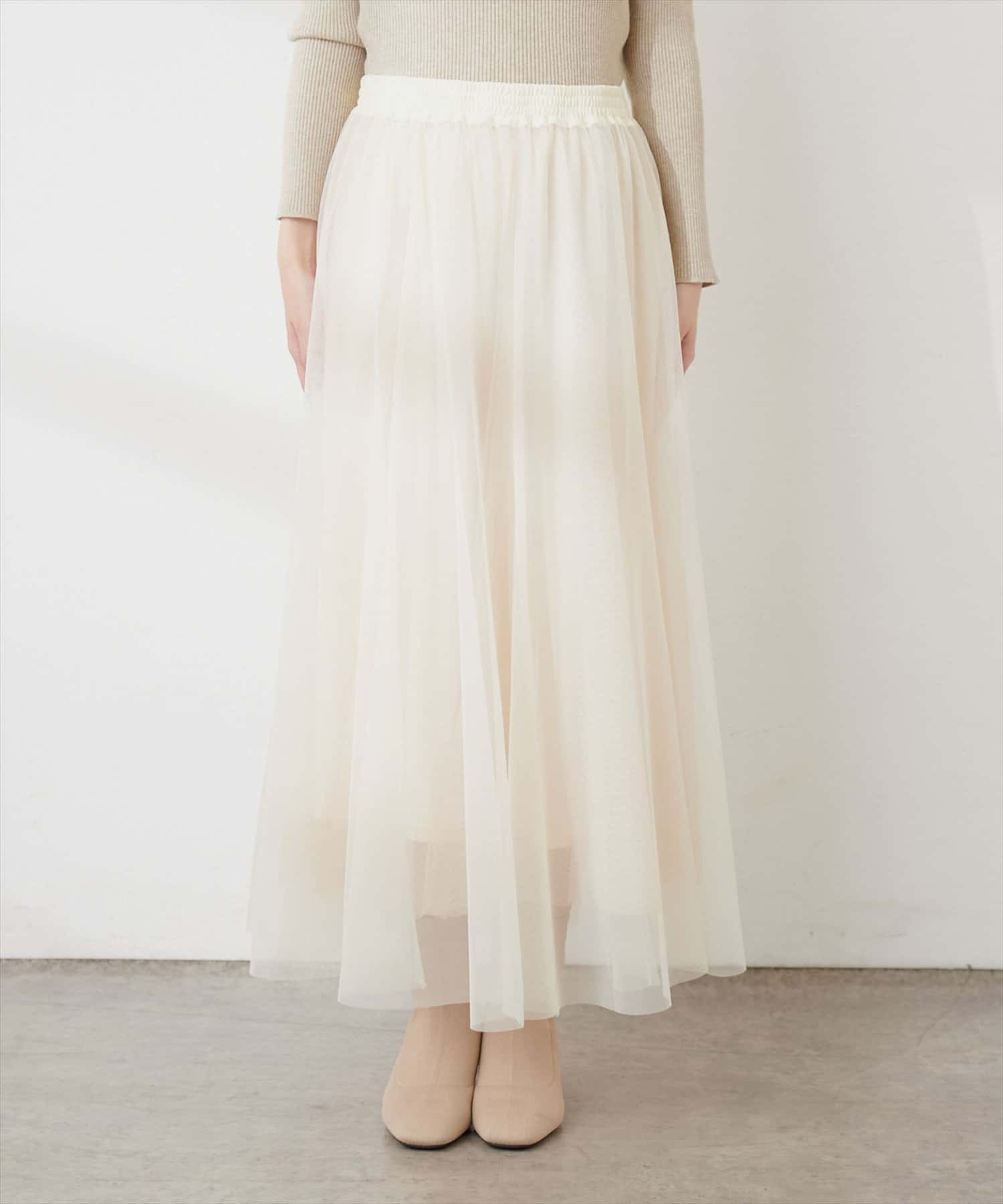 二枚重ねのチュールが軽やかに広がるチュールスカート。