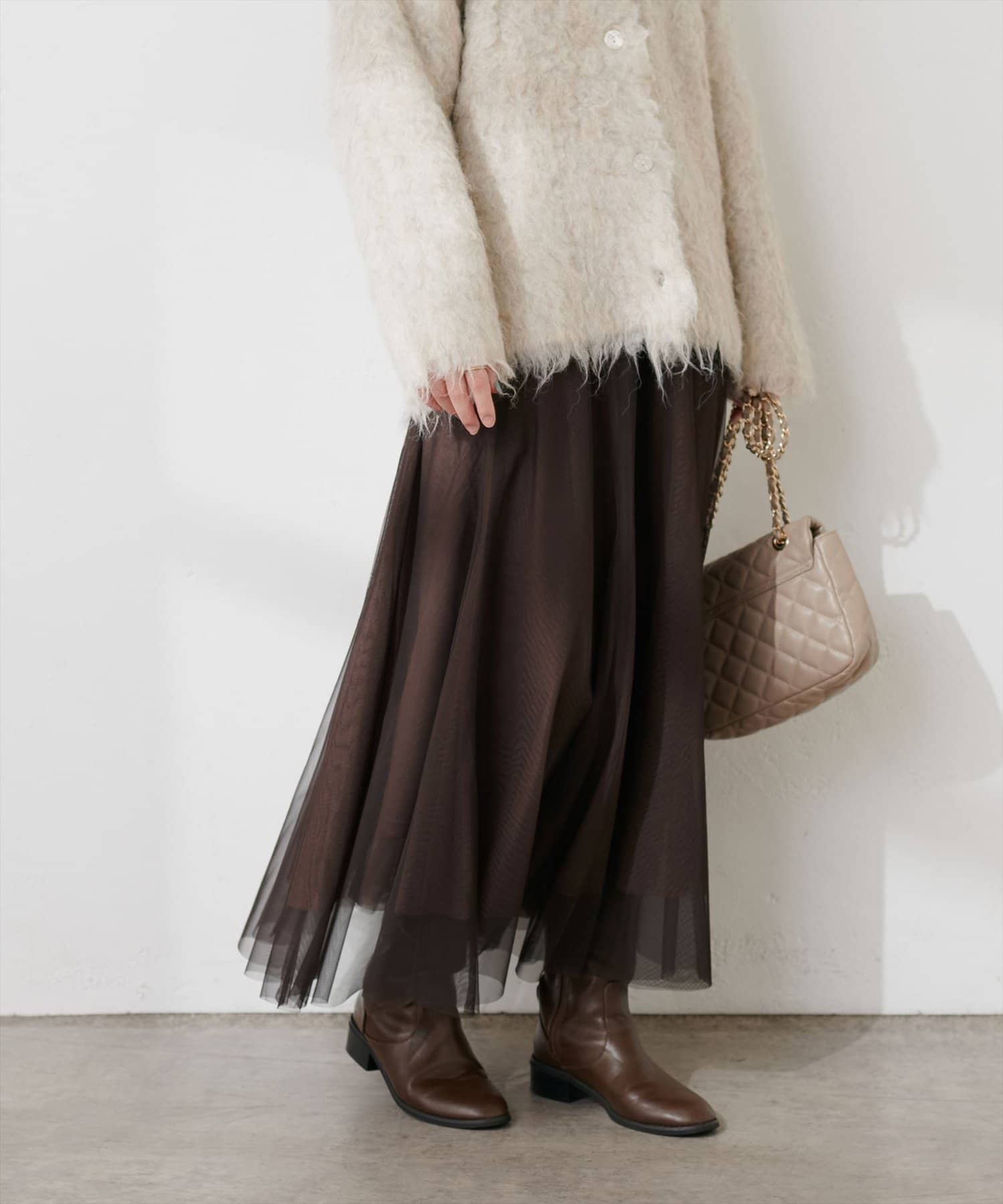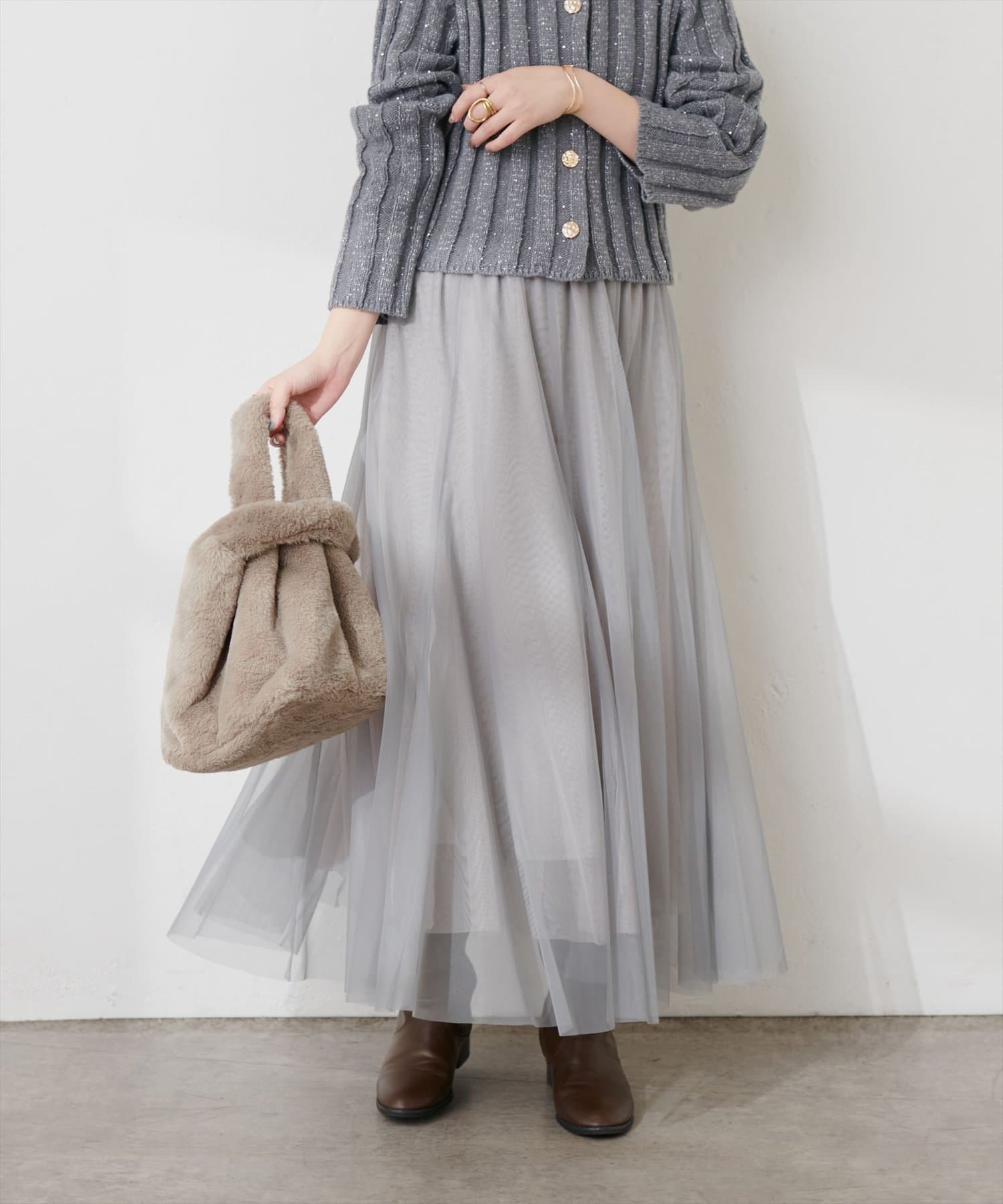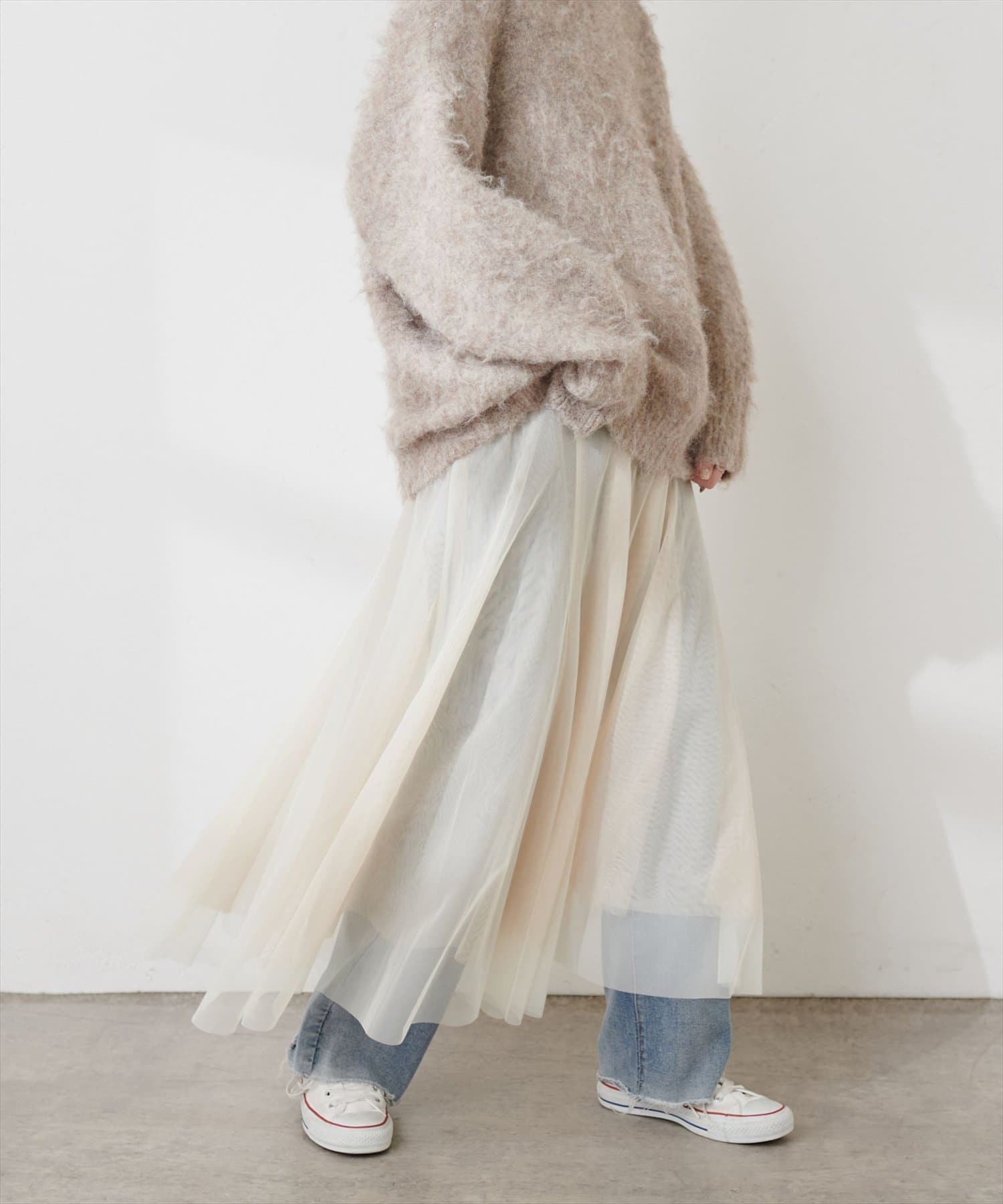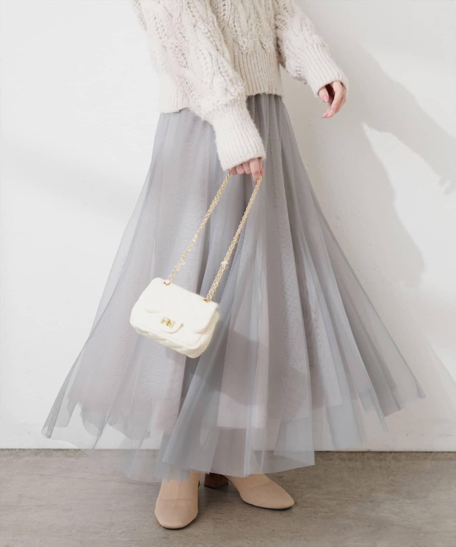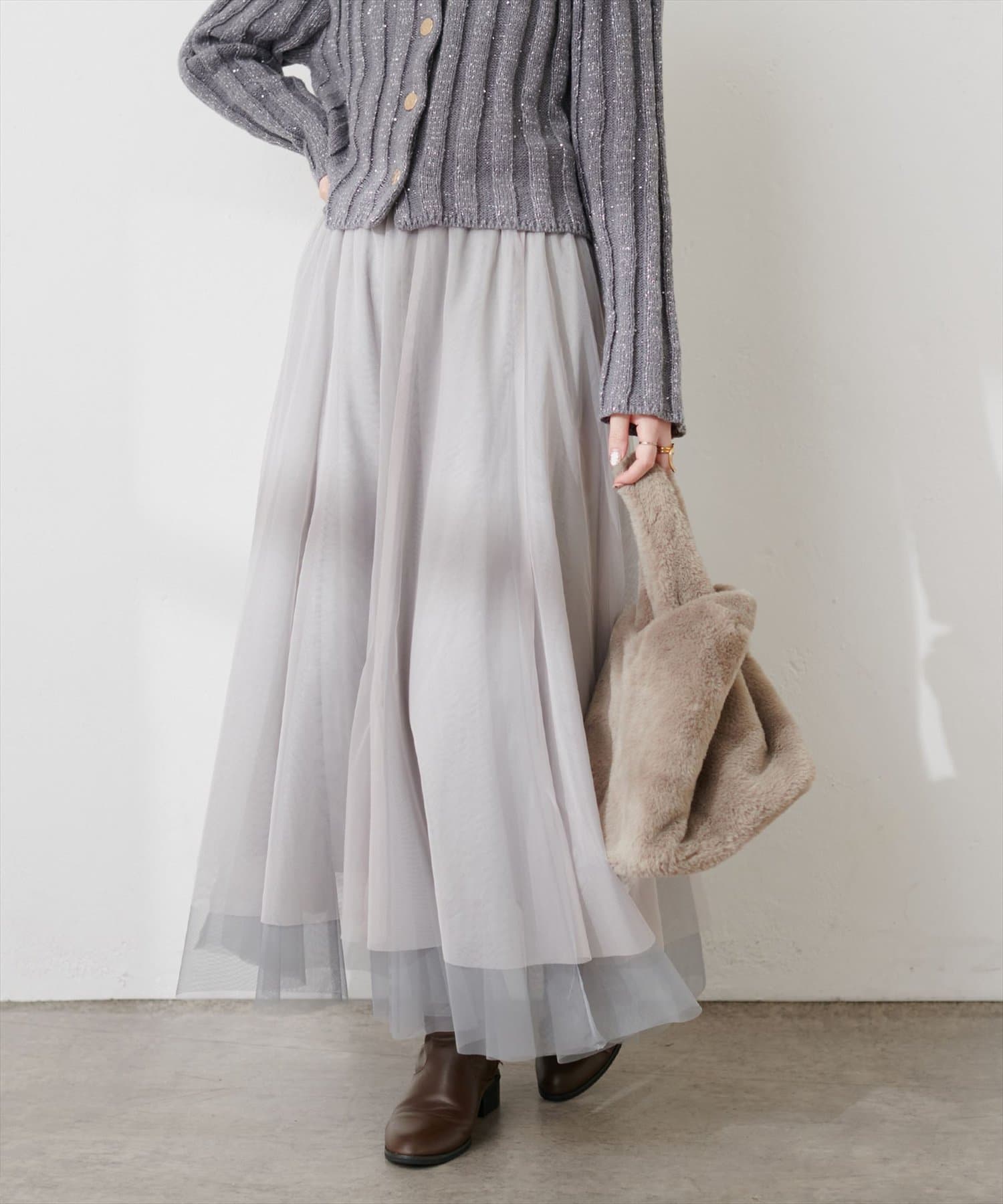 二枚重ねのチュールが軽やかに広がるチュールスカート。