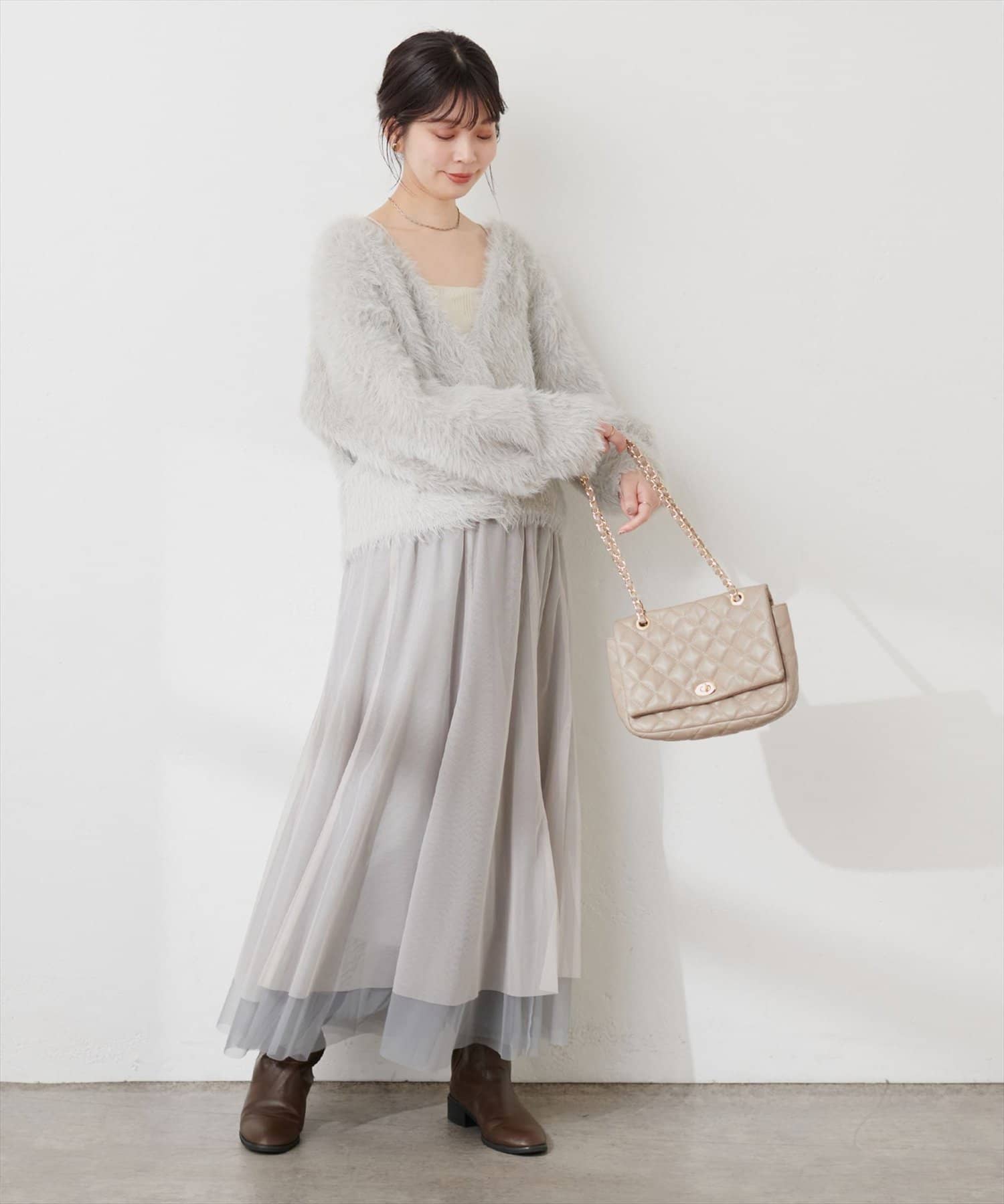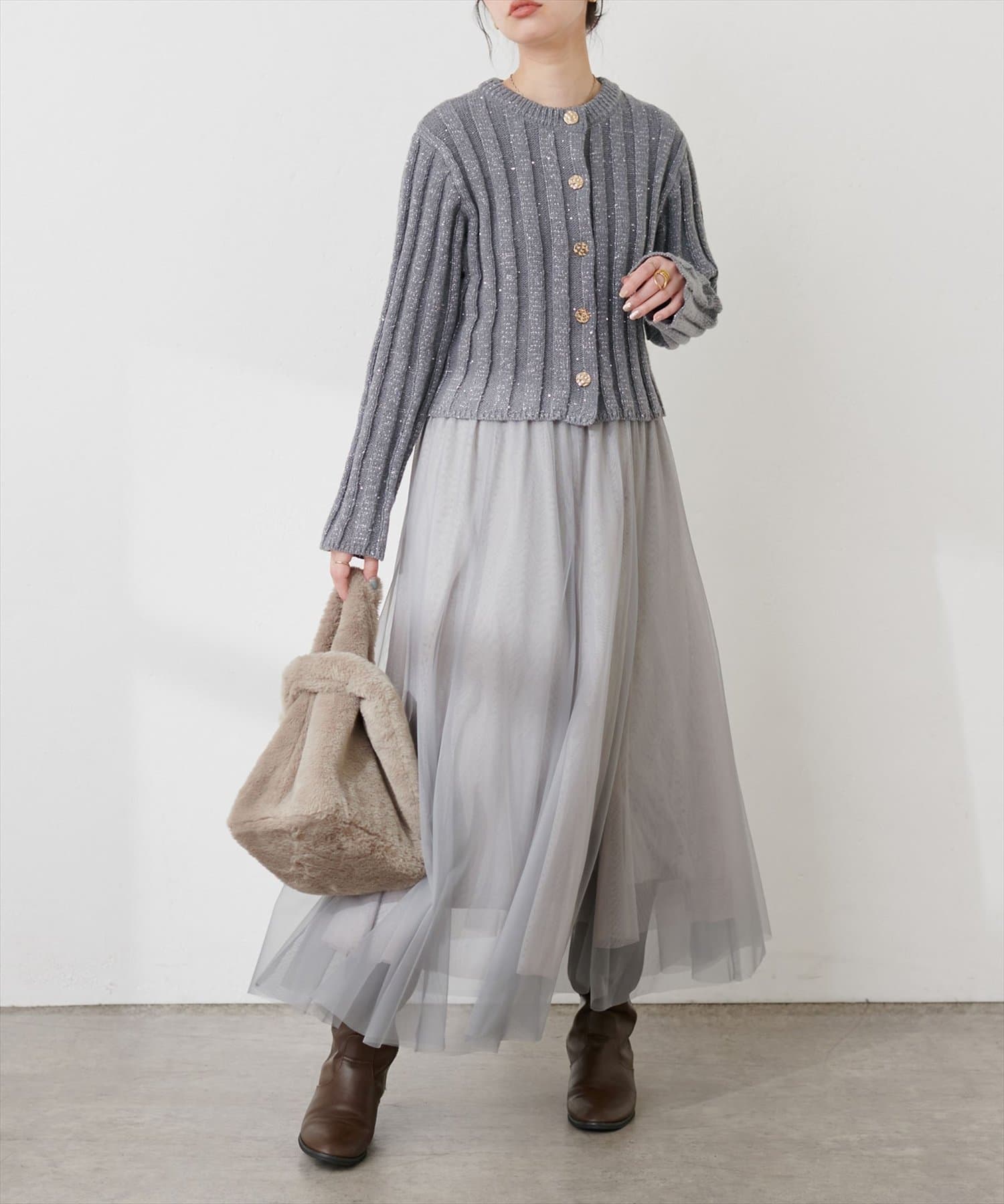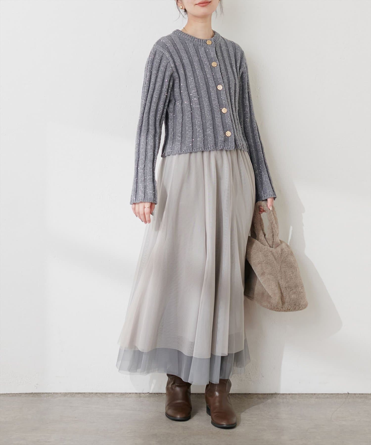 カーディガンやスウェットなどどんなアイテムとも相性◎