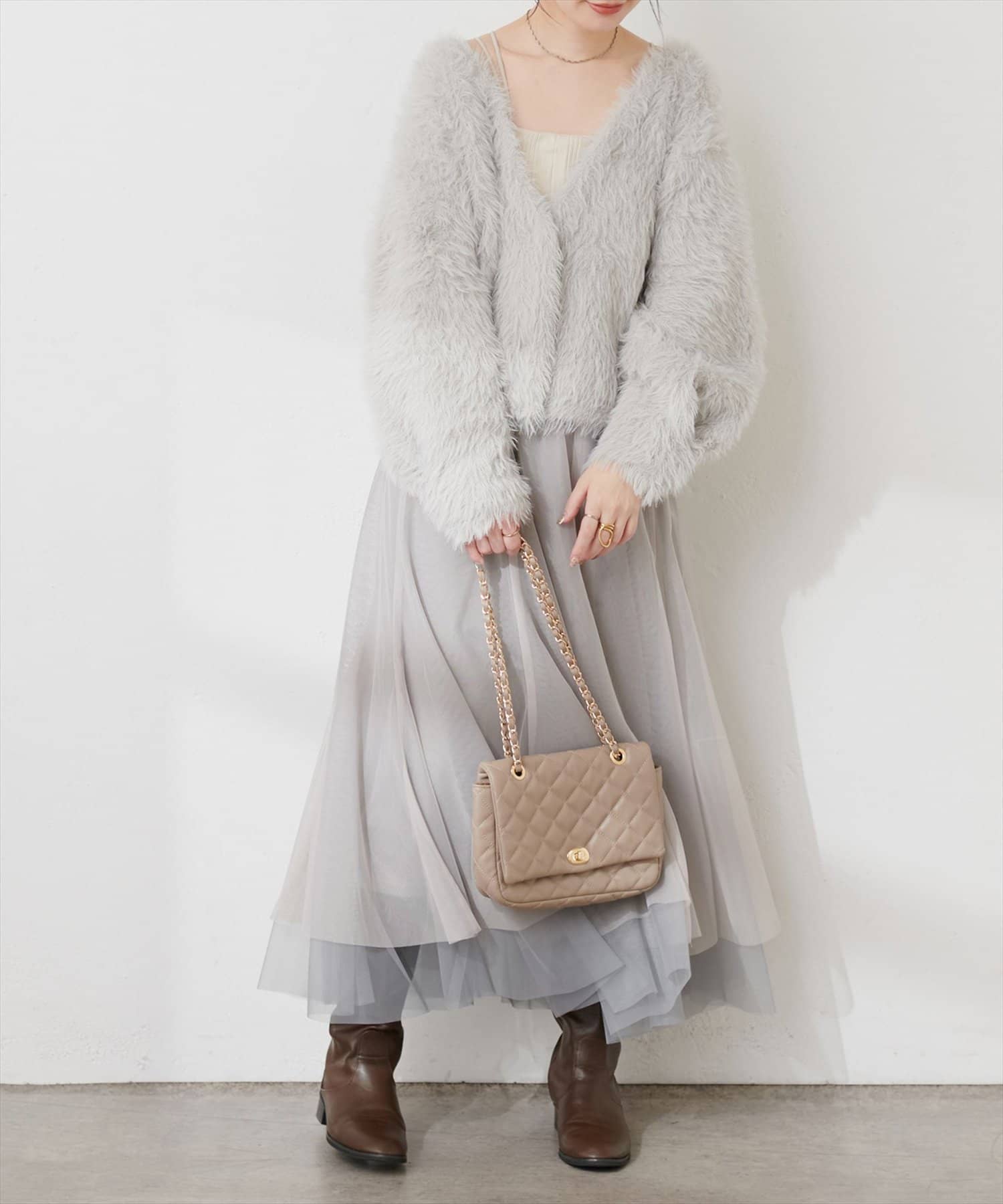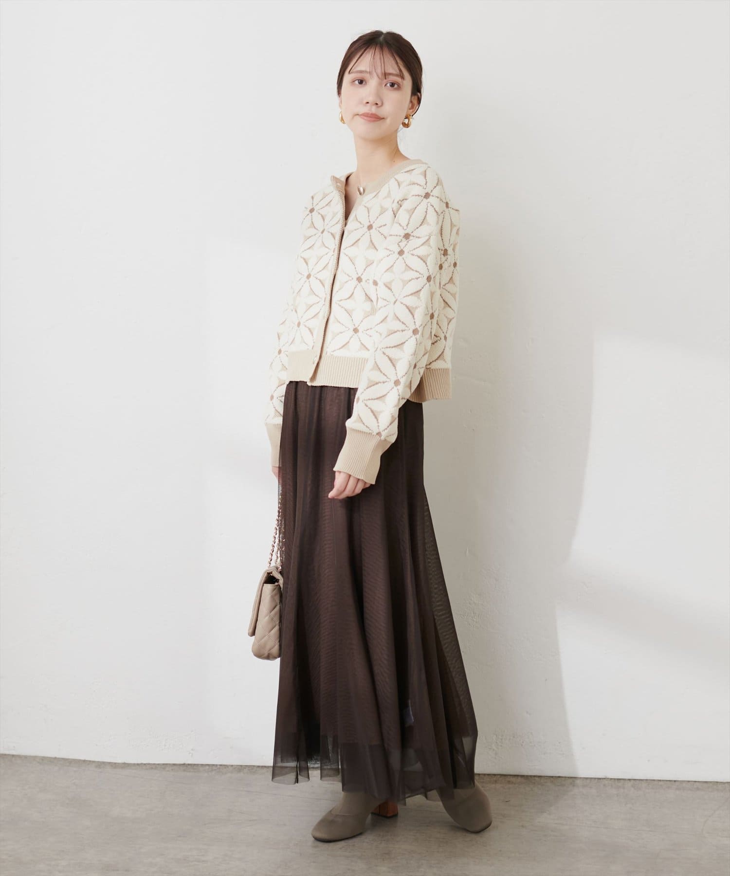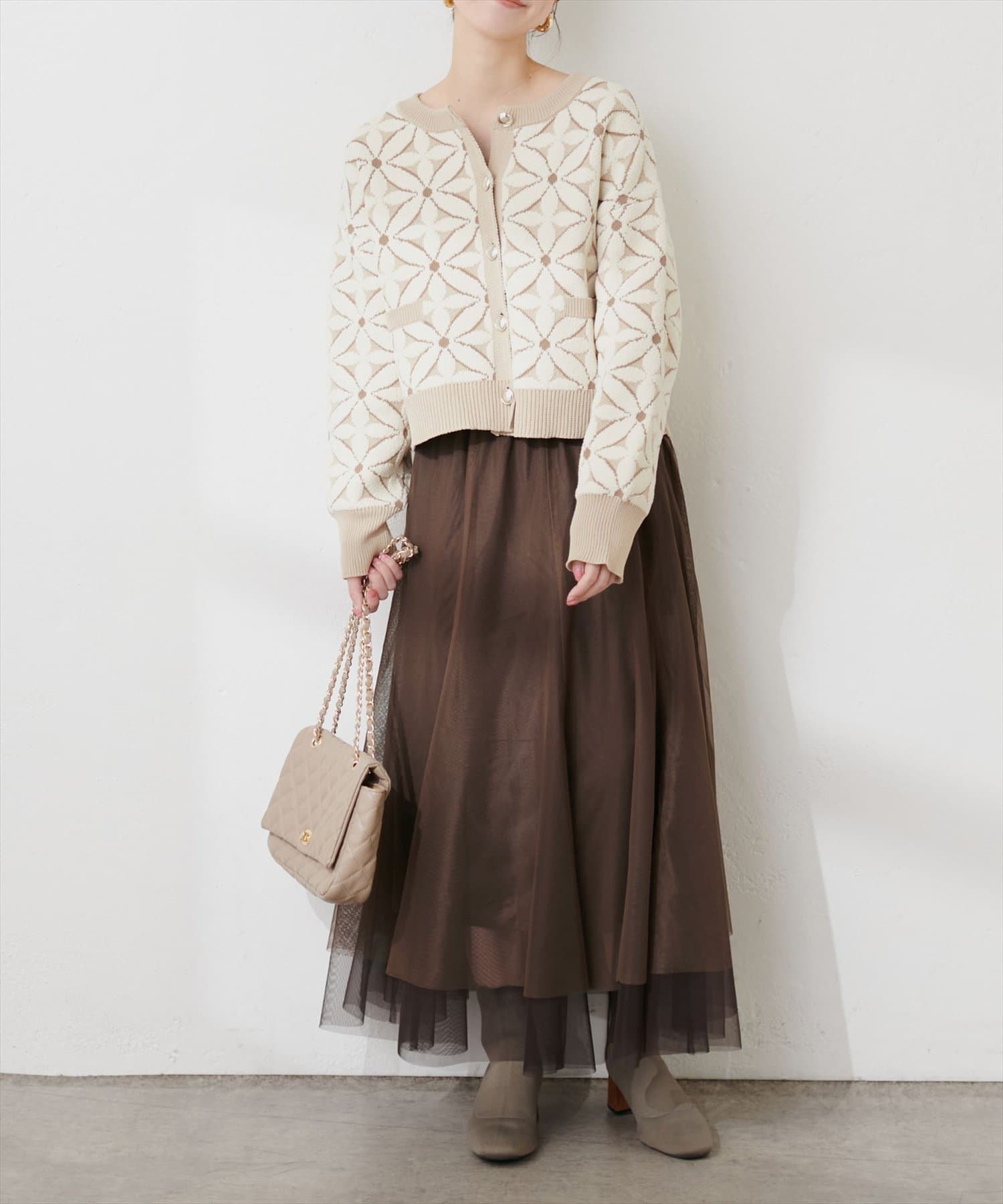 カーディガンやスウェットなどどんなアイテムとも相性◎