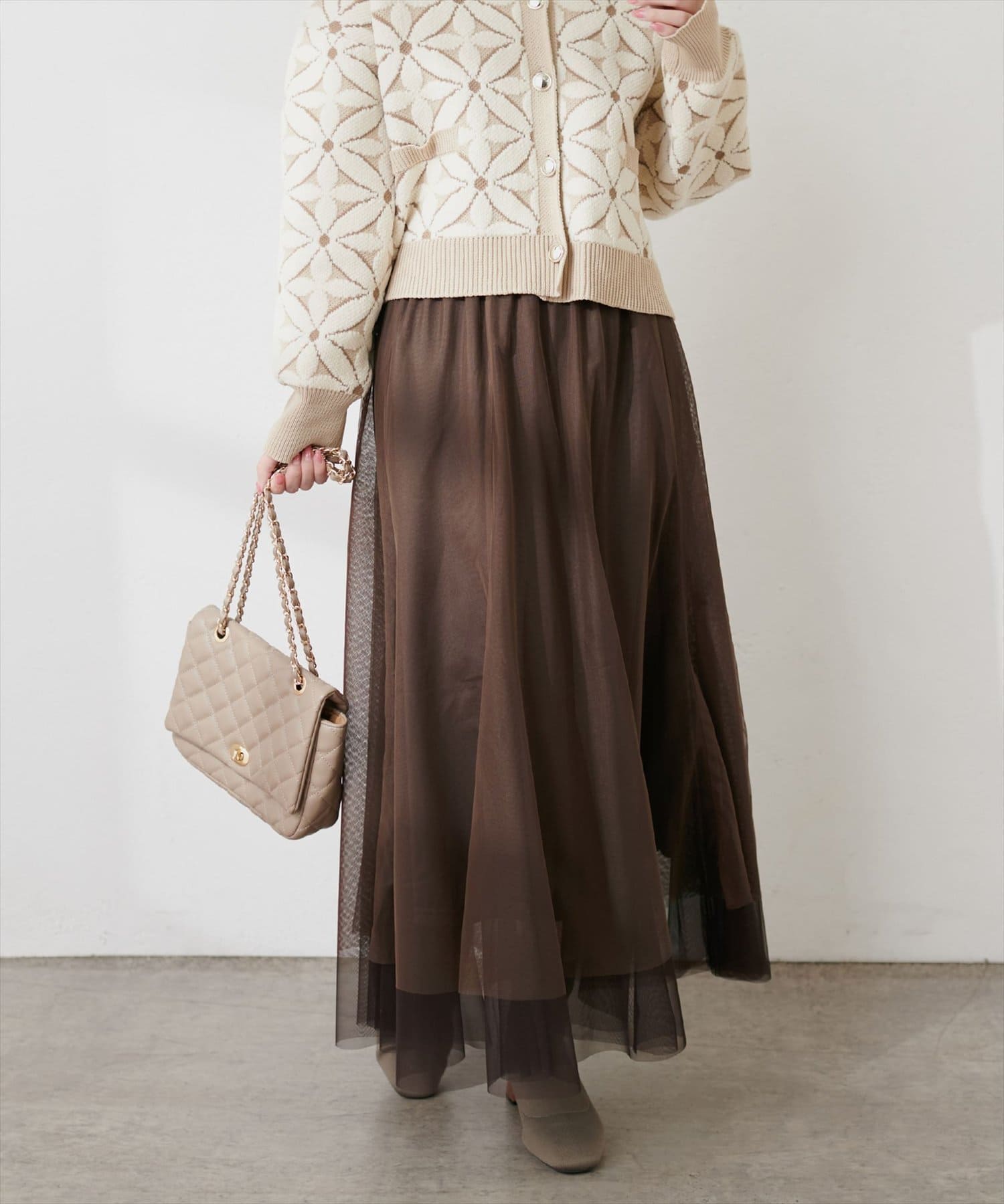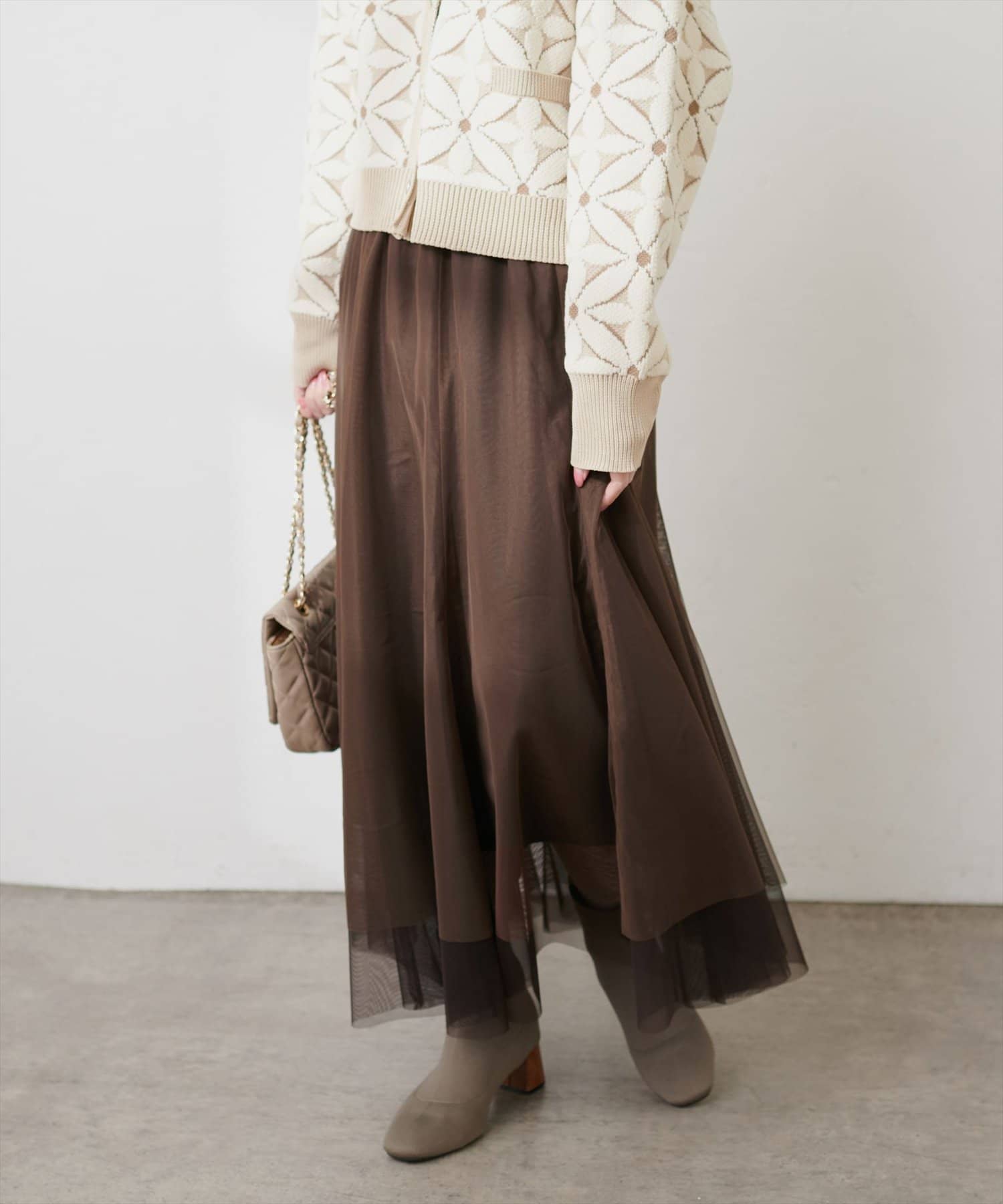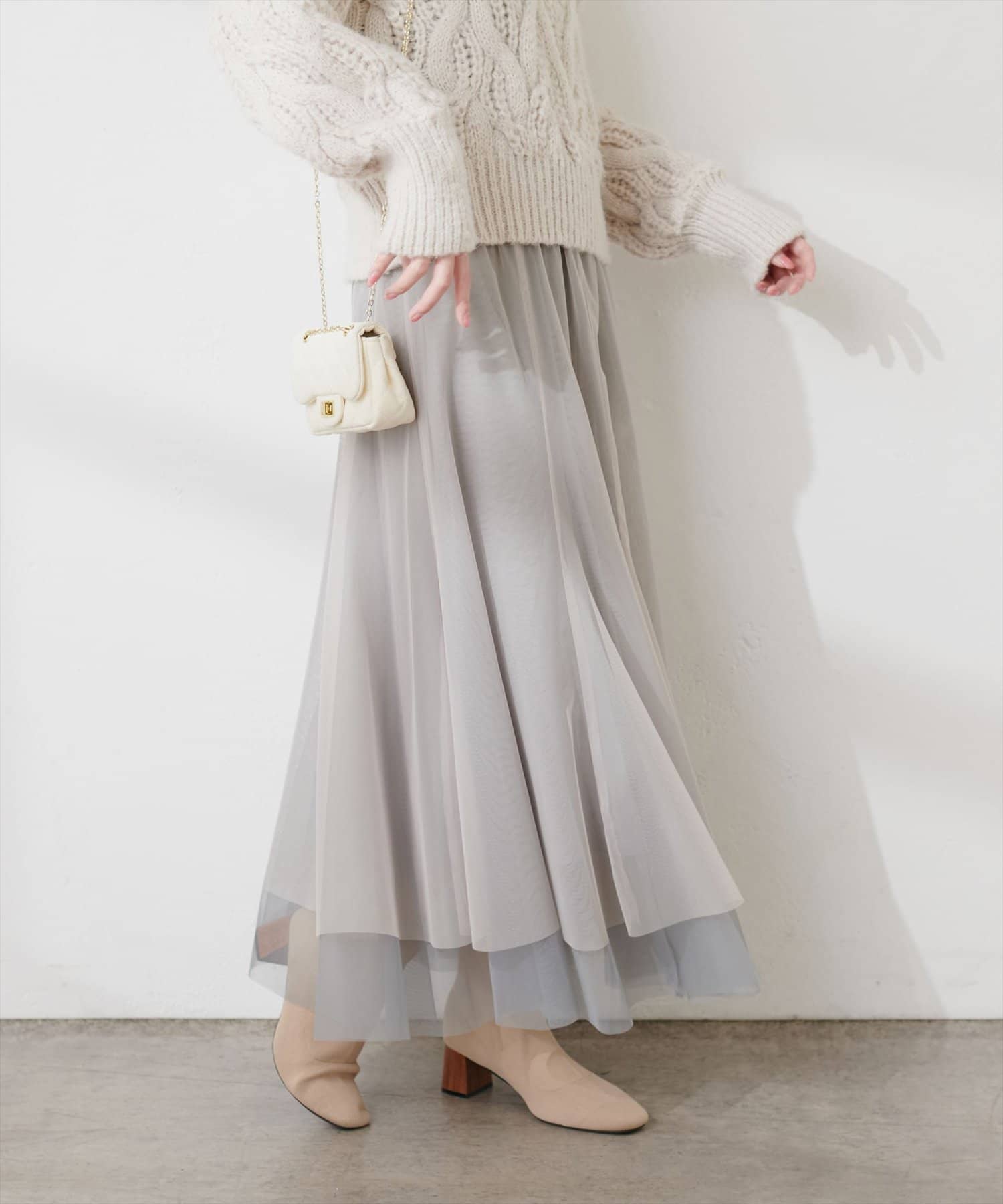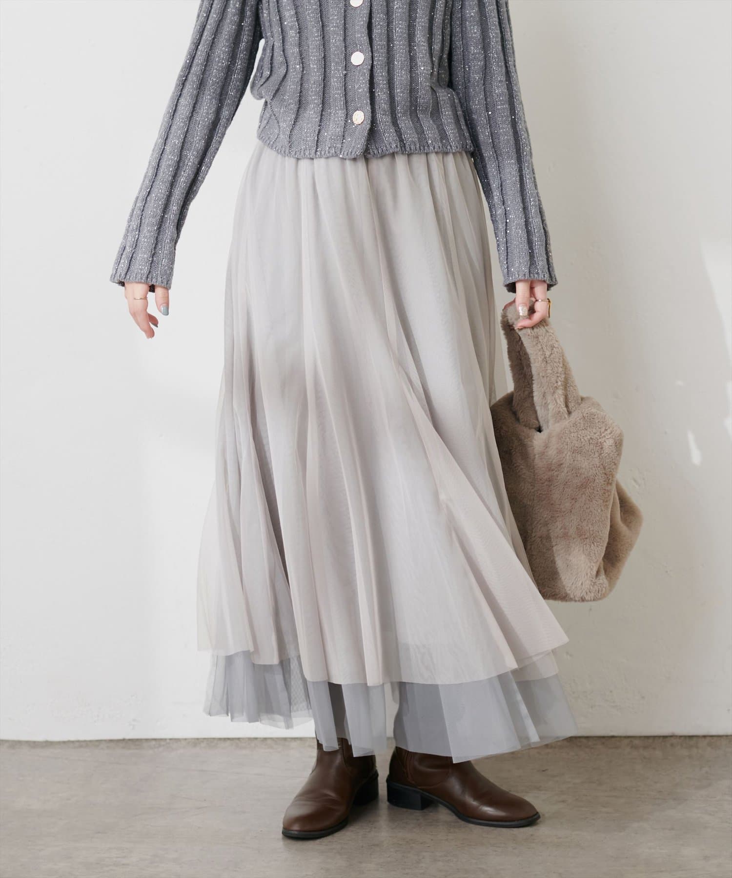 二枚重ねのチュールが軽やかに広がるチュールスカート。