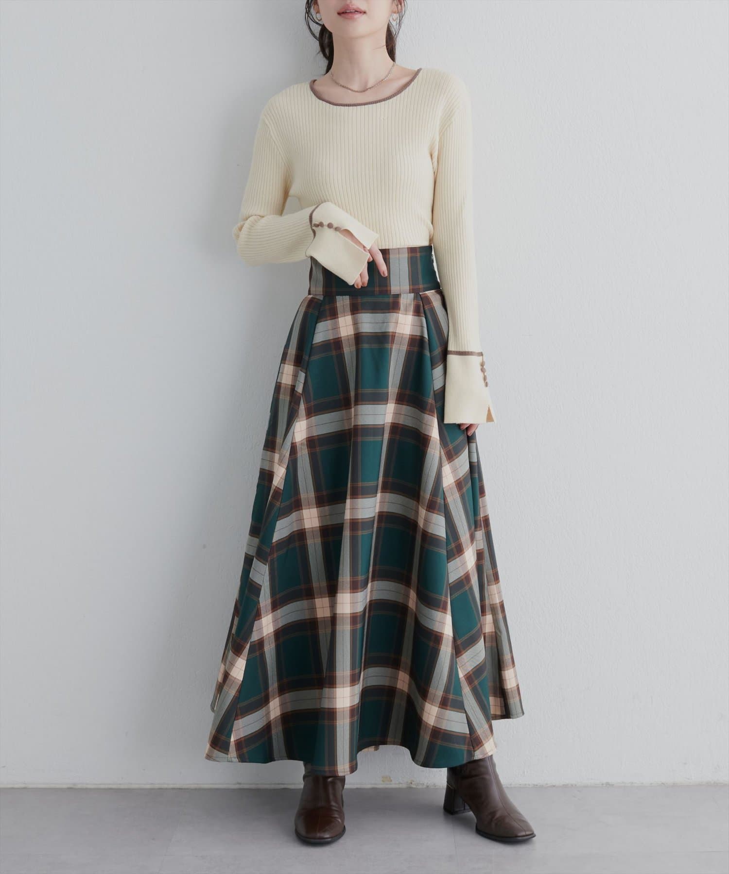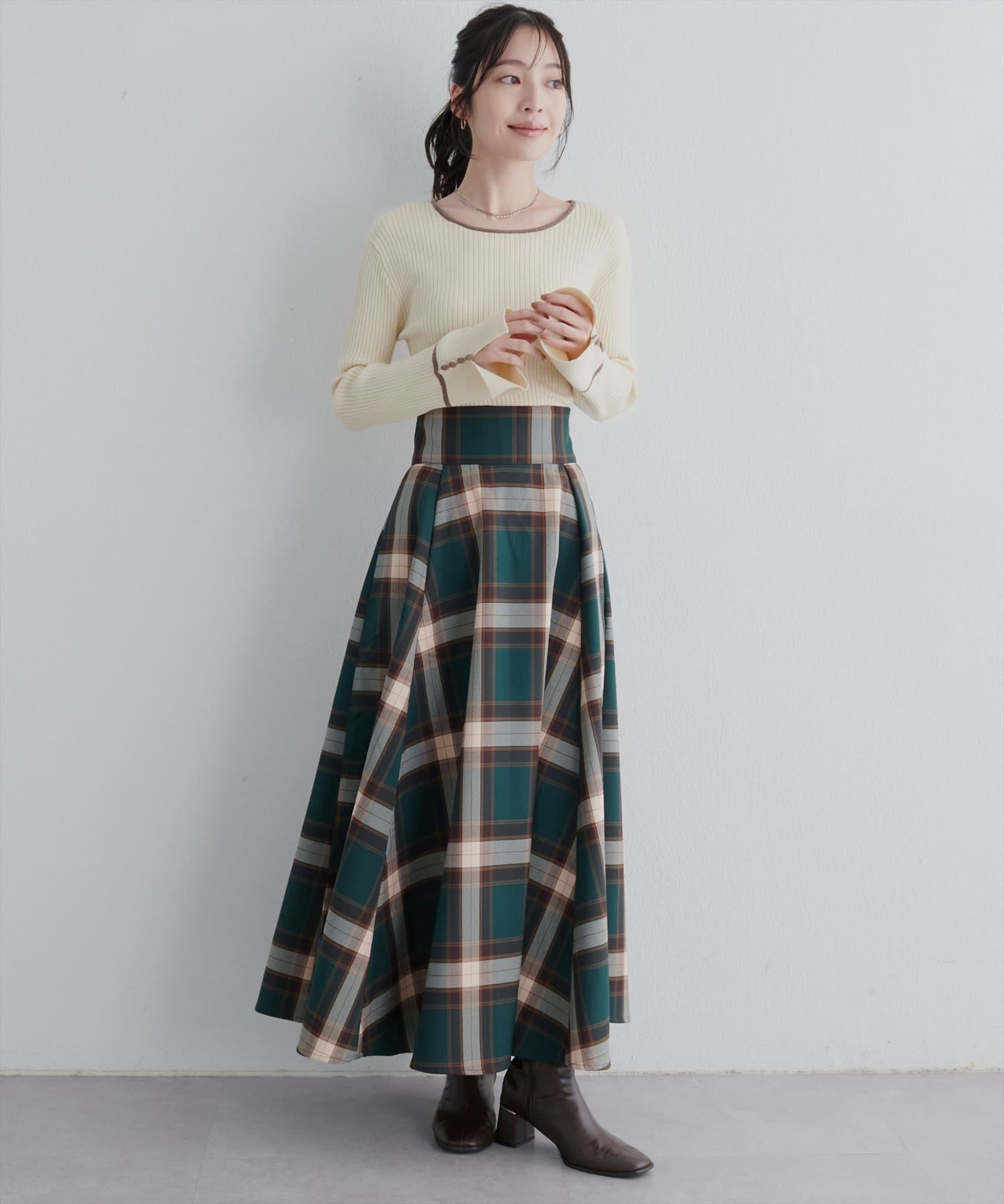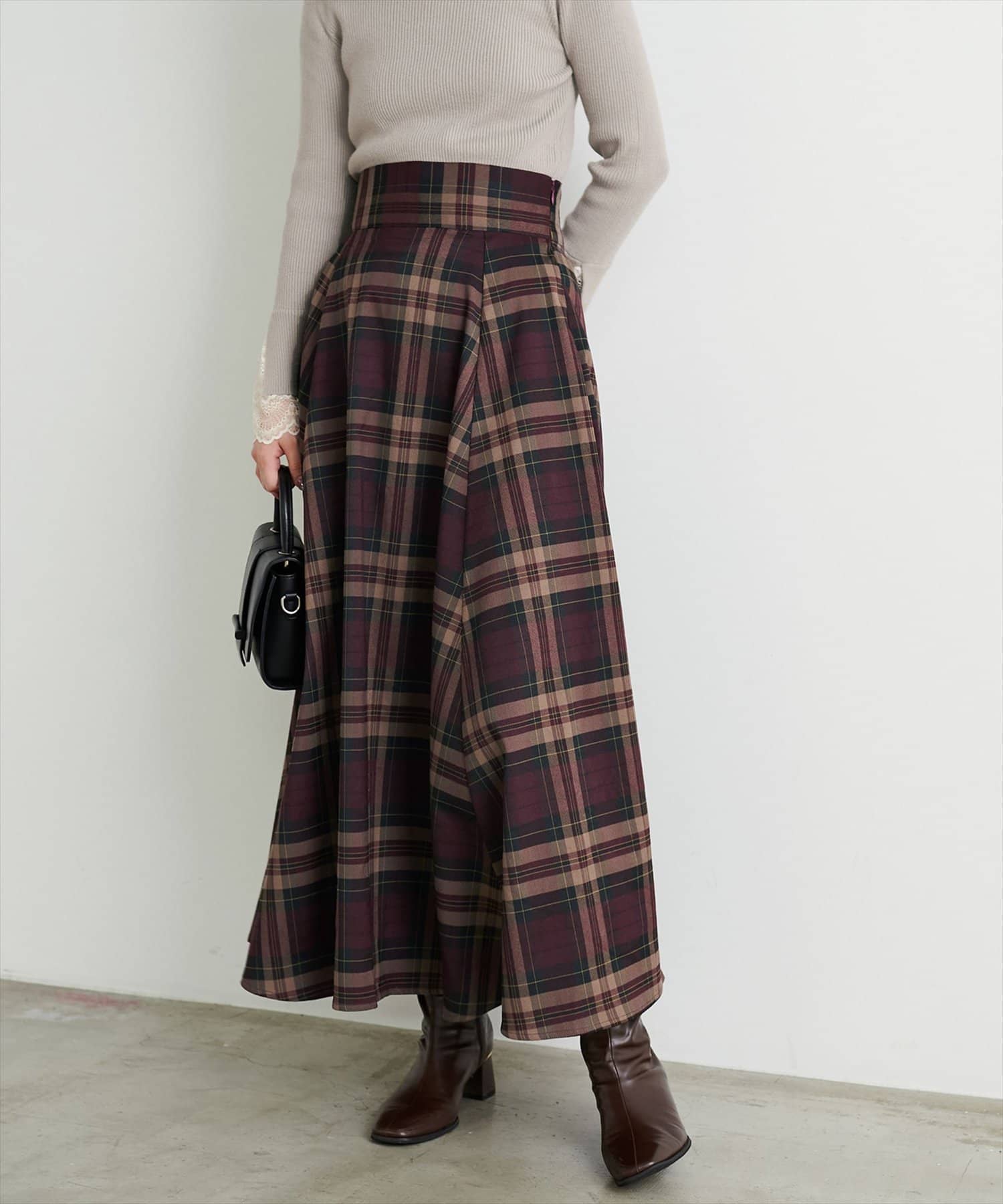 裾にかけてふんだんに生地を使用したサーキュラースカートに、秋らしいこっくりとしたカラーのチェック柄が新登場です。