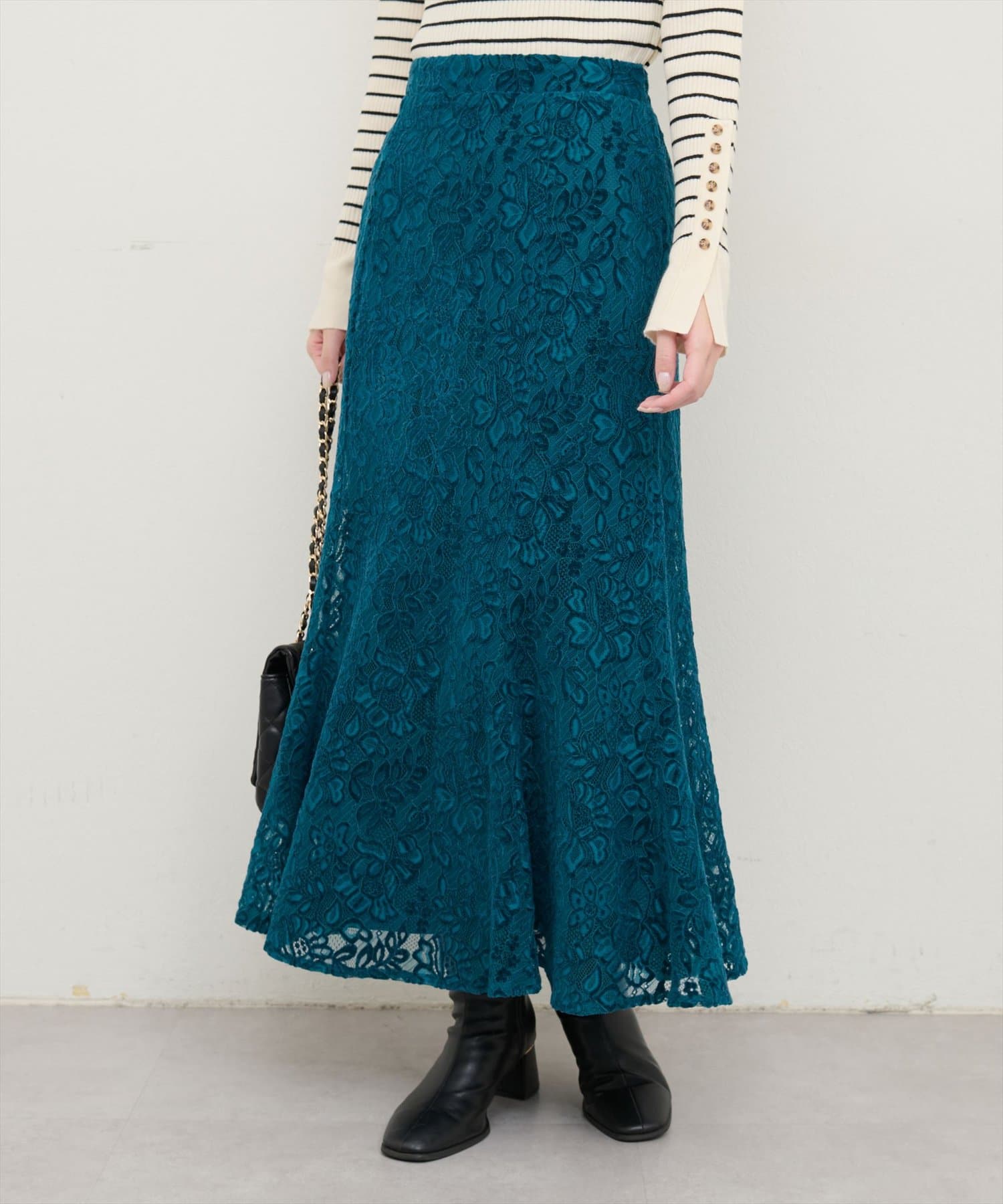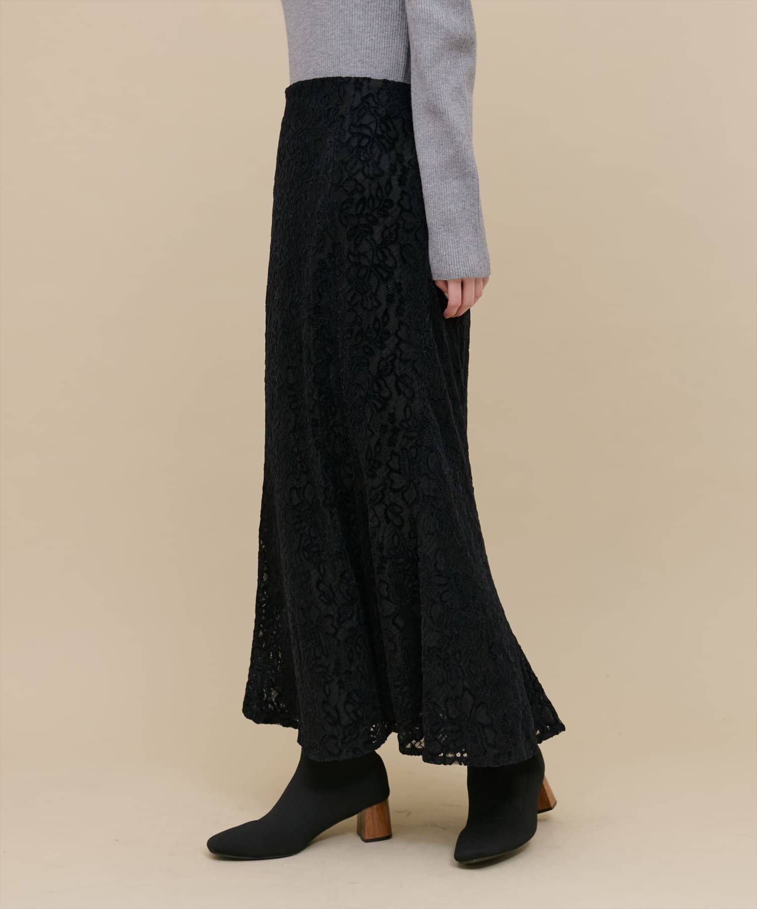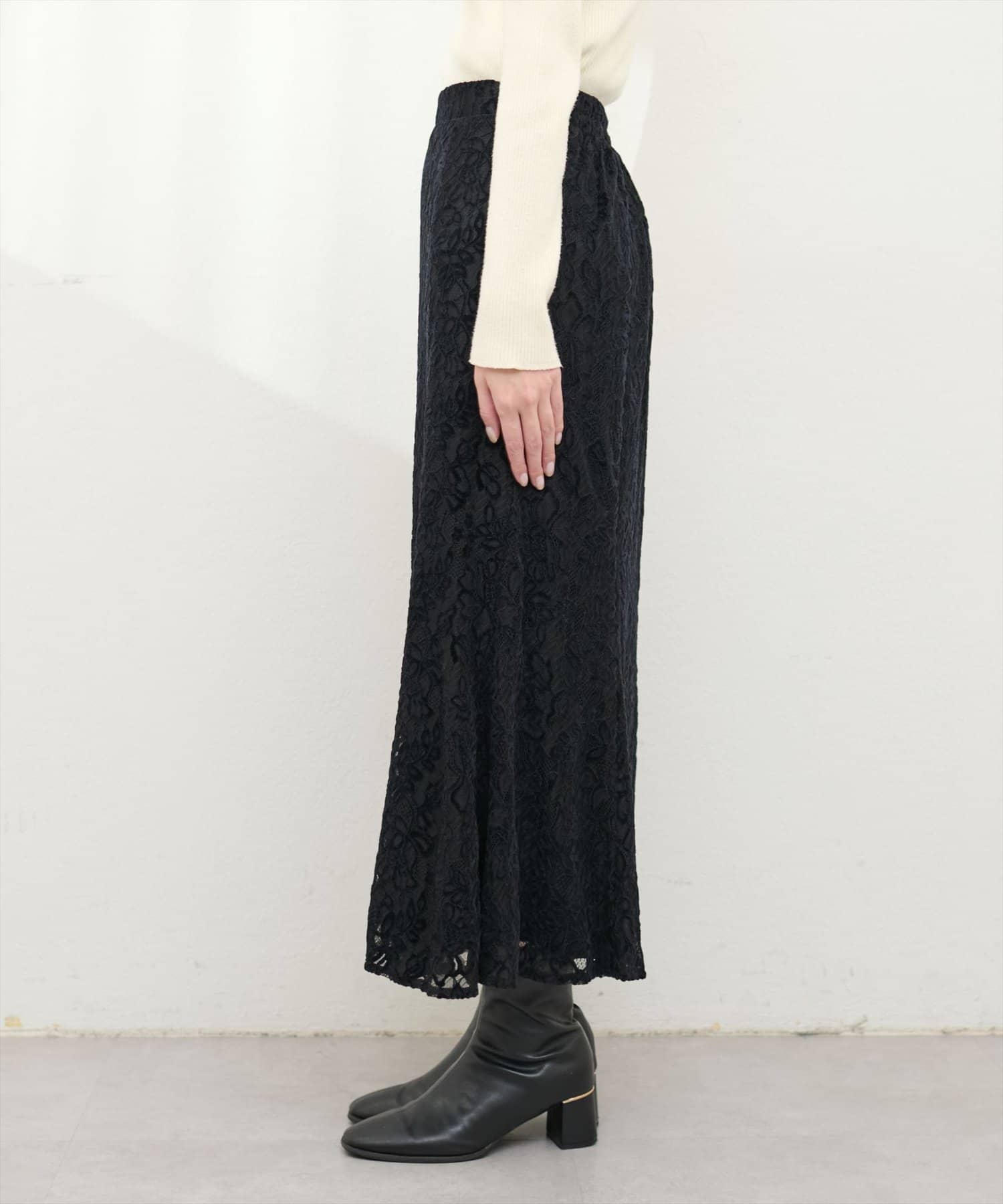 高級感のある起毛レースが様々なシーンで映えるマーメイドスカート