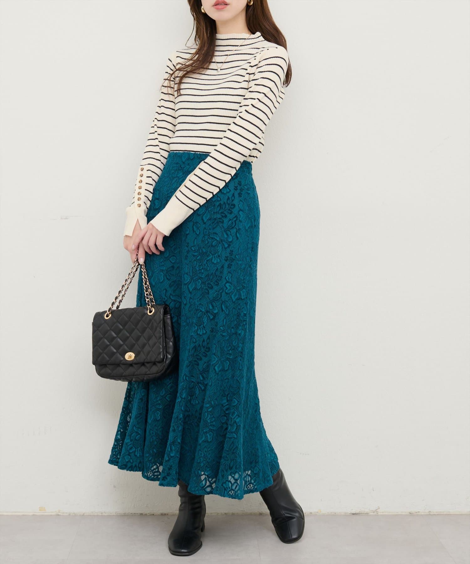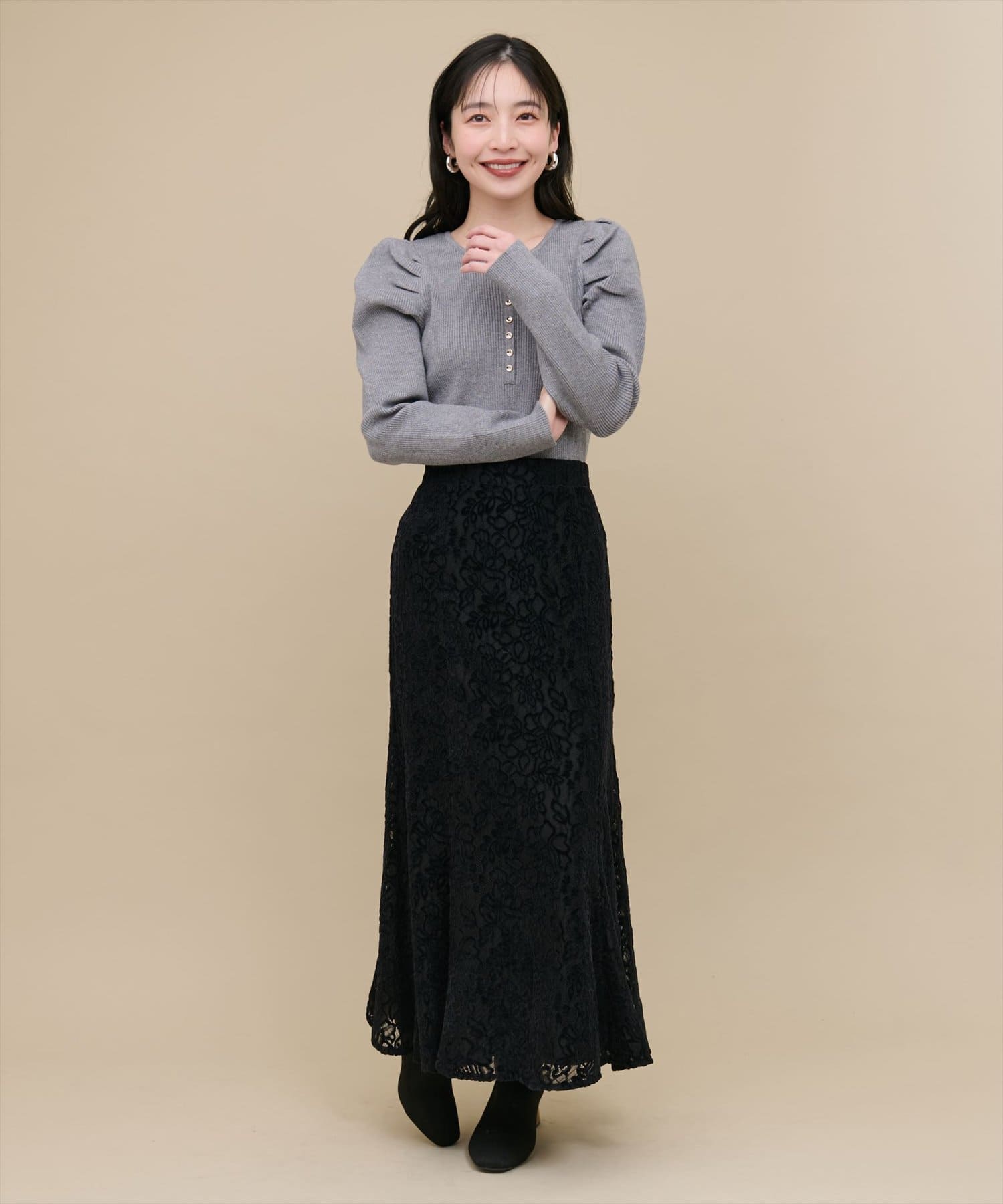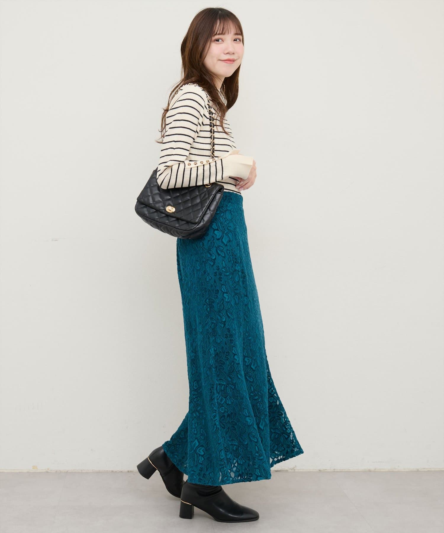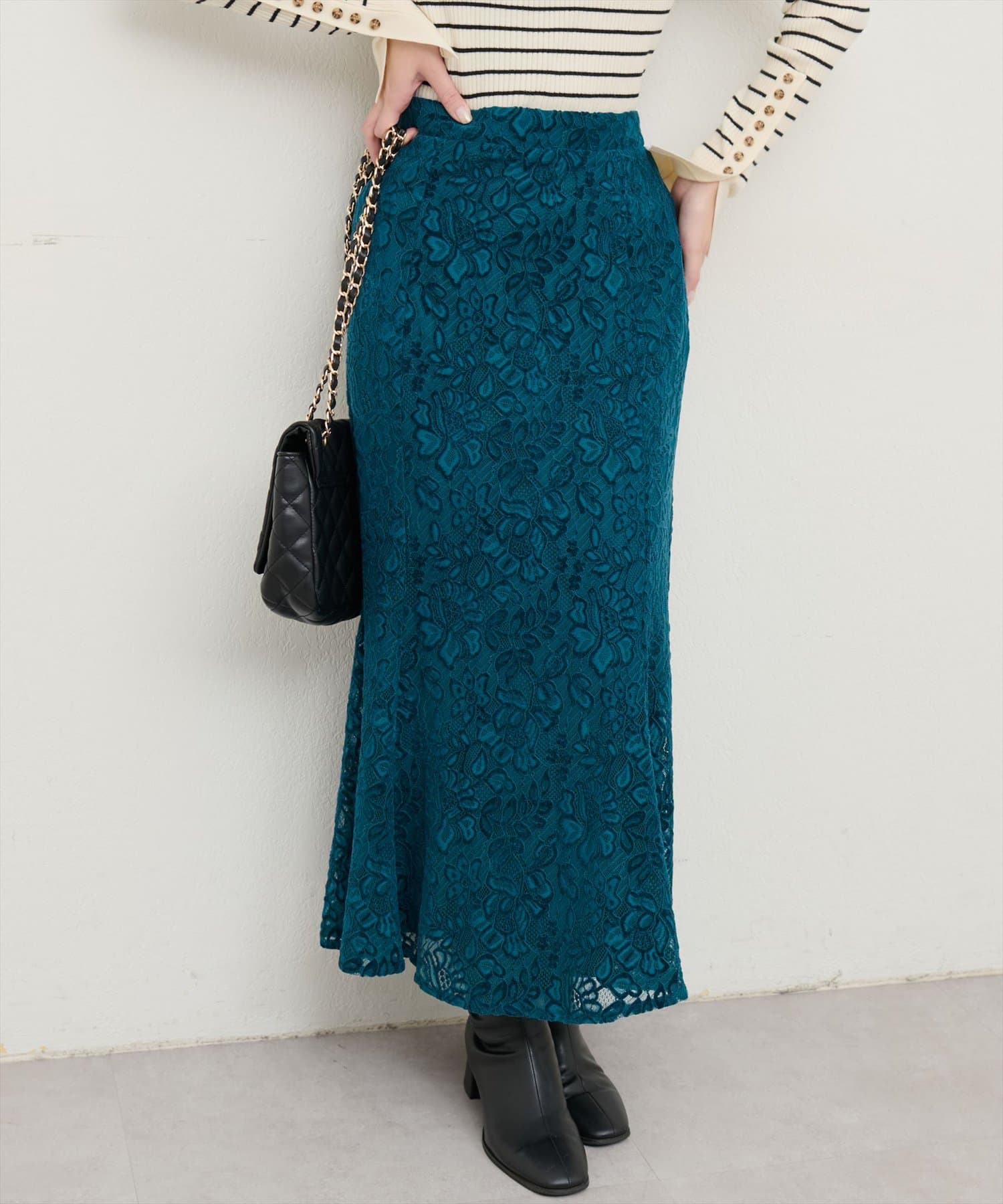 高級感のある起毛レースが様々なシーンで映えるマーメイドスカート