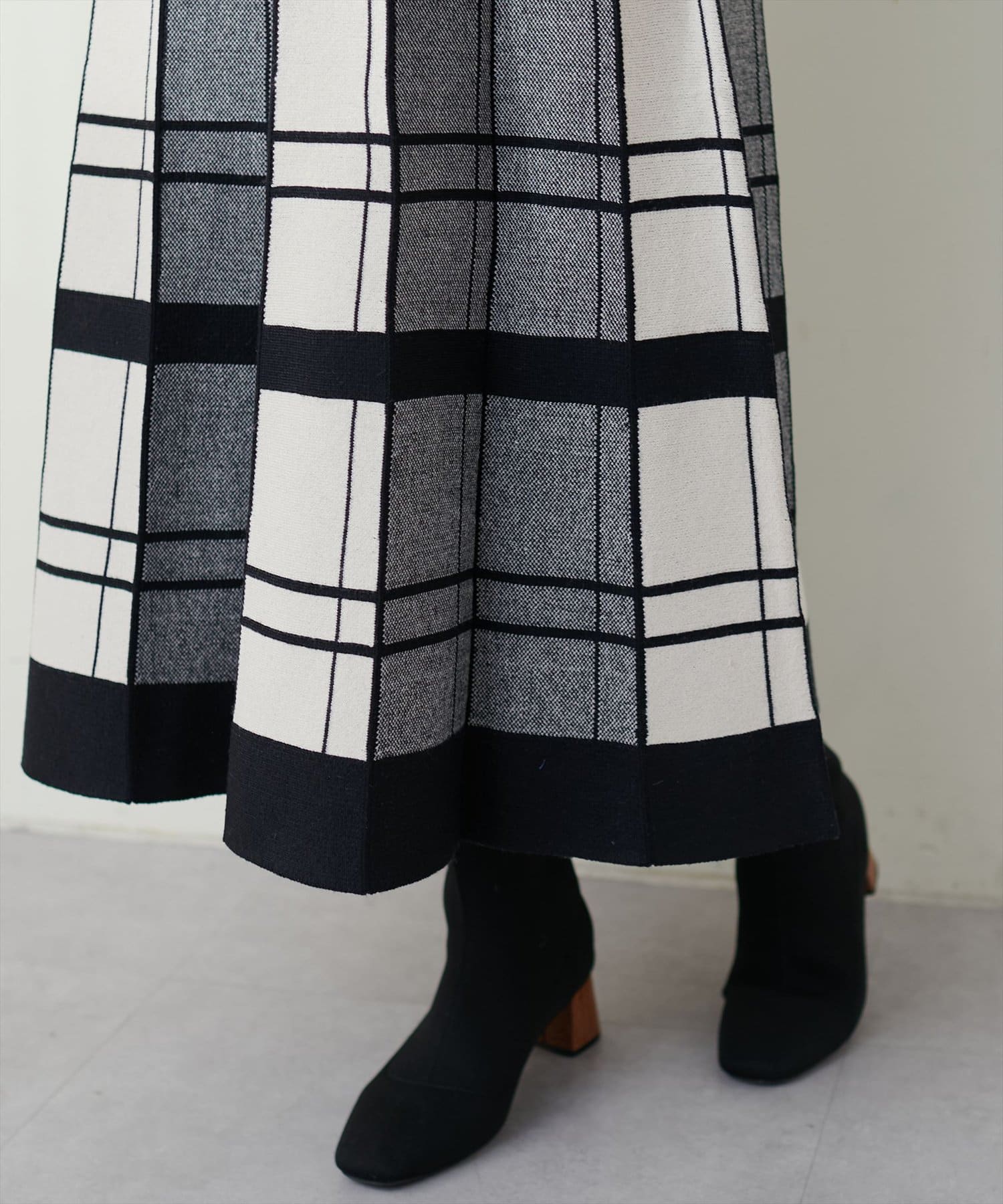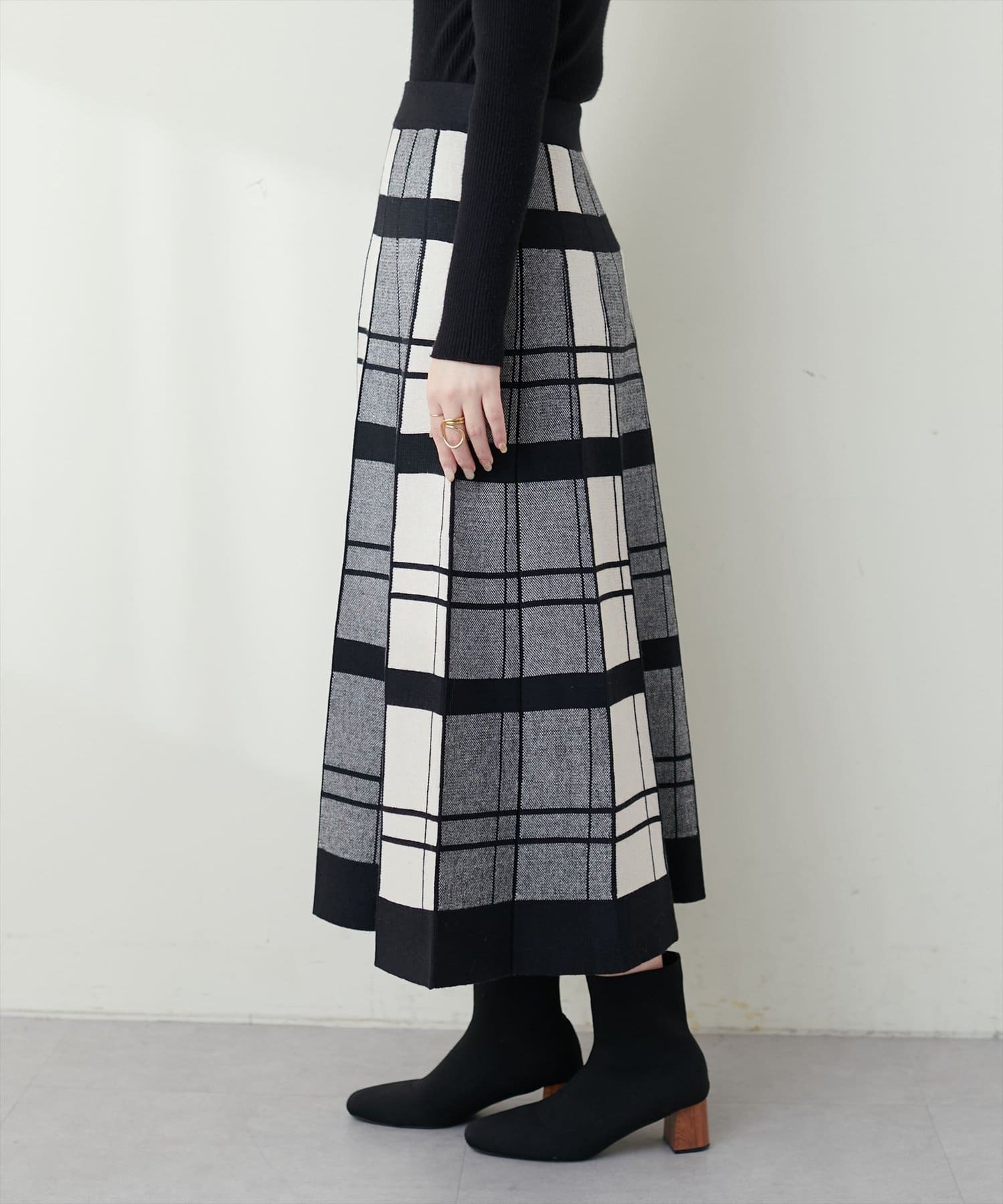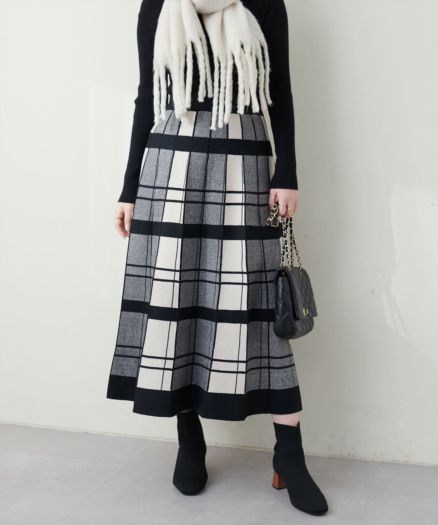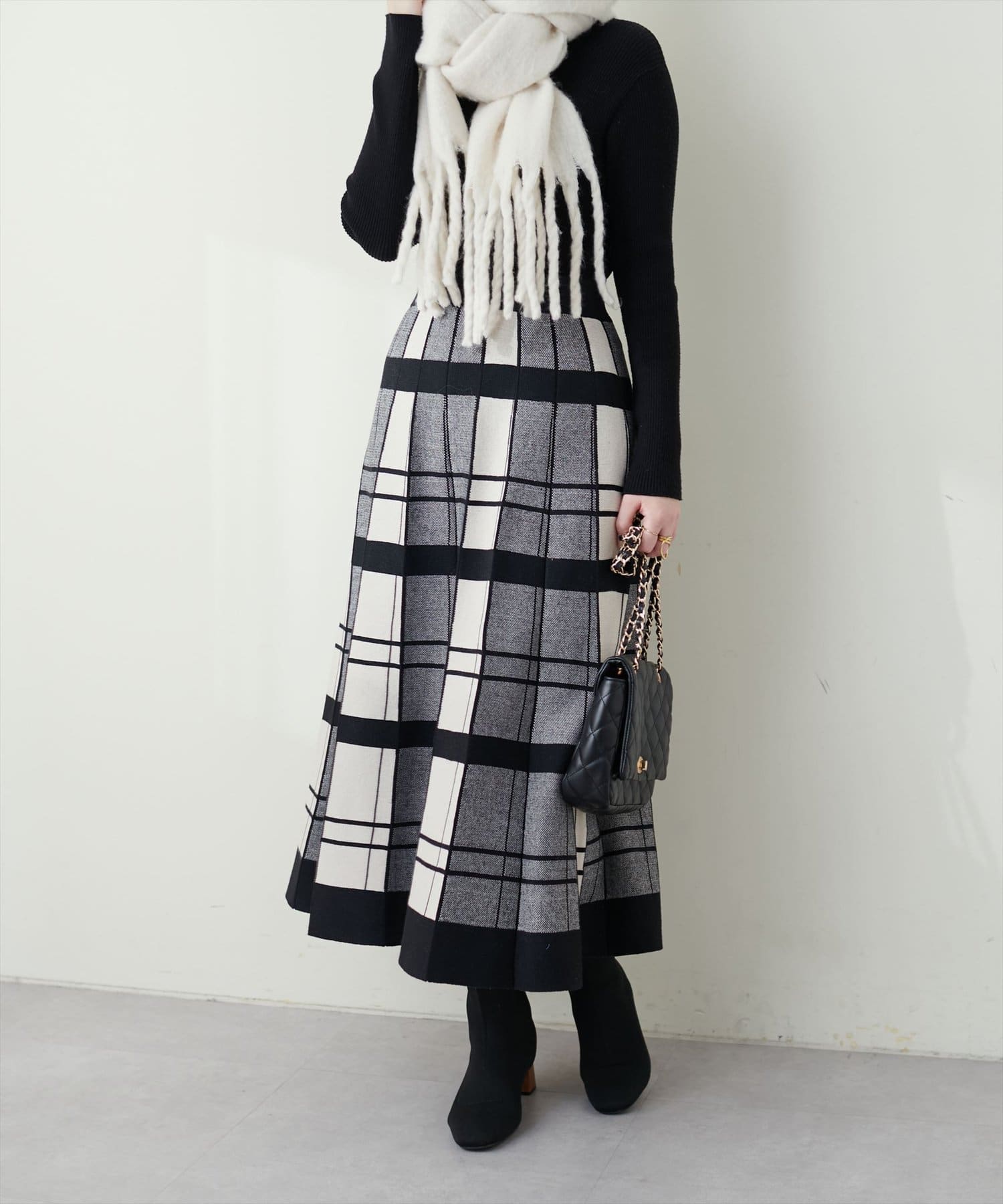 クラシカルな雰囲気のチェックニットプリーツスカート
