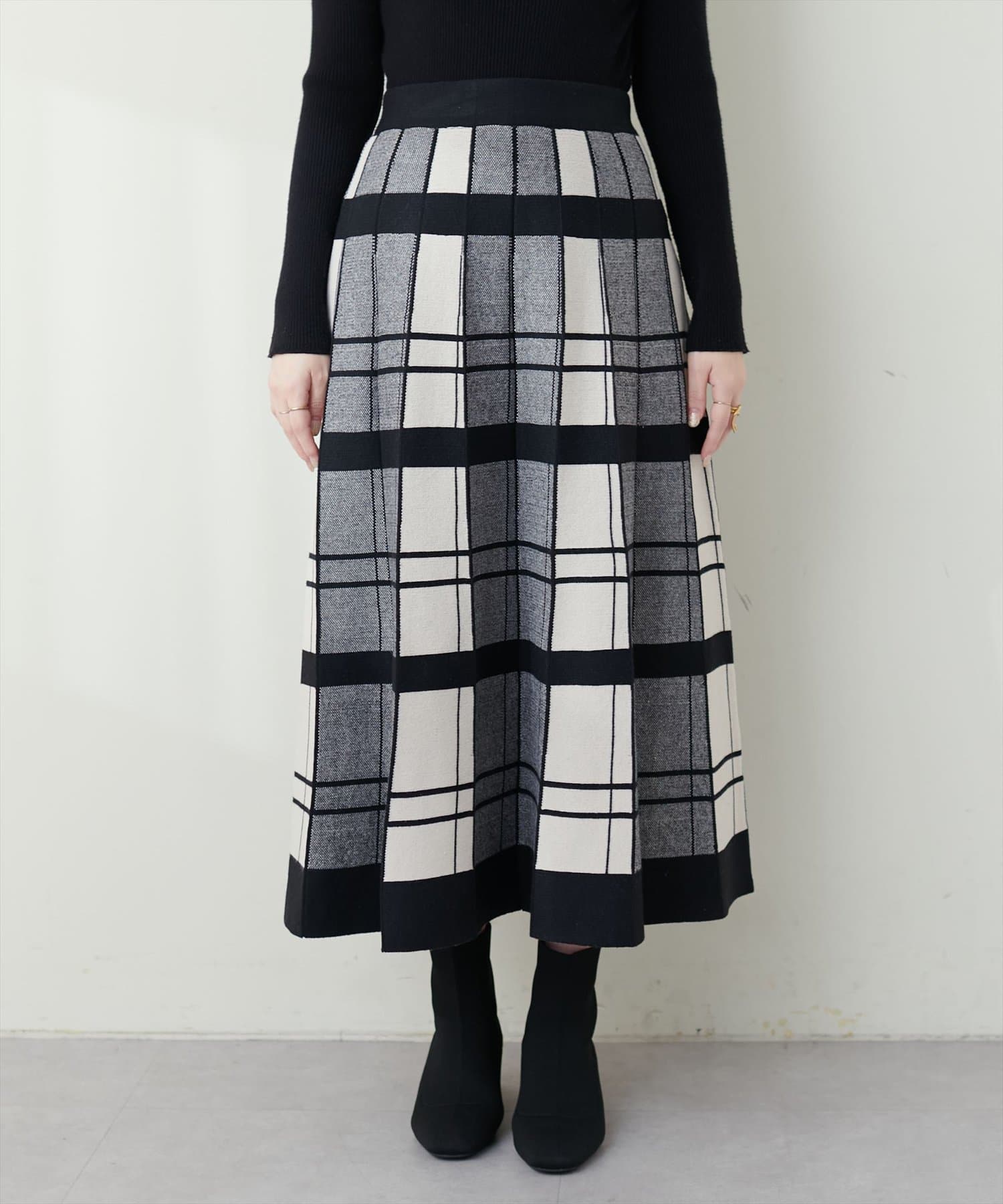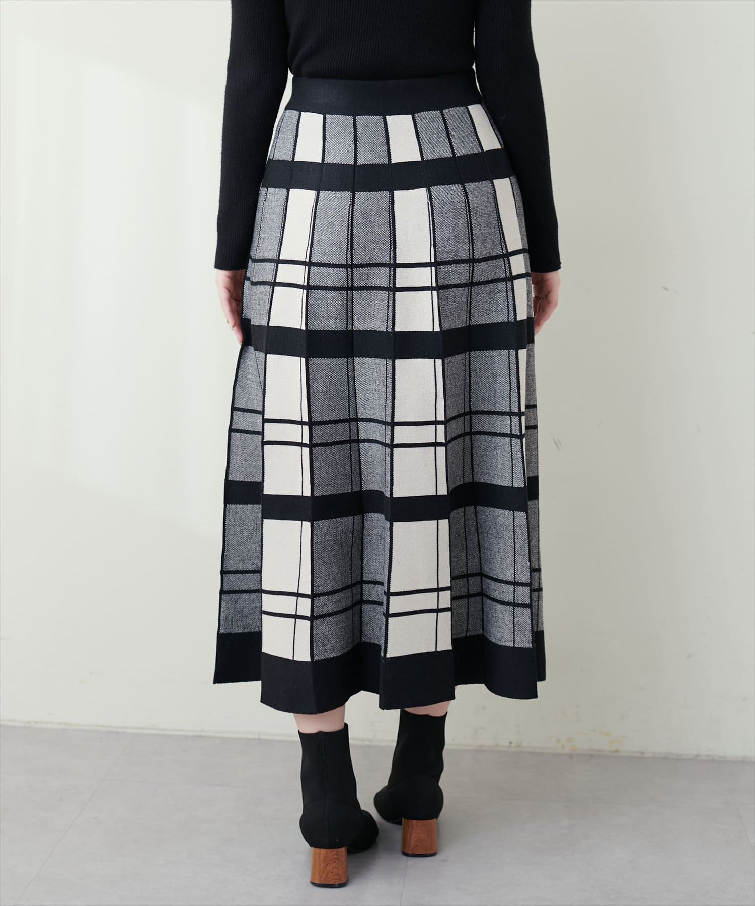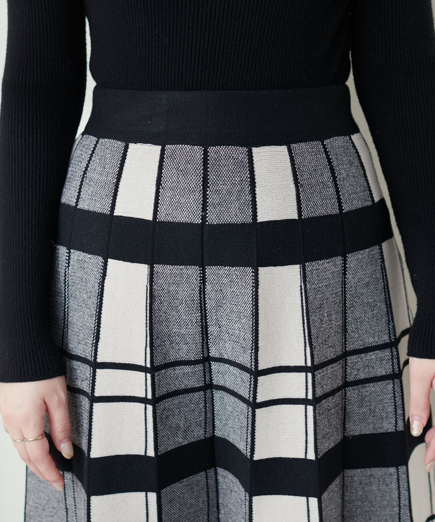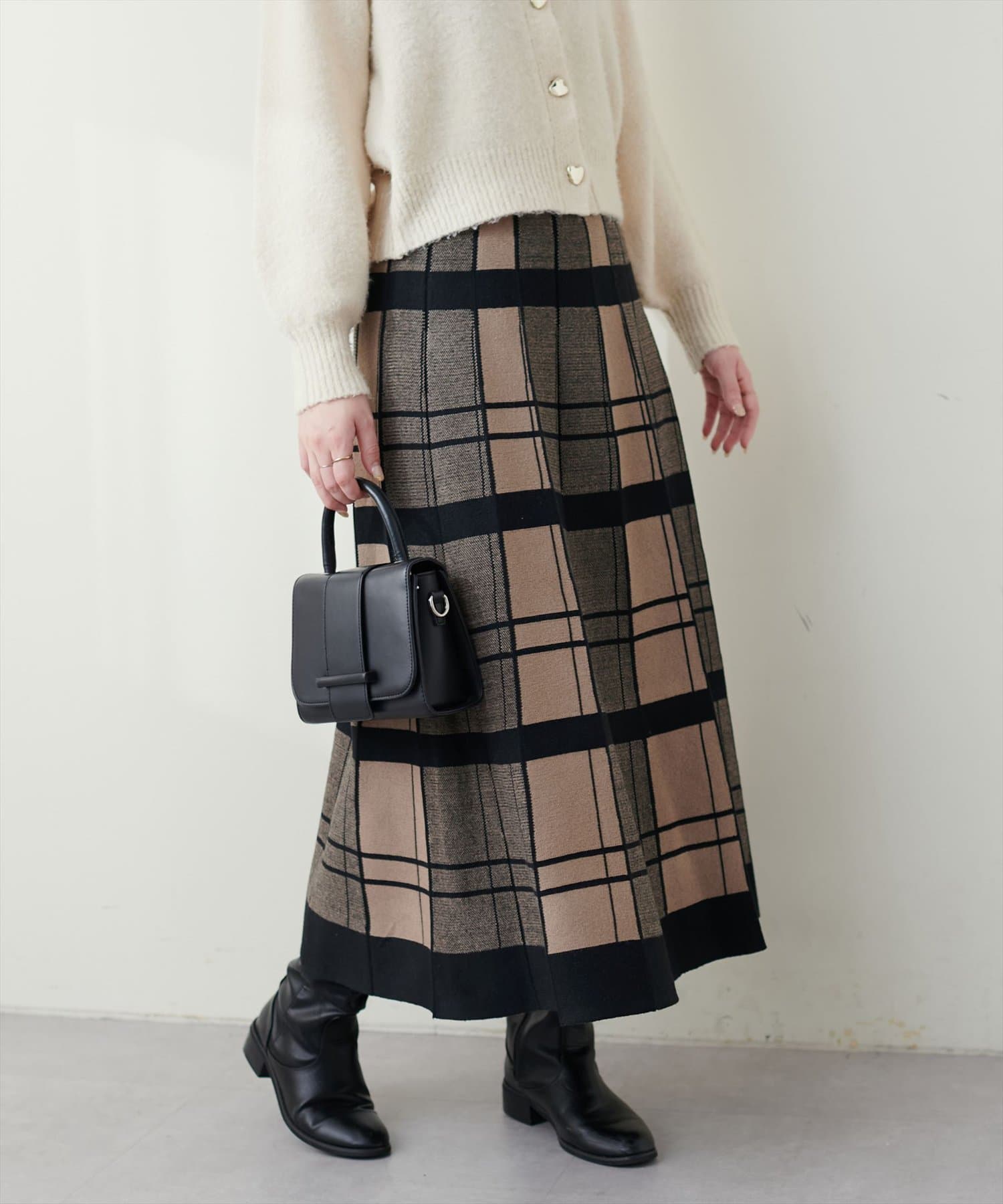 クラシカルな雰囲気のチェックニットプリーツスカート