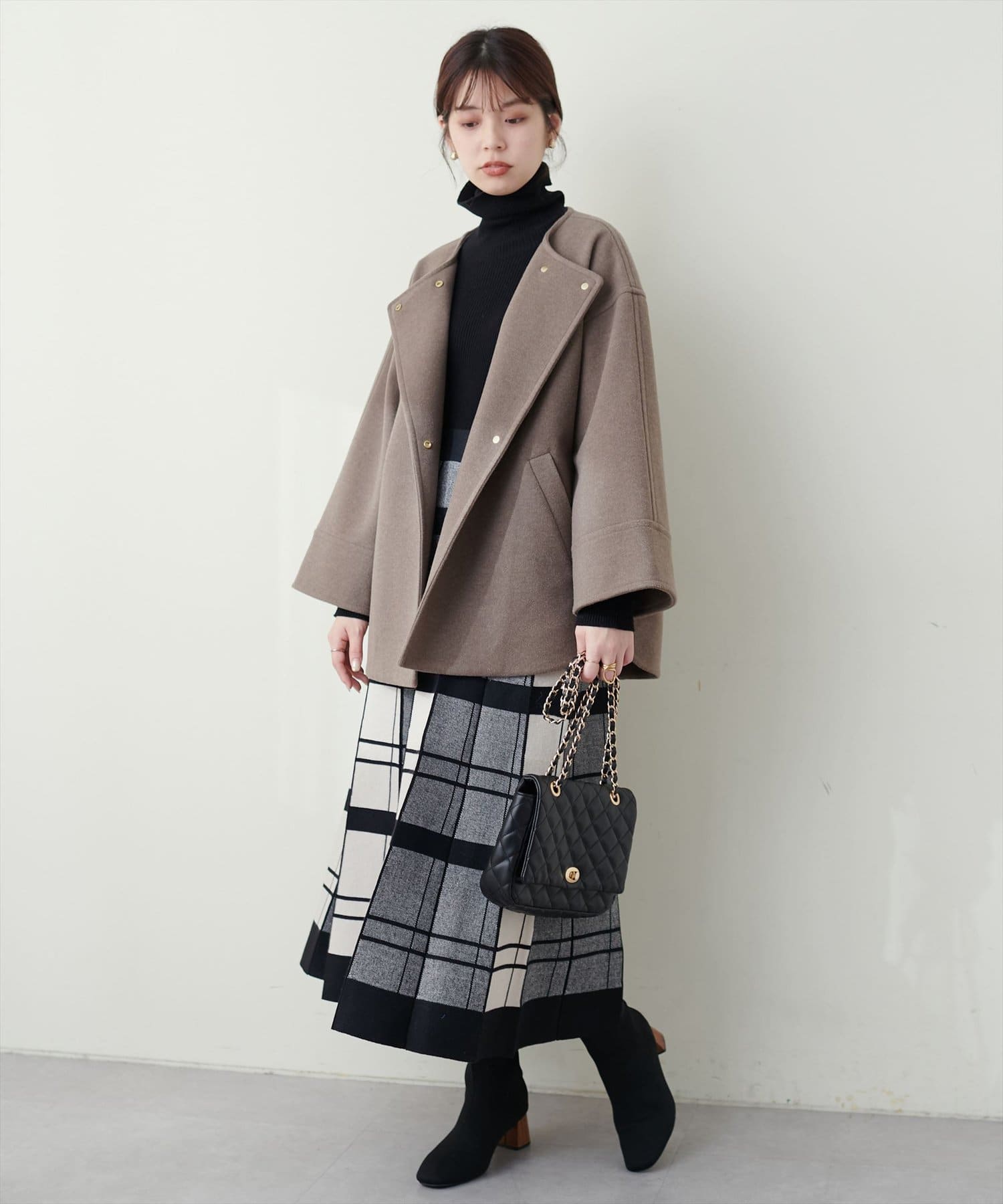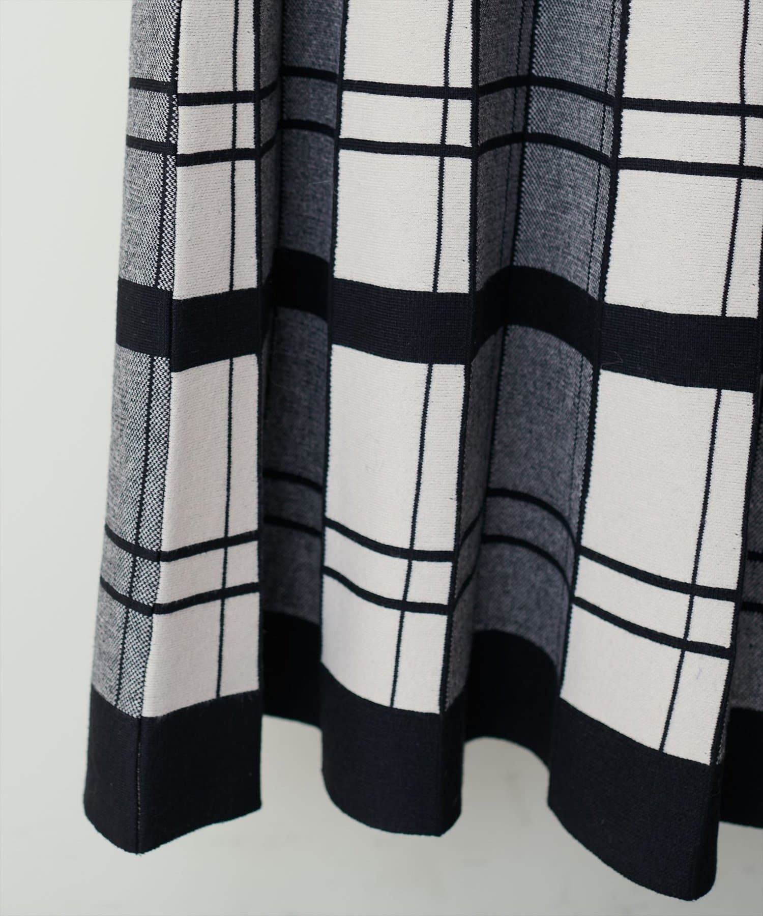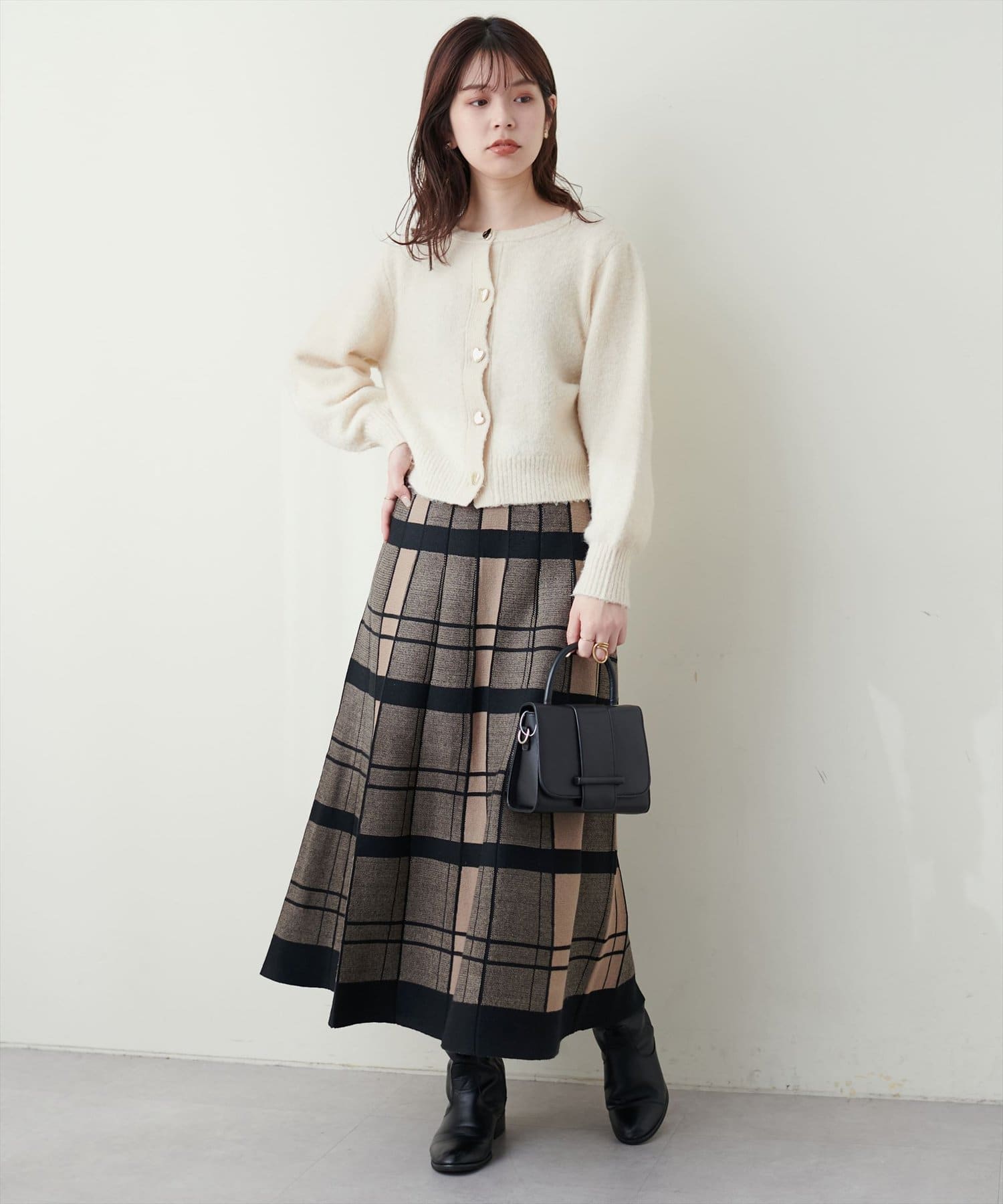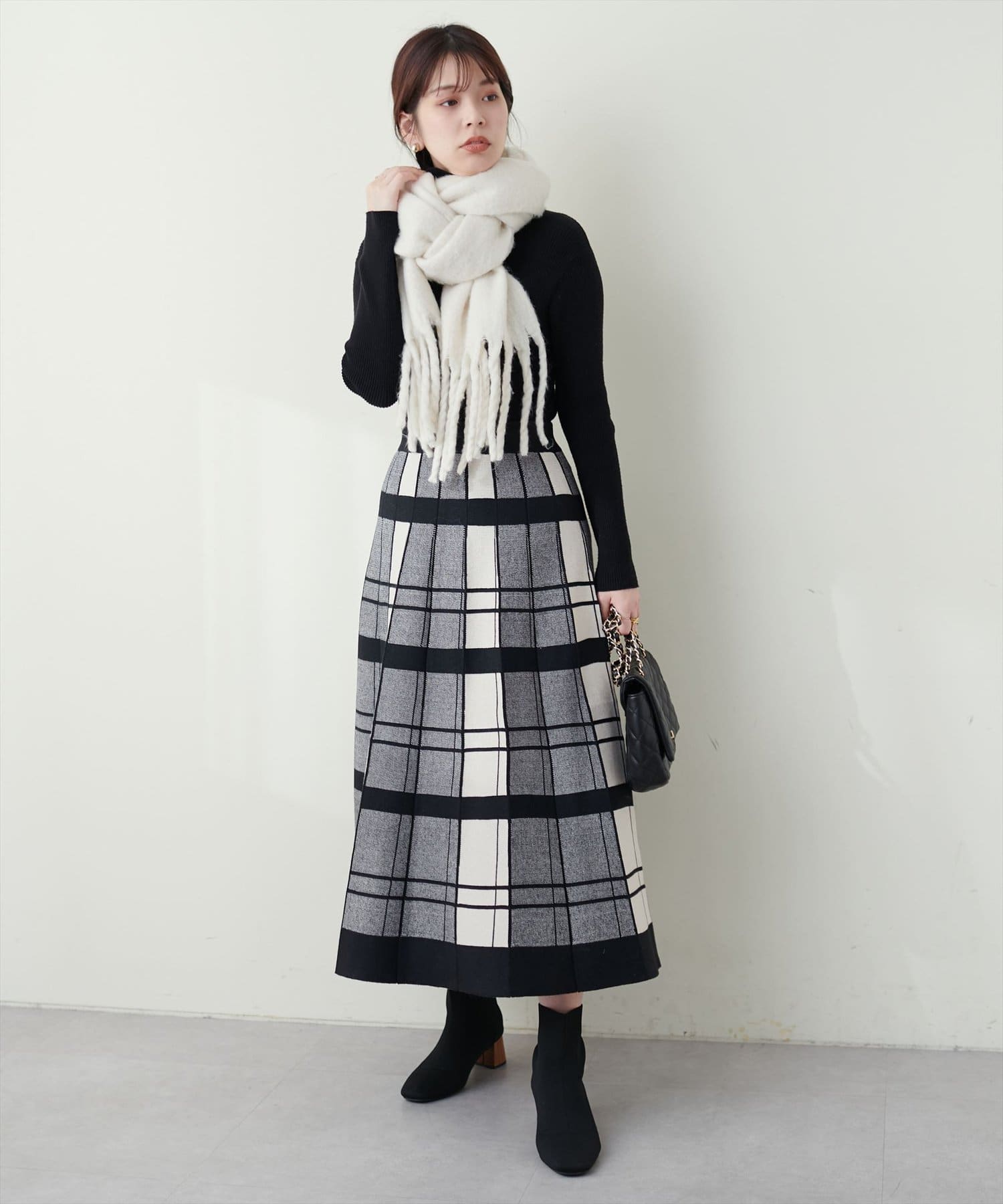 クラシカルな雰囲気のチェックニットプリーツスカート