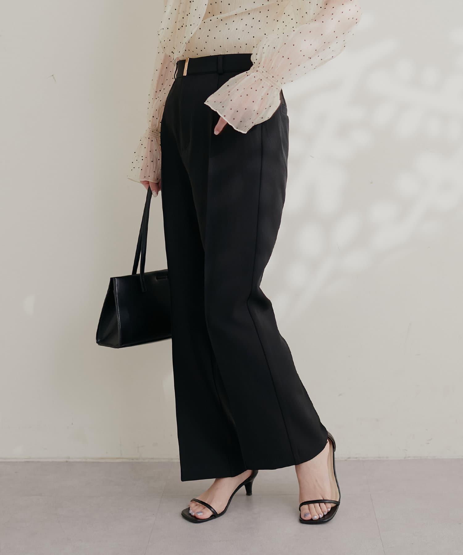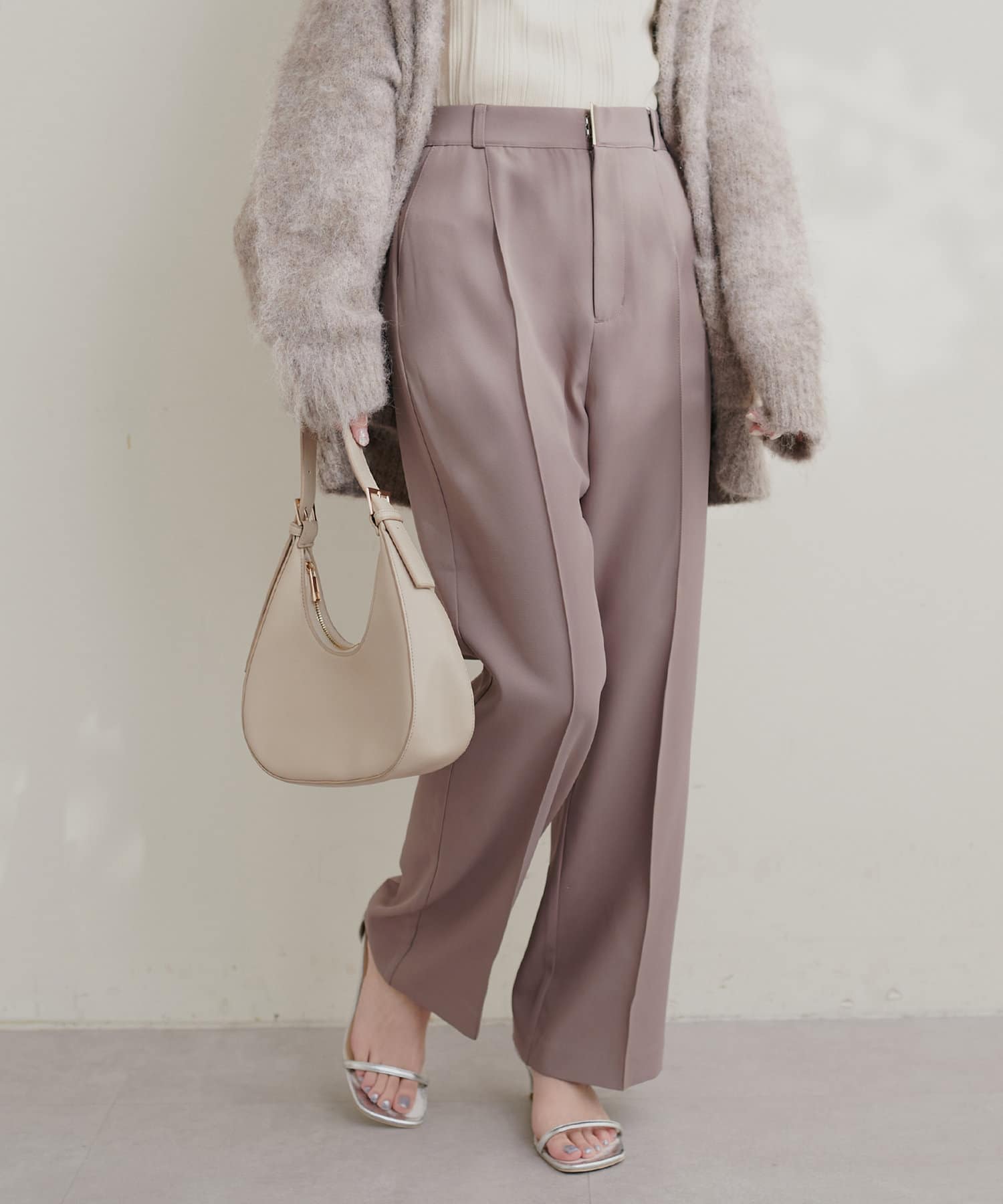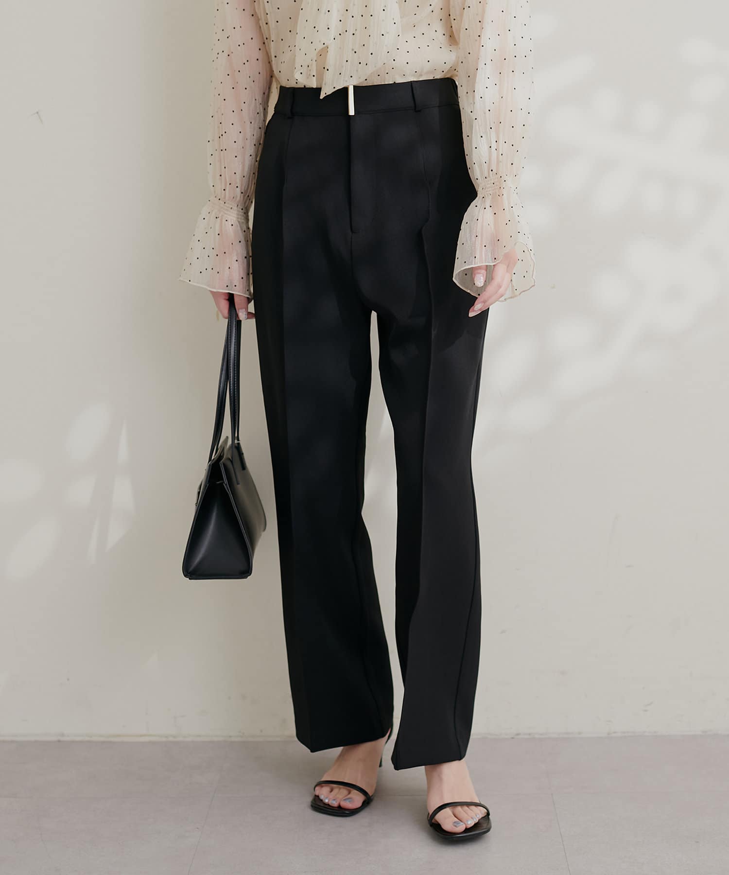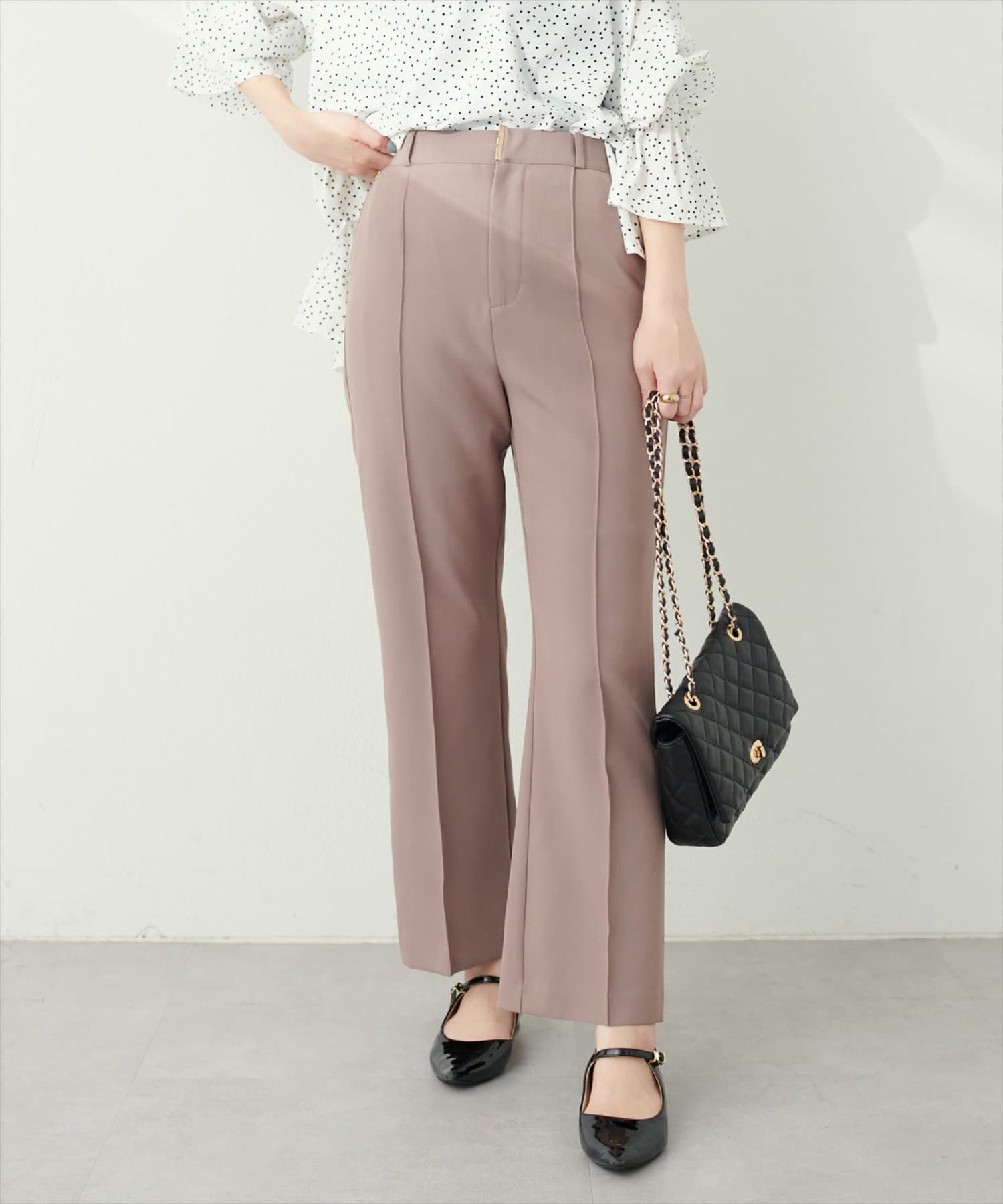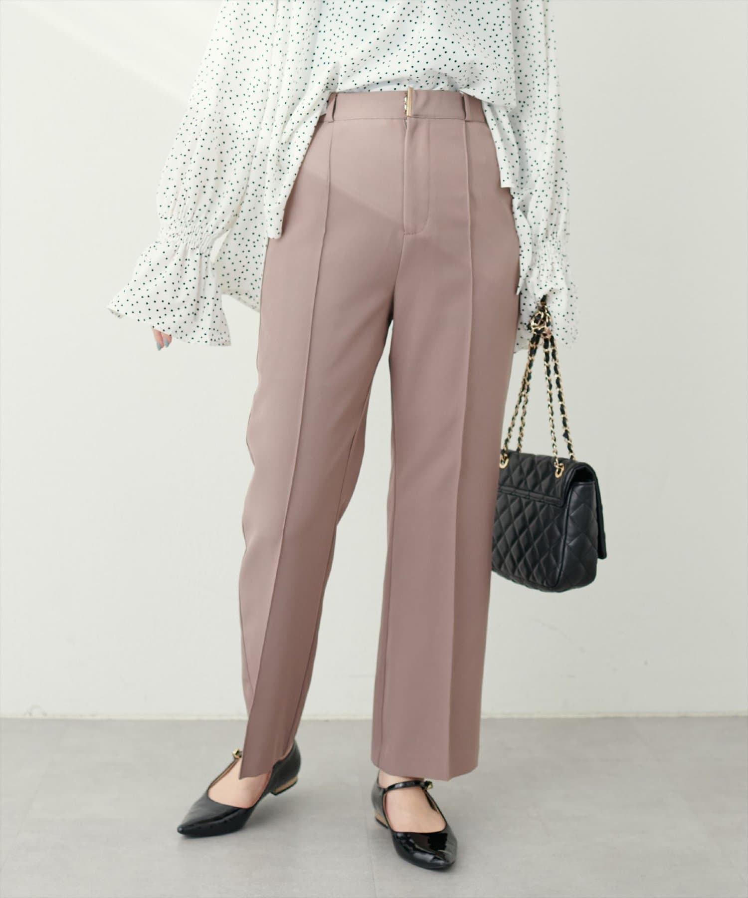 オフィスで着れるキレイメパンツ。ハイウエストで着れて、腰回りのふくらみを少しでも抑えて着てもらえるようにこだわりました。