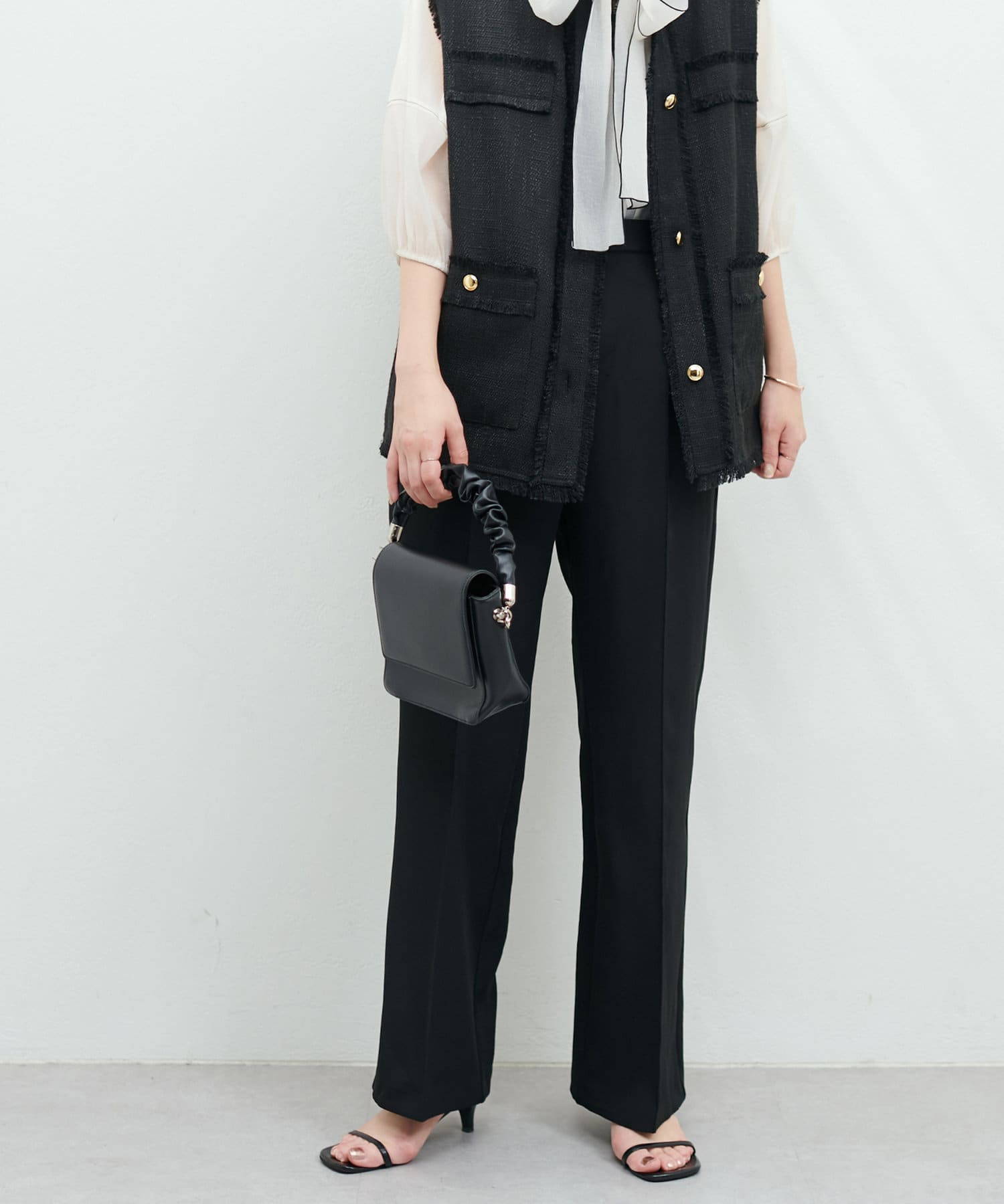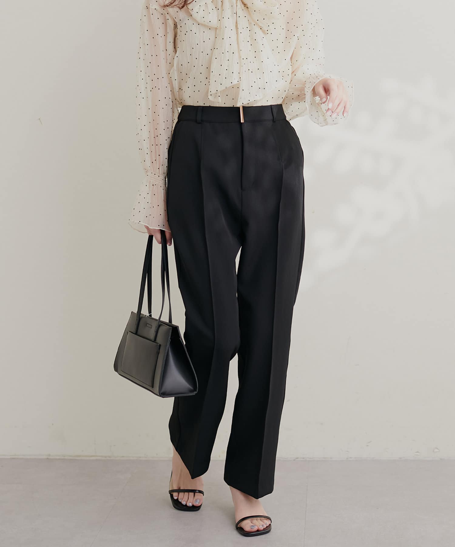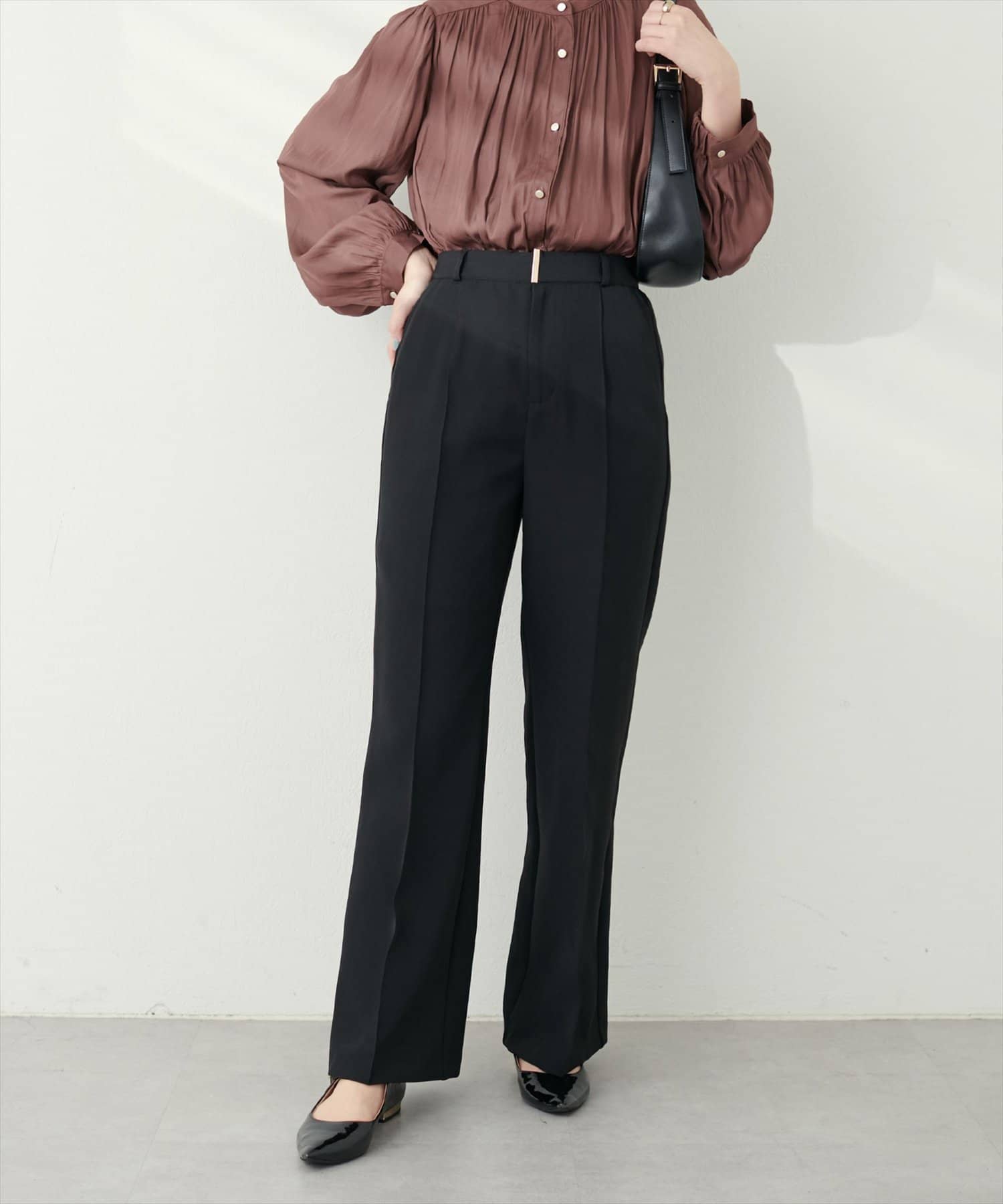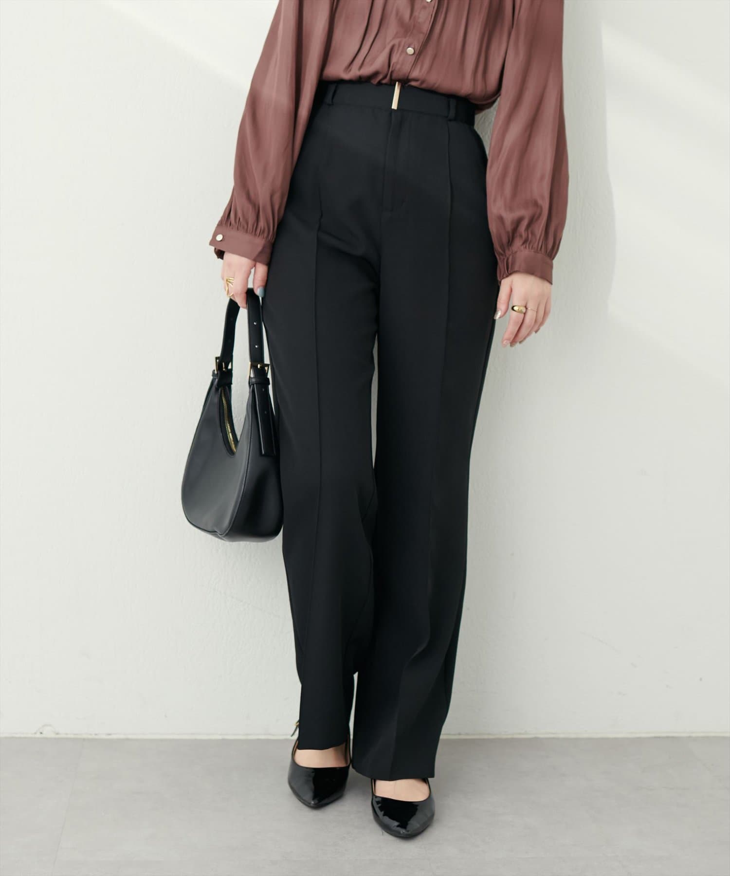 オフィスで活躍する、ハイウエストキレイめパンツ