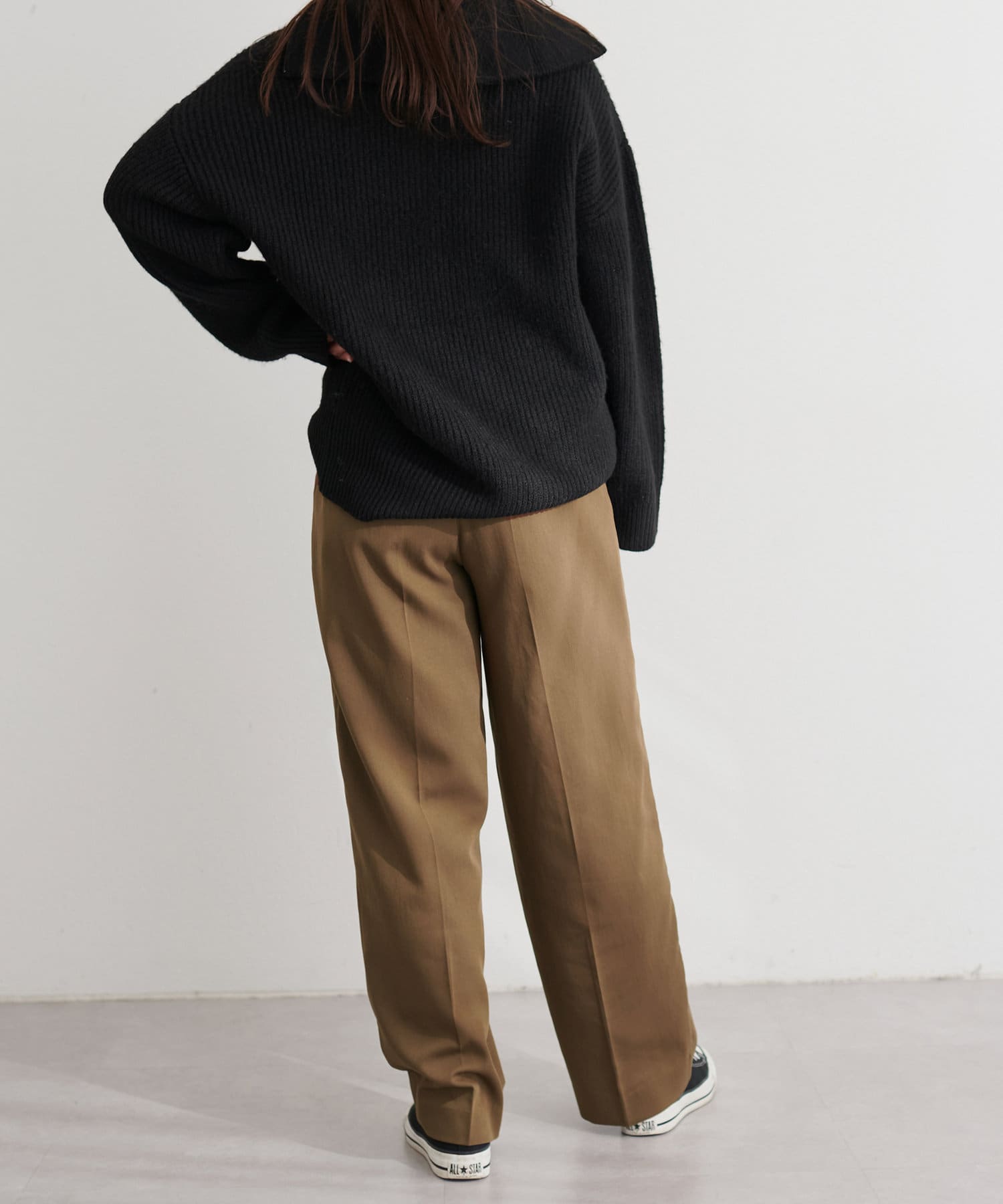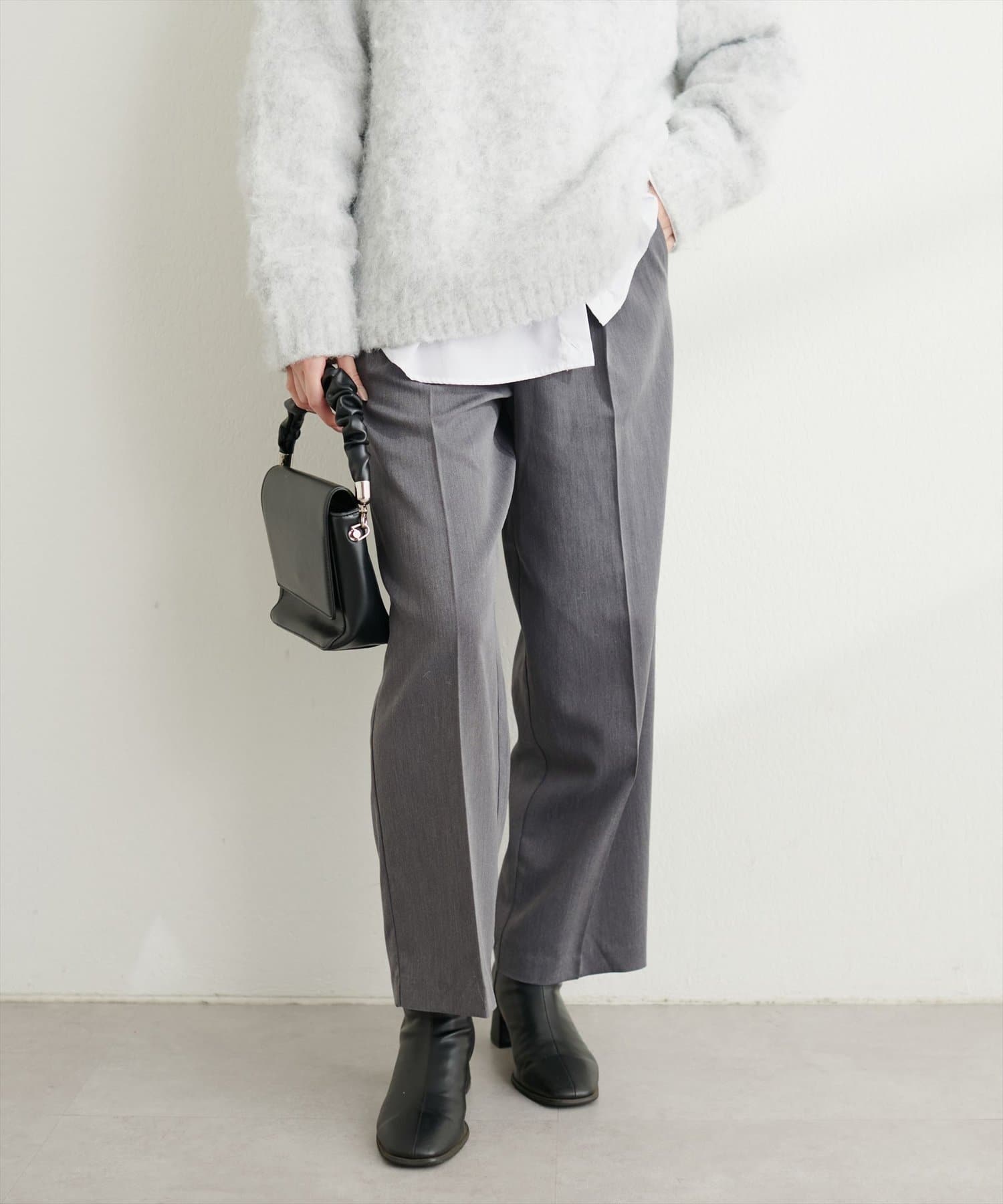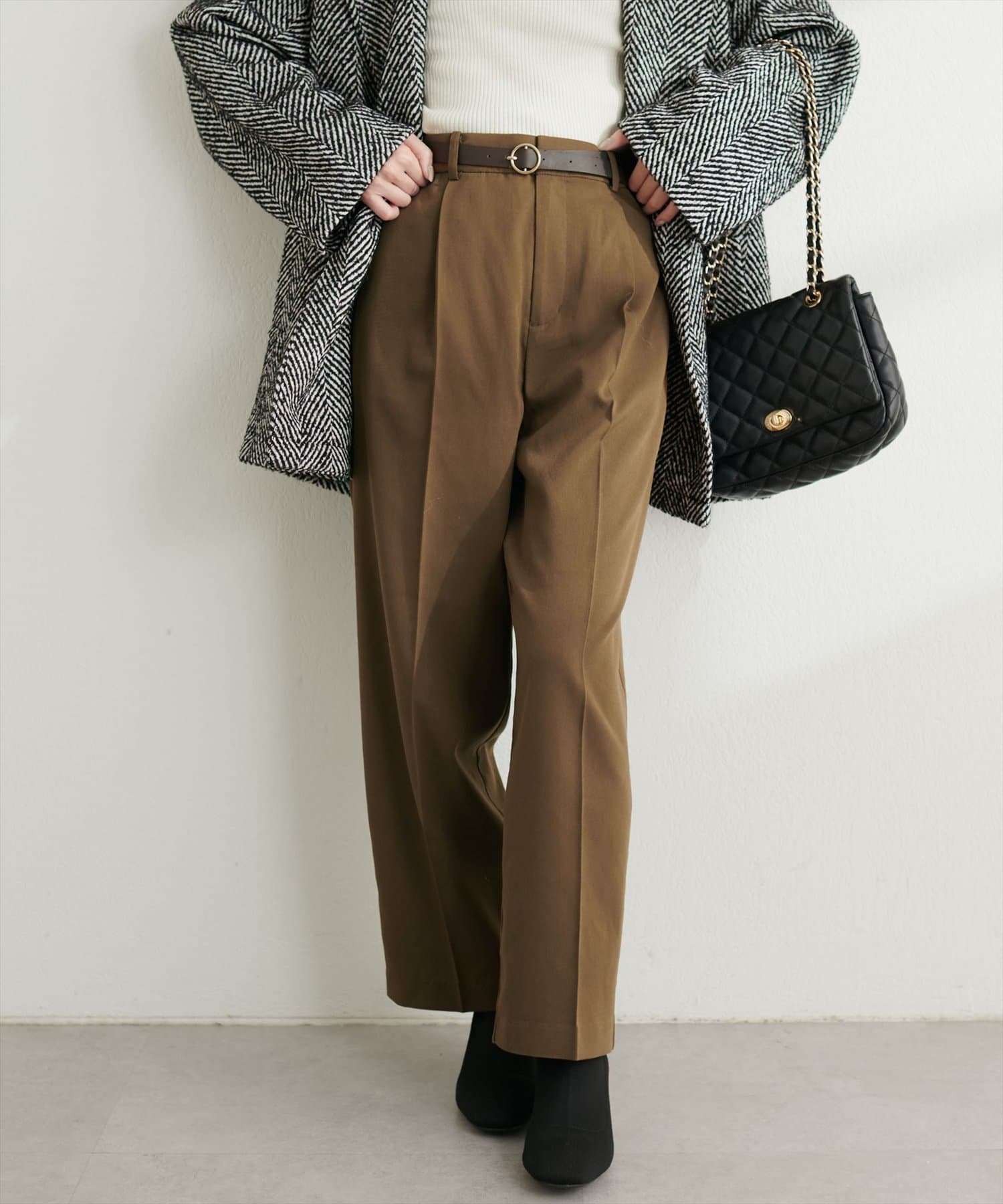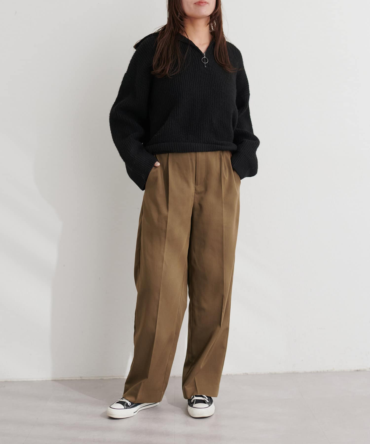 存在感のあるタックとセンタープレスが縦ラインを強調し、スタイルアップ効果が期待できます。