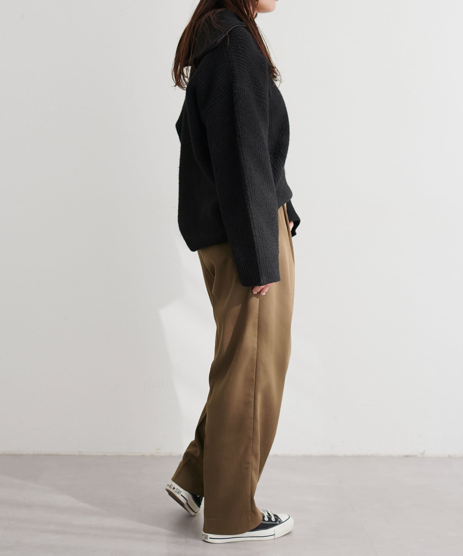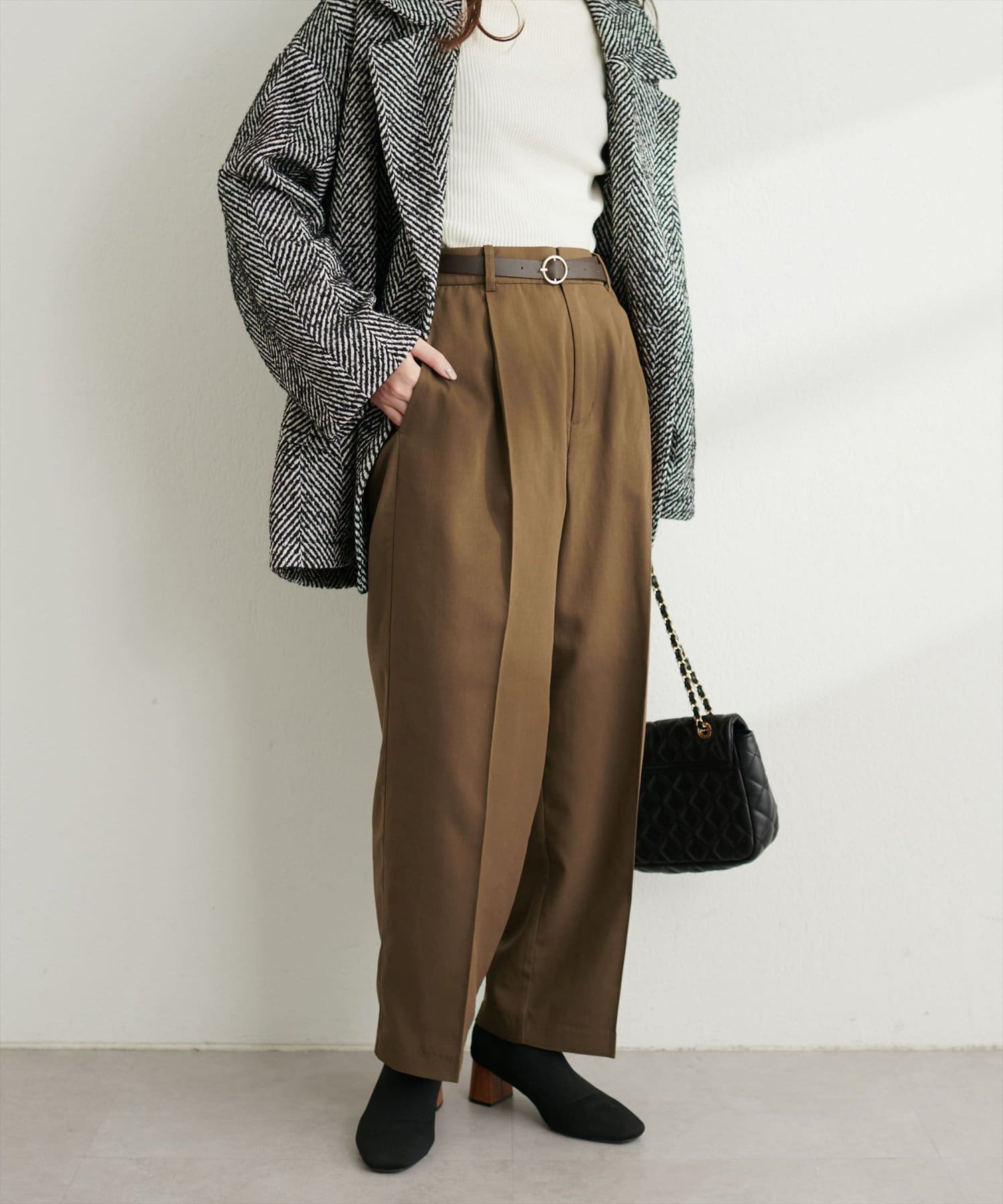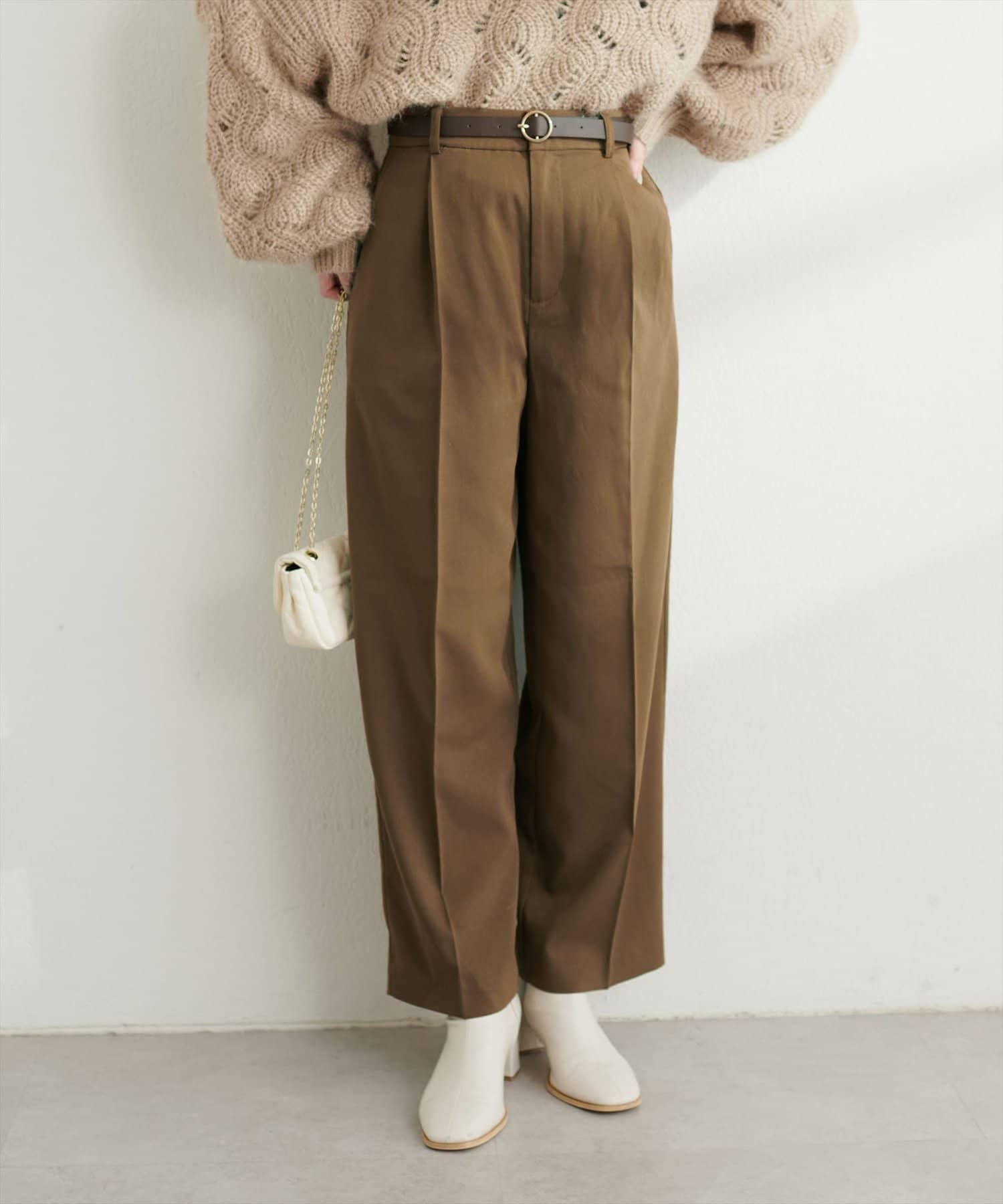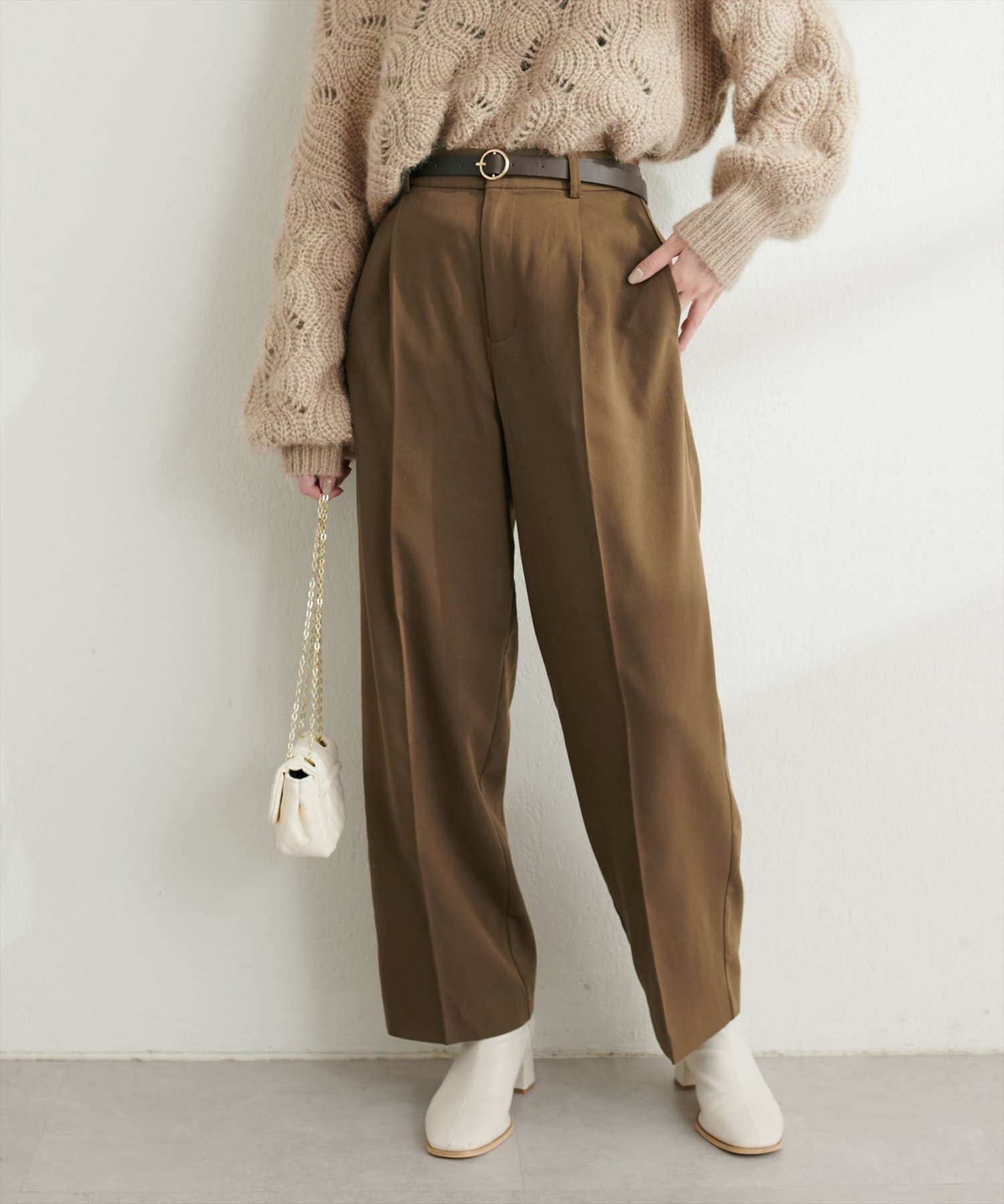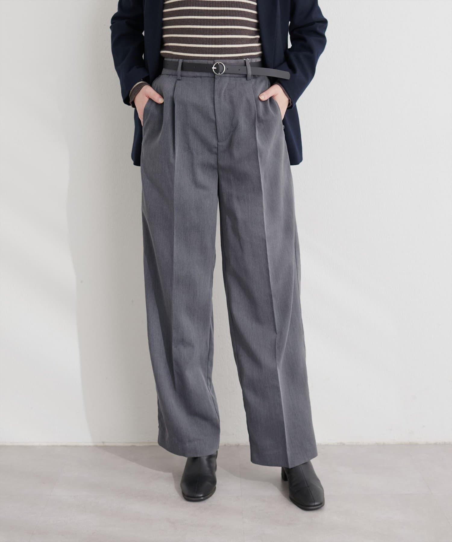 存在感のあるタックとセンタープレスが縦ラインを強調し、スタイルアップ効果が期待できます。